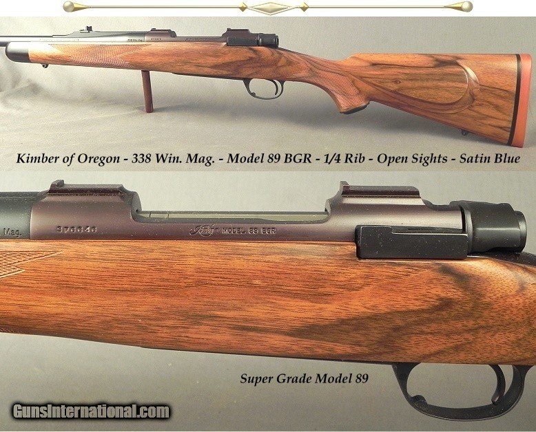 KIMBER of OREGON 338 WIN. MAG.- SUPER GRADE MOD 89 BGR- 1/4 RIB & OPEN SIGHTS- SATIN BLUE- INTEGRAL DOUBLE SQUARE BRIDGE DOVETAILS- REMAINS UNFIRED