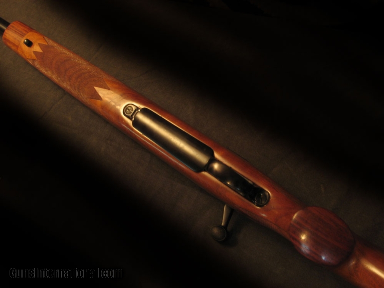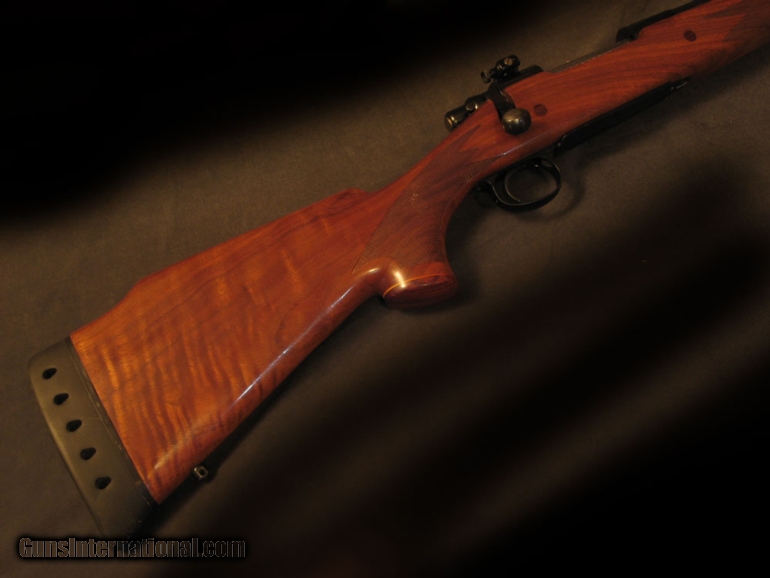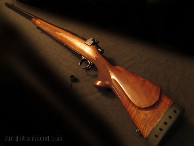 Description: Good choice for a recoil-shy person who needs 458 knockdown power. Exceptional wood for a 700 and nicely hand checkered. Attractive rosewood grip and tip. 13 1/4" LOP thru fat KickEze pad. 9lb dry with 24" bbl with removeable muzzle brake, thread protector incl. Rear sight removed and plugged in favor of Williams receiver sight. Free floated and bedded. Clean cosmetics and bore. Forward action screw is a little marred. SOLD |