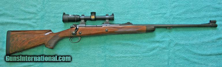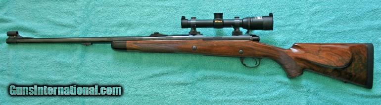 Built on a WINCHESTER MODEL 70 controlled feed action, this beautiful rifle is ready for Africa or any heavy North American game.