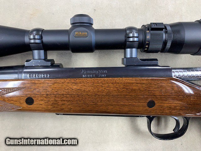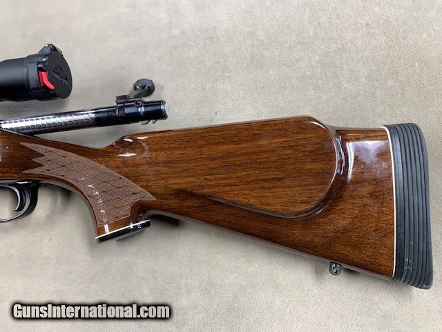 Description: A mint condition Remington 700 BDL in caliber .375 UltraMag which was purchased for a trip to Botswana that never materialized. Rifle is as new with a Nikon 3-9 Variable scope which has been properly mounted at time of purchase. Tiny 1/4 inch chip in finish on comb (see photo). Decellerator pad has been properly fitted as shown in the photos. Condition is otherwise 100% and it is in a difficult caliber to find. Perfect bore and chamber. SOLD Rifle Caliber: .375 Remington Ultra Magnum |