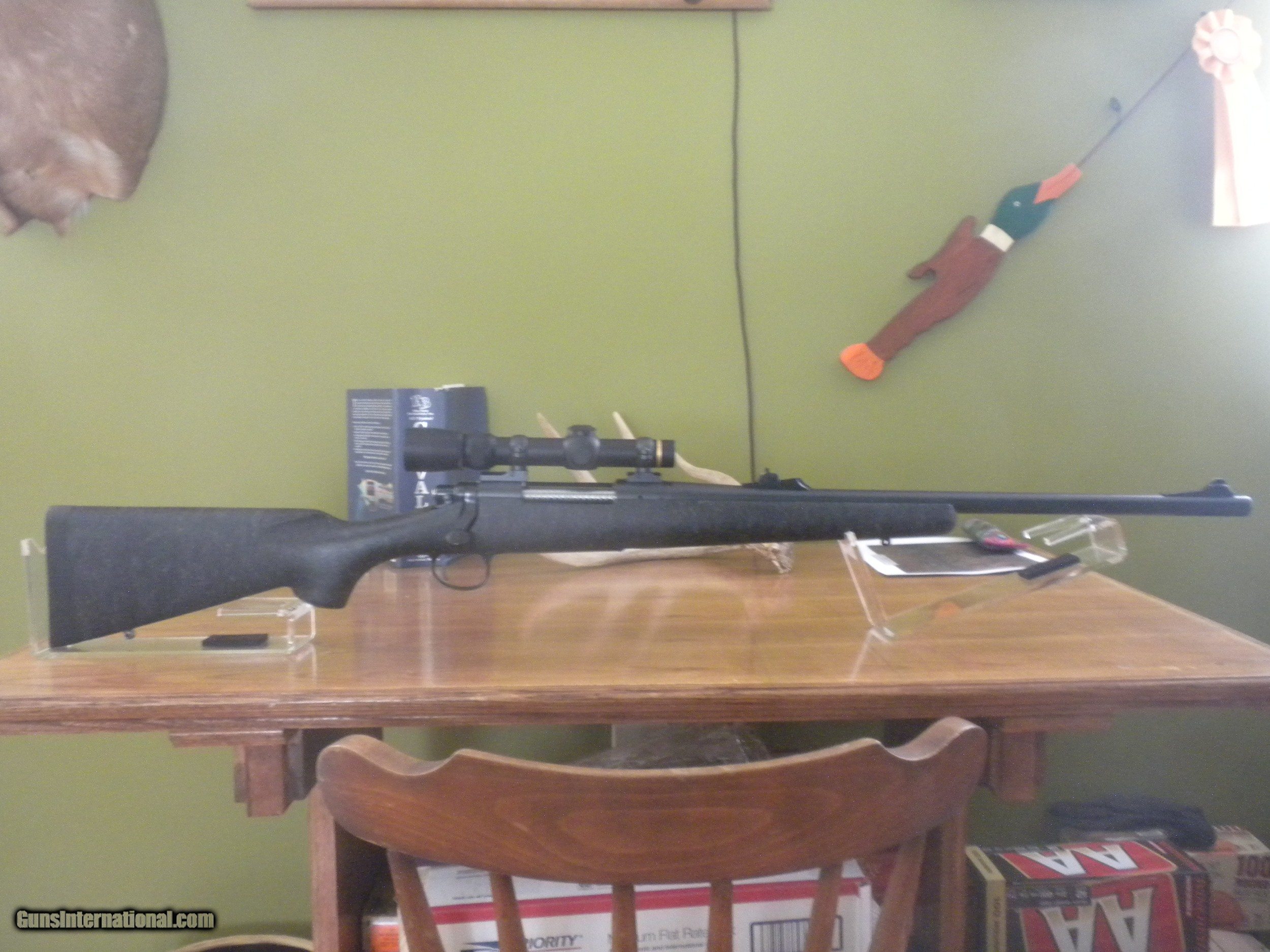 Description: Remington 700 Big Game Synthetic .416 Rem Mag 22” 4 shot with Leupold Vari-X III 1.5 – 5 x 20 mm Heavy Duplex Matte Scope (46119) and Leupold Quick Detachable Bases and Rings. This rifle weighs 7 lbs. 12 oz without the scope and 8 lbs. 7.7 oz with the scope. This Rifle and Scope are in as new condition, the rifle has been shot perhaps 30 rounds. I also have 13 rounds of Remington 400 grain Barnes Solids and one full box of Federal 400 Grain Nosler Partitions and 17 rounds in a second box. ( Ammo is not included in the purchase price of the rifle & scope but is available for a very fair price). This rifle is a joy to shoot, the factory HS Precision Stock has excellent dimensions and a great recoil pad. I purchased this rifle back in 2000 anticipating a bear hunt in Alaska in 2001 and then the World Trade Centers were struck and ended my plans. If Alaskan Big Game is in your future this would be great for Bears and Yukon Moose, also a great gun for anything that walks in Africa. Includes Rifle Box & Scope Box $55 Shipping USPS Priority Mail SOLD Rifle Caliber: .416 Remington Magnum Manufacturer: Remington Model: 700 Big Game Synthetic Serial Number: E6480505 Barrel Length: 22 Condition: As new Metal Condition: Perfect Wood Condition: Synthetic Perfect Cond Bore Condition: Perfect Stock: Synthetic Butt Pad: Rubber Remington Extras: Leupold Vari-X III 1.5 - 5 x 20 mm |
