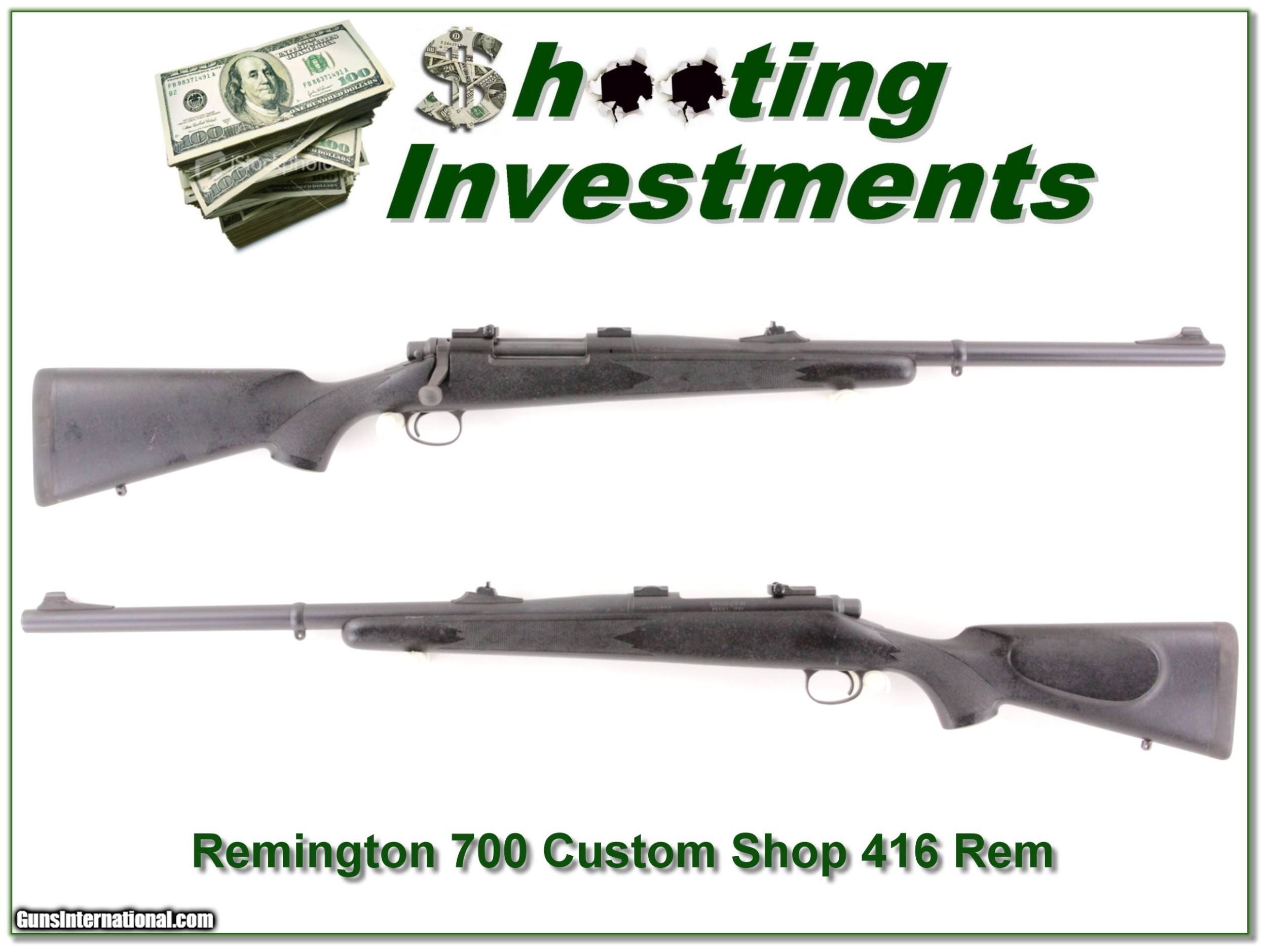 Description: This is a Remington 700 Custom Shop in the hard to find and hard-hitting 416 Remington Magnum. It has a 22in barrel with barrel band and factory fiberglass stock. The metal is excellent and I’m sure not many rounds were fired. It will make a high-end dangerous game gun. Shipping with insurance is $39. Please email me with any questions or larger pictures. (Consign your quality firearms with Shooting Investments for only 12%! Let me know if you have any you would like to sell!) 19-1042 Payment: Payment is by Money Order, Cashiers Check or Personal Check. I can now also accept MasterCard and Visa with a 3% convenience fee. PayPal can be used for some items but never firearms. Please let us know if you would like to pay via PayPal. Shipping: The shipping charge will be listed in each description. It is $39 for most long guns and $29 for most handguns. Some heavy guns or those insured for over $2000 will be higher. Shipments to Alaska and Hawaii are higher because air shipment is required. Most firearms are shipped on Tuesday and Thursday and usually in 5 days of receipt of payment. We package all shipments carefully and insure them. For long guns you can purchase a new Plano case for $19. They now cost us $22 when buying 100 at a time. Optics are shipped Priority Mail and most other non-firearm shipments are shipped First Class. Returns: Our return policy is simple. If for any reason you are not pleased with your purchase, you may return your item for a full refund of purchase price. Ammunition cannot be returned. It is important to us that you are happy. Guns cannot be fired or dissembled before returning them and they must be returned in the same condition as received. Notification of a return must occur with-in 3 days of receipt at your dealer. Shipping, convenience and dealer fees are not refundable and are the responsibility of the buyer. Lay-a-way: If needed, we offer a 60 day lay-a-way option on most firearms. It is 1/3 now, 1/3 in 30 days and 1/3 in 60 days. Lay-a-way firearm sales are final and if not completed the first payment cannot be returned. Consigning your firearms with Shooting Investments: We will help you get top dollar for your firearms. While most local guns shops charge 20% or more, our fee is only 12% with a minimum of $75. At your local gun shop it might take months to sell. Selling on-line provides instant access to thousands of interested buyers. You won’t find any other on-line dealer willing to sell your firearms for only 12% or listing every gun on 3 separate s. Selling through an House typically costs the seller 15% and the buyer an addition 15% (so 30%) and you have to wait several months to sell and longer to receive funds. If properly priced, we will sell your firearms in a few weeks. Send us an email or give us a call and we’ll explain how easy it is for you to get top dollar. Trading: Trading for use is really just buying your gun to re-sell. If you have a gun you want to trade, please email a picture and we will let you know what we can give or it. You will always get more if we sell it for you on consignment. Help for California Buyers: We are happy to ship to California. It is the buyer’s responsibility to make sure any item you buy is legal in your state. We are also happy to help with your purchase of a firearm from someone other than us. If you see a gun you would like to buy but the seller can’t or won’t ship to California they can ship to use and we’ll then ship it to your California dealer. The cost for this service is only $30 + shipping. Let us know if we can help! SOLD |