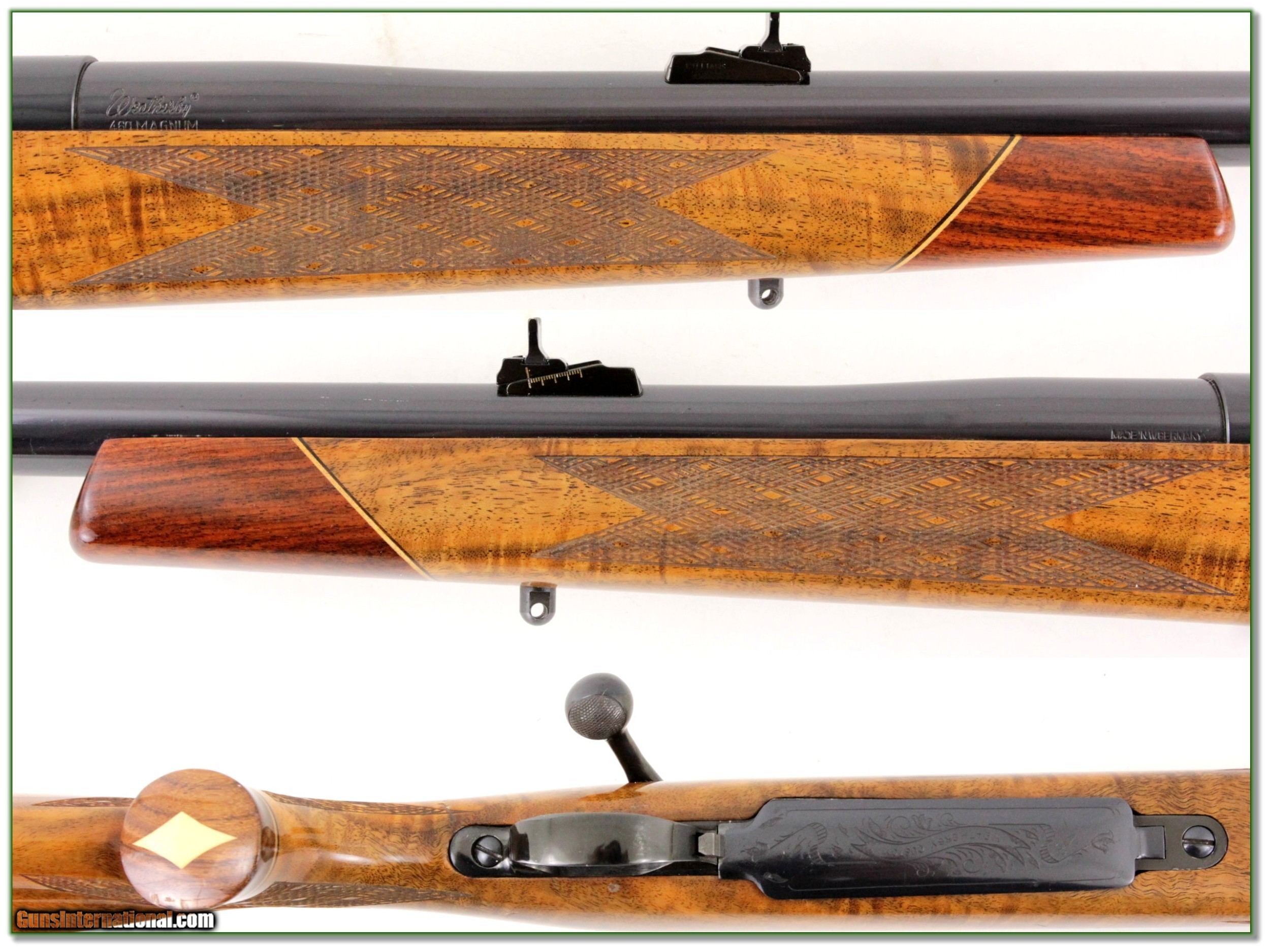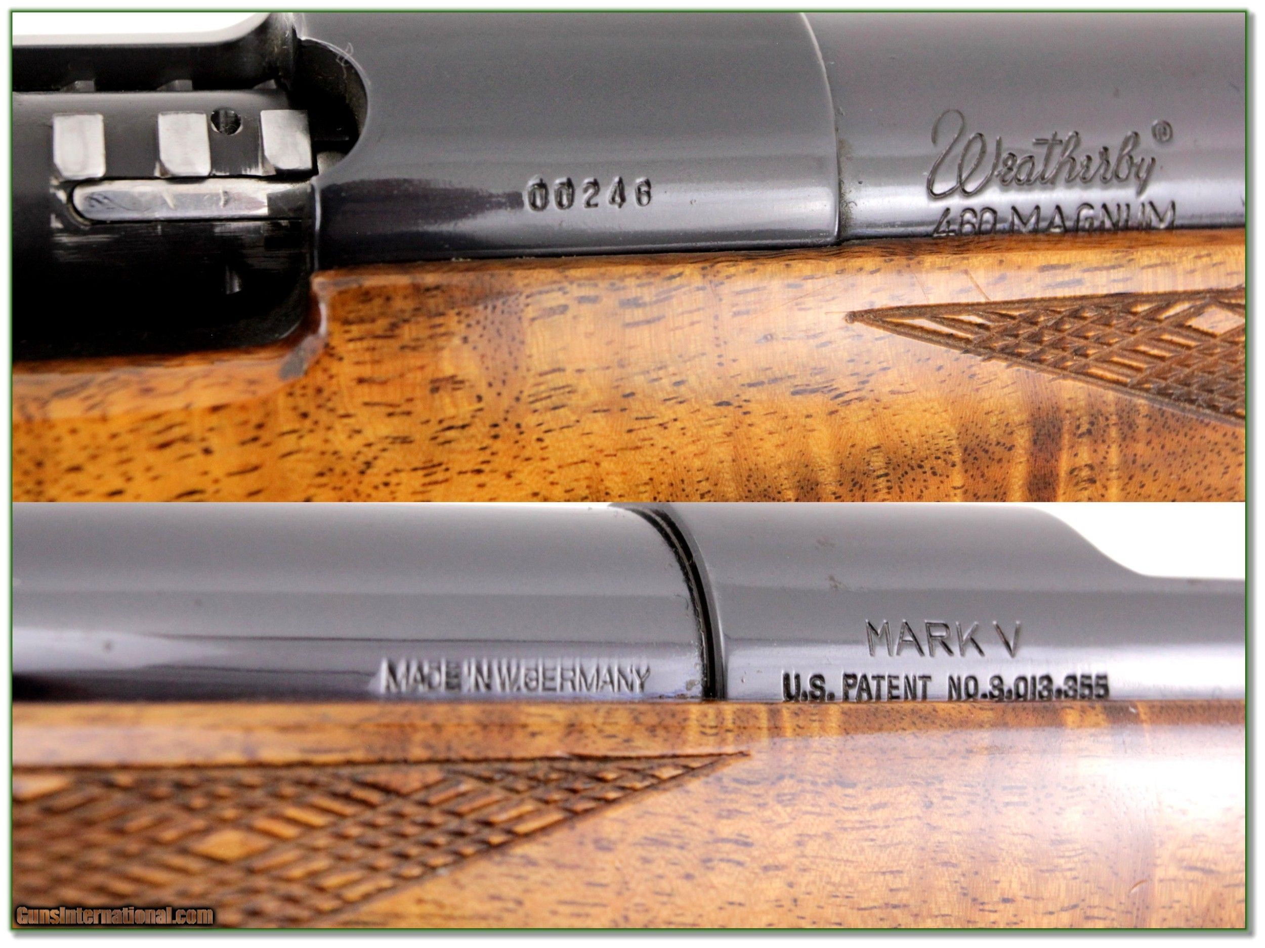 Description: Collectors and African Dangerous Game Hunters, this is a Weatherby Mark V Deluxe in the big 460 Weatherby. It is one of the first German made Mark V’s with serial number 246. It has incredible wood for a German made Mark V. It’s really even better than my pictures show. This one has some unique features for a Weatherby collector. The caliber is on the right side and the “Made in West Germany” is on the left side. Like all 460’s this was made in the Custom Shop. It has a 26in barrel with Pendleton break. It has been hunted and has a few marks here and there. It will make a prized addition to your collection! Shipping with insurance is $59. Please email me with any questions or larger pictures. (Consign your quality firearms with Shooting Investments for only 12%! Let me know if you have any you would like to sell!) 19-1133 Payment: Payment is by Money Order, Cashiers Check or Personal Check. I can now also accept Credit Cards (MasterCard, Visa, Discover & American Express) with a 3% convenience fee. PayPal can be used for some items but never for firearms. Shipping: The shipping charge will be listed in each description. It is $39 for most firearms. Some heavy guns or those insured for over $2000 will be higher. Shipments to Alaska and Hawaii are higher because air shipment is required. Most firearms are shipped on Tuesday and Thursday and usually in 5 days of receipt of payment. We package all shipments carefully and insure them. Optics are shipped Priority Mail and most other non-firearm shipments are shipped First Class. Returns: Our return policy is simple. If for any reason you are not pleased with your purchase, you may return your item for a full refund of purchase price. Ammunition cannot be returned. It is important to us that you are happy. Guns cannot be fired or dissembled before returning them and they must be returned in the same condition as received. Notification of a return must occur with-in 3 days of receipt at your dealer. Shipping, convenience and dealer fees are not refundable and are the responsibility of the buyer. Lay-a-way: If needed, we offer a 60 day lay-a-way option on most firearms. It is 1/3 now, 1/3 in 30 days and 1/3 in 60 days. Lay-a-way firearm sales are final and if not completed the first payment cannot be returned. Consigning your firearms with Shooting Investments: We will help you get top dollar for your firearms. While most local guns shops charge 20% or more, our fee is only 12% with a minimum of $75. At your local gun shop it might take months to sell. Selling on-line provides instant access to thousands of interested buyers. You won’t find any other on-line dealer willing to sell your firearms for only 12% or listing every gun on 3 separate s. Selling through an House typically costs the seller 15% and the buyer an addition 15% (so 30%) and you have to wait several months to sell and longer to receive funds. If properly priced, we will sell your firearms in a few weeks. Send us an email or give us a call and we’ll explain how easy it is for you to get top dollar. Trading: Trading for use is really just buying your gun to re-sell. If you have a gun you want to trade, please email a picture and we will let you know what we can give or it. You will always get more if we sell it for you on consignment. Help for California Buyers: We are happy to ship to California. It is the buyer’s responsibility to make sure any item you buy is legal in your state. We are also happy to help with your purchase of a firearm from someone other than us. If you see a gun you would like to buy but the seller can’t or won’t ship to California they can ship to use and we’ll then ship it to your California dealer. The cost for this service is only $30 + shipping. Let us know if we can help! SOLD |