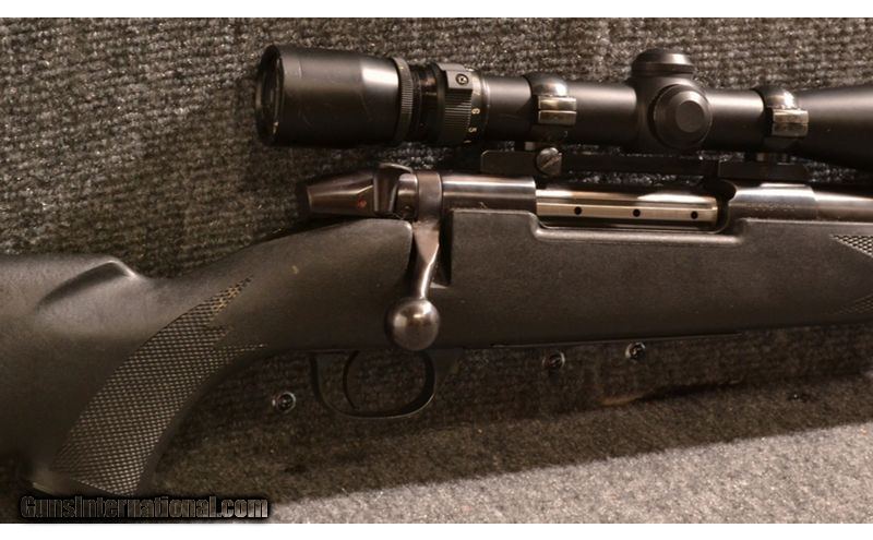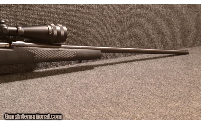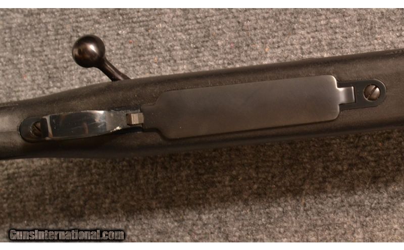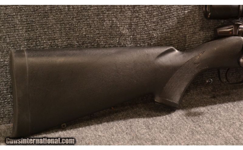 Description: .340 Weatherby Magnum SOLD Chambers: Bolt action repeater. Metal Condition: Good couple small marks. Wood Condition: Good some marks. Barrels: 26 inch blued tapered. Triggers: Single blued. Stock Dimensions: LOP 14 inch. Fore End: Synthetic checkered. Butt Pad: Black rubber. Sights: Drilled & tapped 4-12x scope. Item Location: Thornton, CO |