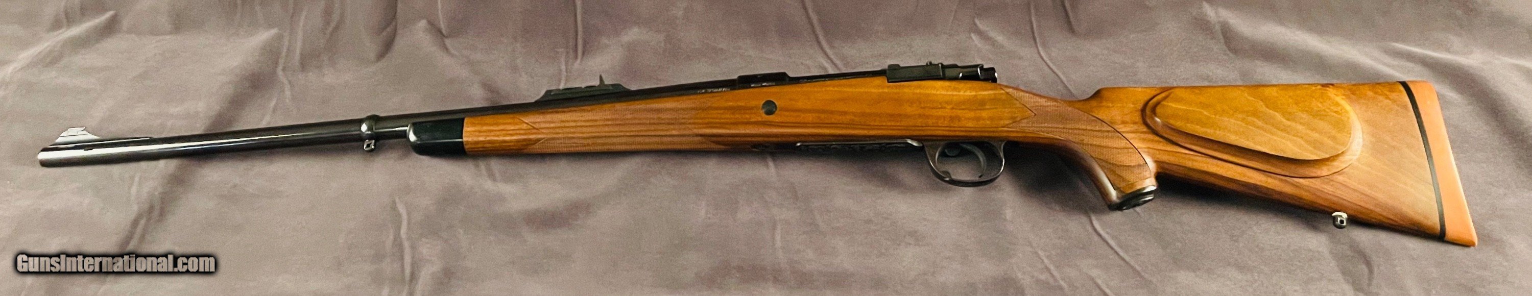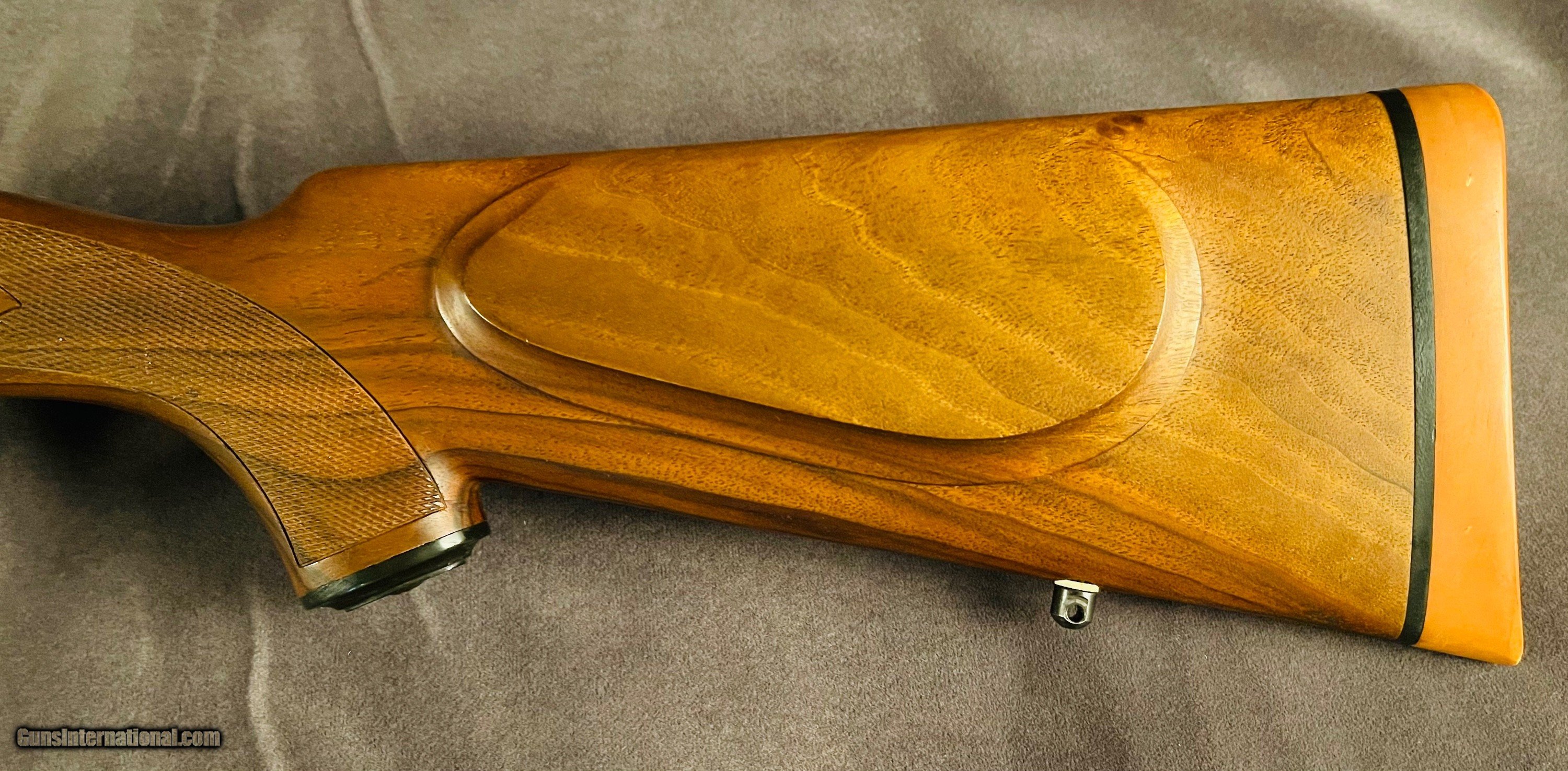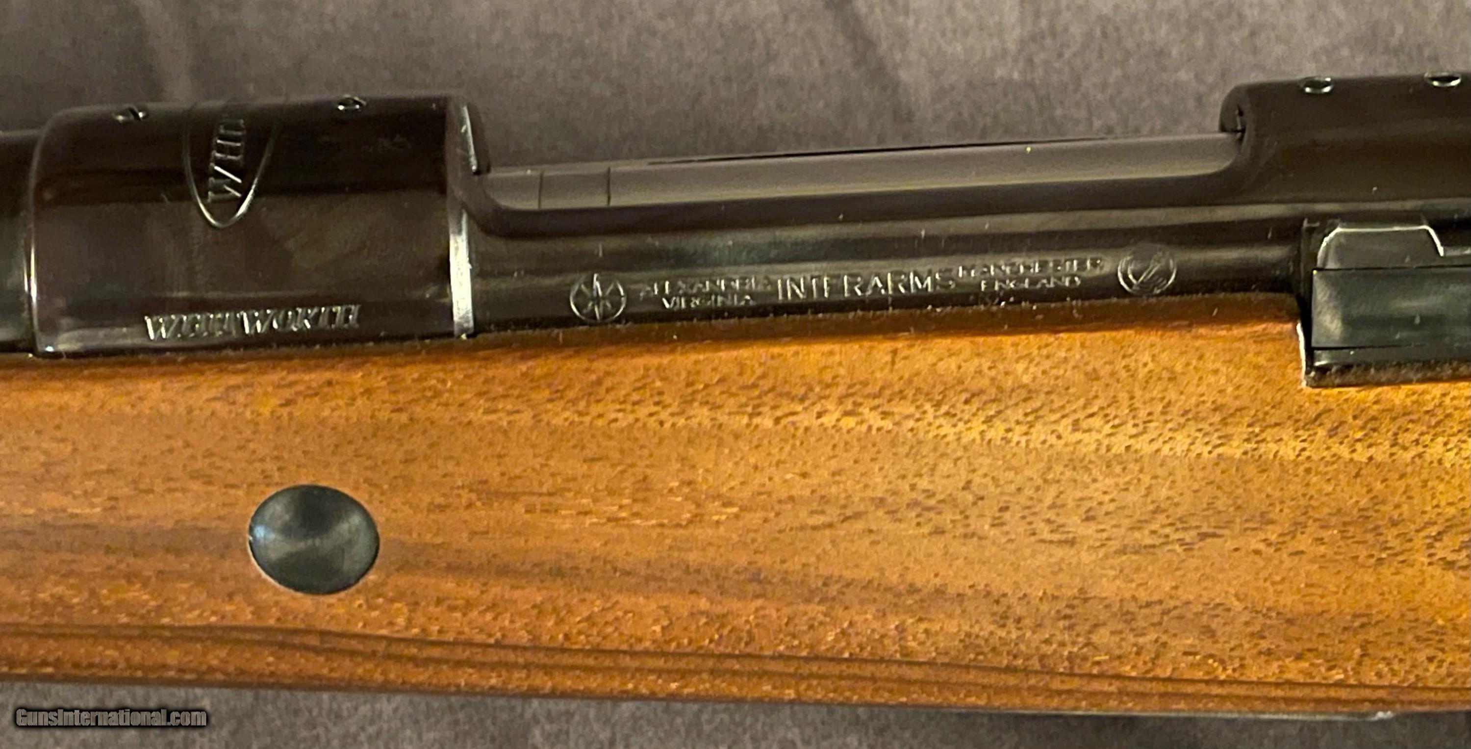 Description: Whitworth .375 Holland & Holland Magnum, Manchester England, Interarms Imported, Express Sights, Barrel Band Sling Swivel, Whitworth Pad, Engraved Bottom Metal. The action on this rifle is clean with no extra holes and no sign of a scope ever having been mounted, blued with engraved floorplate, 24" ported barrel with express sights and barrel band sling swivel. Stock is walnut with hand chequering and original finish and pad, 14" Length of pull. Condition: near perfect original, barrel is ported and we are not sure if this was a factory option, it is very professionally done with no evidence of blue loss, floorplate and guard are engraved. These were factory available options. The action shows little sign of having been fired or cycled. The stock is clean with the chequering being sharp, very light handling marks, pad is original and slighlty discolored, Safe is functional and the trigger has a crisp pull. 0B2704411 MSHSRC $1200.00 Willoughby McCabe & Company. Guns and Rifle for Shooters and Collectors Trading In: Pre War American Sporters, RG Owen, Neidner, Sedgley, Wundhammer, Howe, Seymour Griffin, Hoffman, Springfield '03, Mauser, Fred Adolph, Griffin & Howe, Winchester Pre War Model 70s and Model 54s, Double Rifles- Nitro and Black Powder Sporting Rifles and Shotguns. I am especially interested in 1860-1940 English guns and rifles. Pinfire and flintlock era French and Belgium made high grade. All handmade American cartridge Shotguns and rifles. ALWAYS LOOKING FOR: Damascus barreled English and Continental hammerguns, Damascus barreled American shotguns!!! Hammer double rifles, especially those with Damascus barrels. I am located in Muenster, Texas and can travel to you for purchasing, consignment or appraisal. It is best to Email me at my Guns International address as well as calling or texting my cell. I am often out of cell range and my email is checked daily. SOLD Rifle Caliber: .375 H&H Magnum Manufacturer: Whitworth Model: Express Barrel Length: 24 |