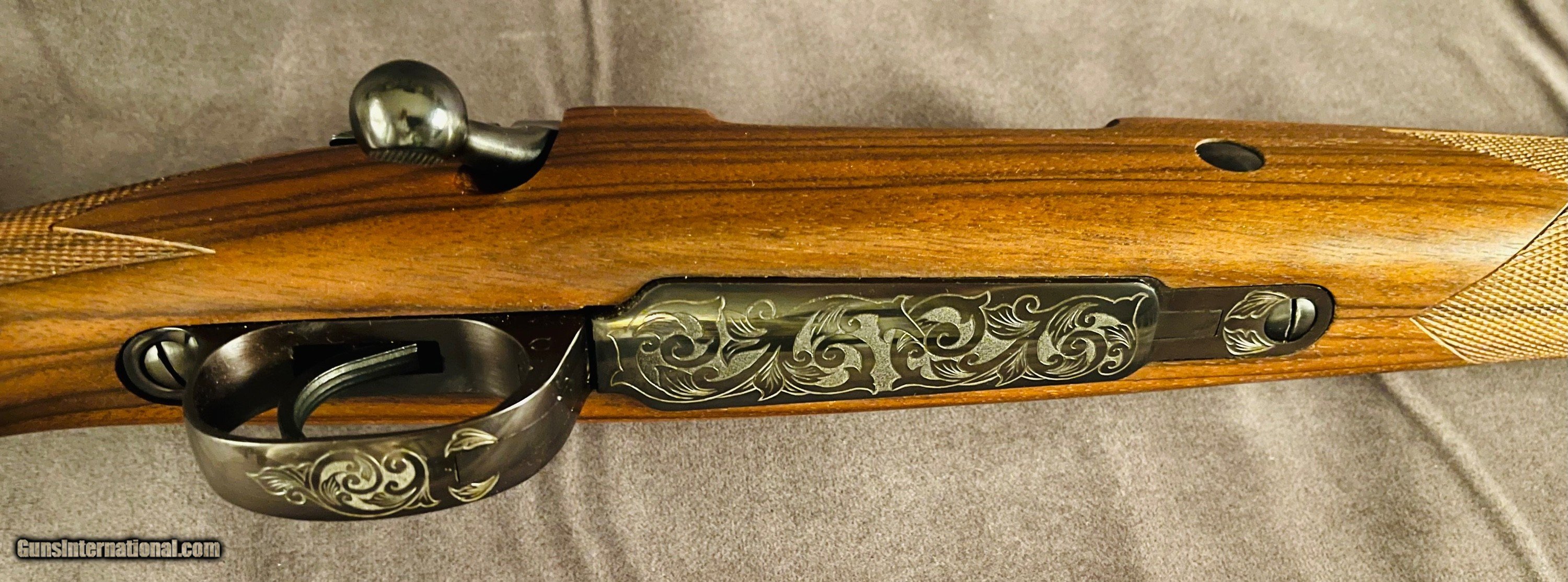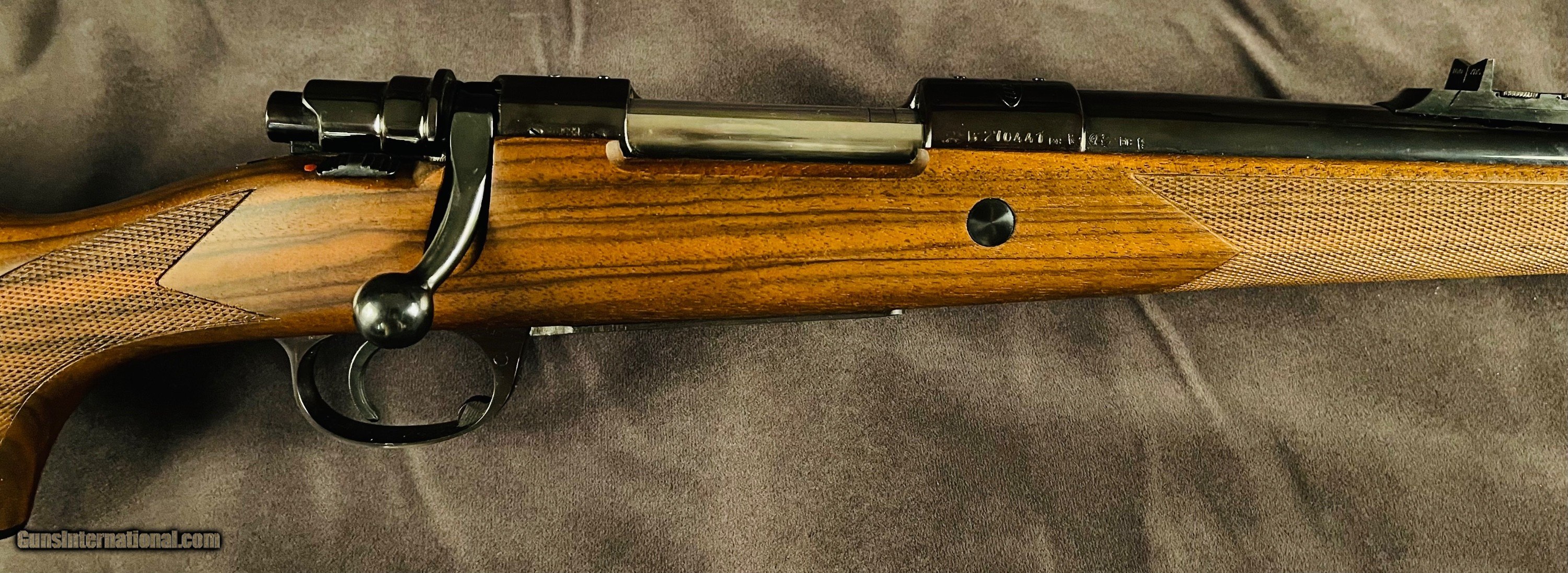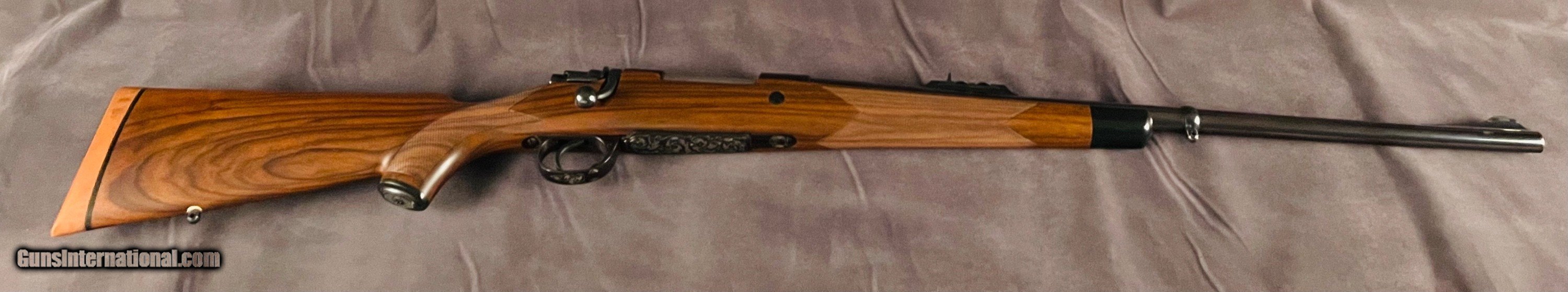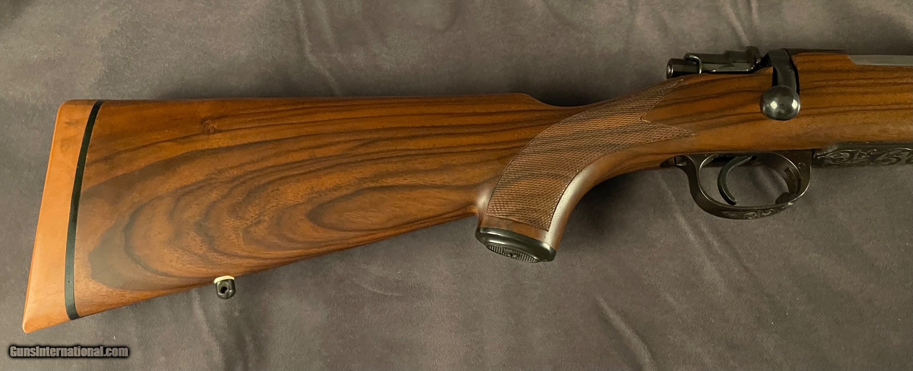 Description: Whitworth .375 Holland & Holland Magnum, Manchester England, Interarms Imported, Express Sights, Barrel Band Sling Swivel, Whitworth Pad, Engraved Bottom Metal. The action on this rifle is clean with no extra holes and no sign of a scope ever having been mounted, blued with engraved floorplate, 24" ported barrel with express sights and barrel band sling swivel. Stock is walnut with hand chequering and original finish and pad, 14" Length of pull. Condition: near perfect original, barrel is ported and we are not sure if this was a factory option, it is very professionally done with no evidence of blue loss, floorplate and guard are engraved. These were factory available options. The action shows little sign of having been fired or cycled. The stock is clean with the chequering being sharp, very light handling marks, pad is original and slighlty discolored, Safe is functional and the trigger has a crisp pull. 0B2704411 MSHSRC $1200.00 Willoughby McCabe & Company. Guns and Rifle for Shooters and Collectors Trading In: Pre War American Sporters, RG Owen, Neidner, Sedgley, Wundhammer, Howe, Seymour Griffin, Hoffman, Springfield '03, Mauser, Fred Adolph, Griffin & Howe, Winchester Pre War Model 70s and Model 54s, Double Rifles- Nitro and Black Powder Sporting Rifles and Shotguns. I am especially interested in 1860-1940 English guns and rifles. Pinfire and flintlock era French and Belgium made high grade. All handmade American cartridge Shotguns and rifles. ALWAYS LOOKING FOR: Damascus barreled English and Continental hammerguns, Damascus barreled American shotguns!!! Hammer double rifles, especially those with Damascus barrels. I am located in Muenster, Texas and can travel to you for purchasing, consignment or appraisal. It is best to Email me at my Guns International address as well as calling or texting my cell. I am often out of cell range and my email is checked daily. SOLD Rifle Caliber: .375 H&H Magnum Manufacturer: Whitworth Model: Express Barrel Length: 24 |
