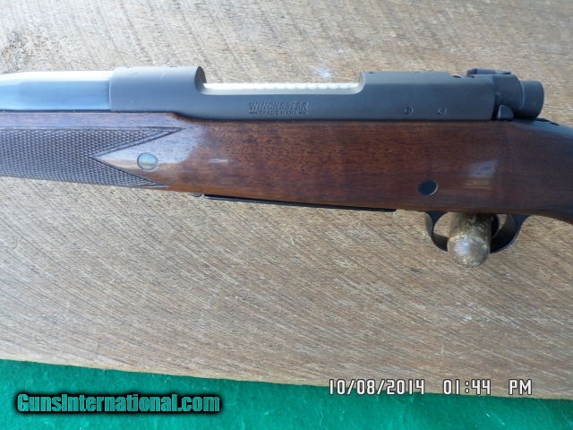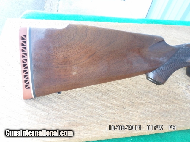 Description: WINCHESTER 1964 MODEL 70 AFRICAN SUPER GRADE 458 WINCHESTER MAGNUM,22" BARREL WITH LIKE NEW BORE,POSSIBLY UNFIRED,EARLY REAR SIGHT AND OTHER EARLY FEATURES.EXCELLENT ORIGINAL CONDITION THRU-OUT,99% ORIGINAL METAL BLUE AND 100% ORIGINAL WOOD CONDITION.SUPER GRADE SWIVELS AND FACTORY WINCHESTER PAD.13 1/2" ORIGINAL L.O.P. OVER PAD. SERIAL NUMBER IS 72009X. WINCHESTER ONLY MADE 3000 PUSH FEED AFRICAN'S SUPER GRADES BETWEEN 1964 THRU 1979. BEST OF THE EARLY ONE'S. 1759.00 PLUS 45.00 SHIPPING. CALL MIKE OR DANNY AT 828-698-8804 IF NEEDED.GOD BLESS! PLEASE EXCUSE ANY OUTDOOR GLARE IN THE PHOTO'S,THIS GUN IS BEAUTIFUL!! SOLD |