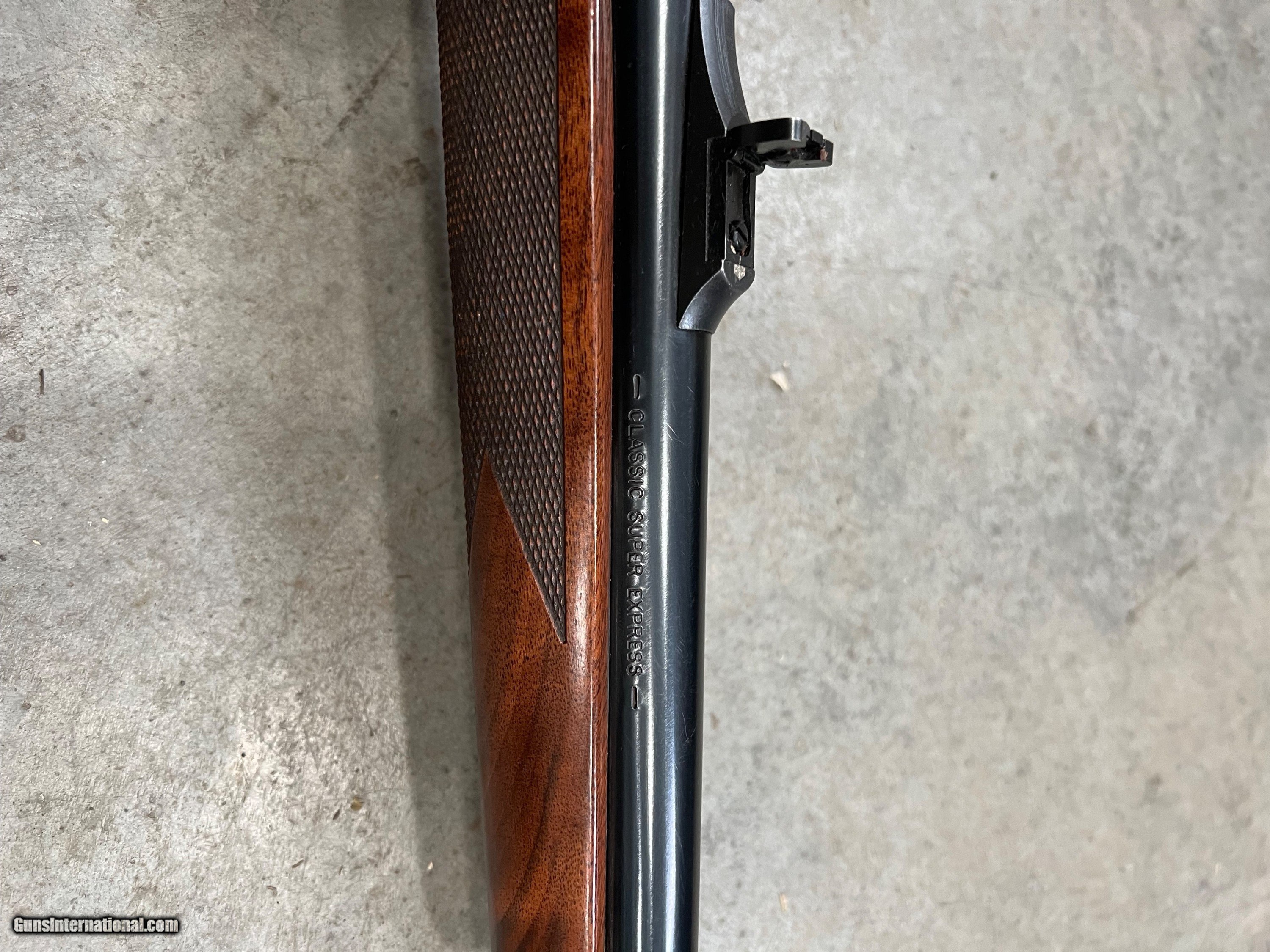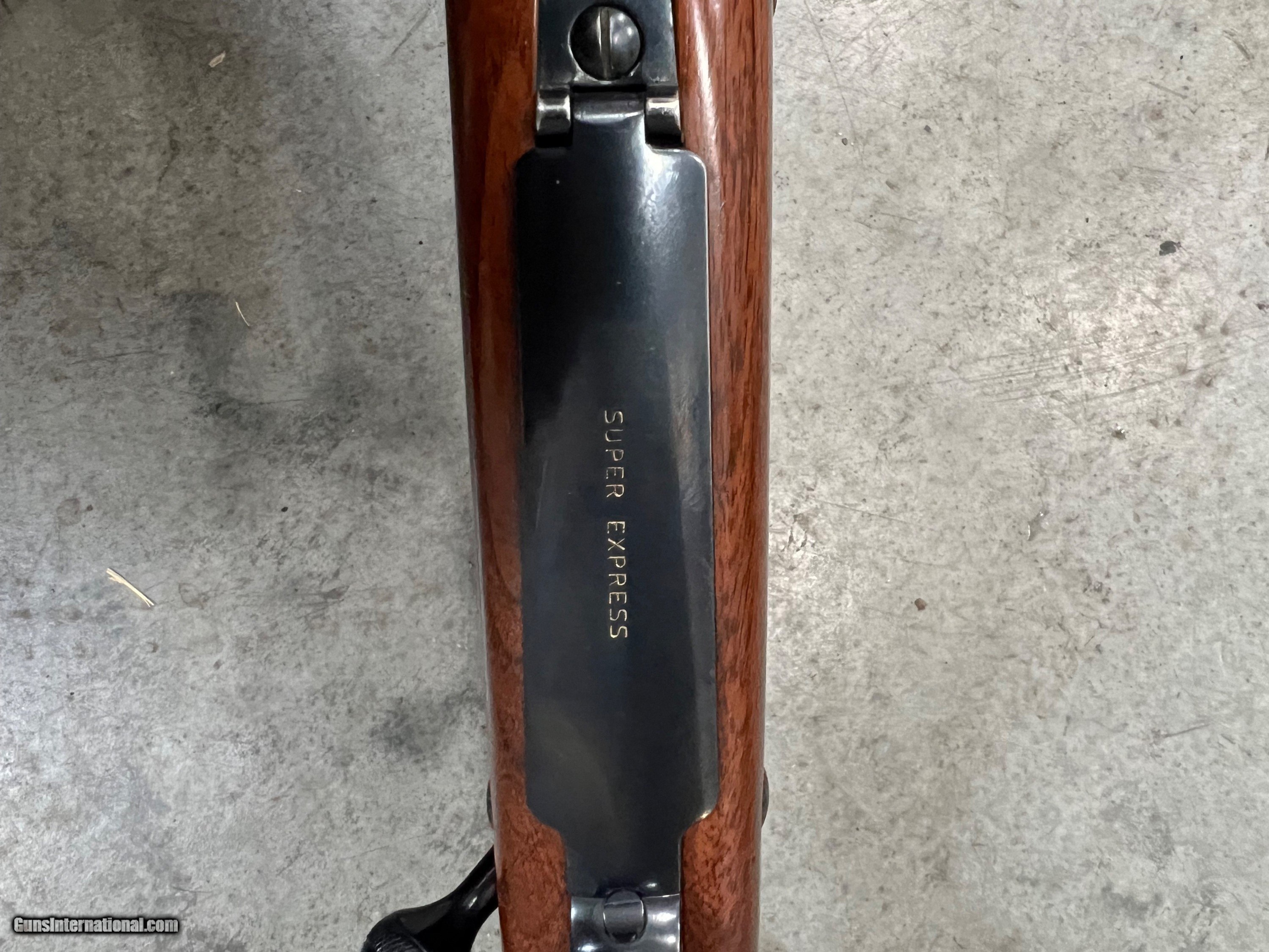 Description: Classic Winchester Model 70 “Super Express” This rifle is a mid 90’s birth certificate and remained new in the packing until February of 2023. It was pulled and cleaned, fired about 20rds through it. New Build forced Sale, I bought it and its been in my safe. I am getting rid of a good portion of my rifles and this is something, while I dream about using on the bush veldt of SA, I just don’t think its going to happen…. Winchester Model 70 Super Express chambered in the quintessential .458 WM that was so popular in the mid 1900’s. This rifle features all the “goodness” of the classic pre 64 that led to the cult following of Winchester…. Except it was built 30yrs later… Earlier this year I contacted Winchester, as I was looking for a safari model in .375 h&h. I was told, “we haven’t done a run of safari calibers in almost 2 years and if you were to order one today you wouldn’t be expecting production for at least 2 years”…evidently Winchester is more interested in running rifles in the $300 range, cheap actions and tupperware stocks… My point being that these are a bit hard to come by. Model 70 Controlled Round Feed action. A true classic! -beautiful jeweling on the bolt body, no wear -2 piece bottom metal, with the floor plate engraved “Super Express” Also uses the Pre 64 style trigger, simple, easy to service in the field -This is an option that was only found for a handful of years after Winchester returned to making the CRF actions. It falls in with the crf production but it is before Winchester moved to the MOA trigger system that is utilized today. -Trigger breaks very nice Beautiful bluing all around and remains in “like new” condition. As you can see the stock has some nice character and good grain for the caliber -two cross bolts in the stock to help mitigate recoil -classic red pad -nice bedding of the action -super grade style sling swivel on the rear and a barrel mounted option up front -Checkering is very nice and definitely of higher quality than I see these days -a good looking grip cap is another option that differ’s this rifle from the safari class m70’s of current production -another thing you’ll find is the overall shape of this stock just feels better “in hand” than current production rifles The barrel is the heavy safari contour -22” barrel length, quick handling and superior to the current models, in my opinion -with open sights, a flip down island style rear. I nice white bead on the front, no hood with the front sight -bluing is good and the crown is flawless The bluing and the wood are flawless and while this has been handled, minimally, I find no “marks” that I can even get a photo of. This has been handled though so please expect there may be some very minor handling marks This rifle is in fantastic shape. I would like $1700 plus shipping to your ffl, I will ship from an ffl (no fee) SOLD Rifle Caliber: .458 Winchester Magnum Manufacturer: Winchester Model: 70 Barrel Length: 22 Condition: Like new Metal Condition: 100 Wood Condition: 100 Bore Condition: 100 Action: Bolt action Butt Pad: 3/4” LOP: 13.5 |