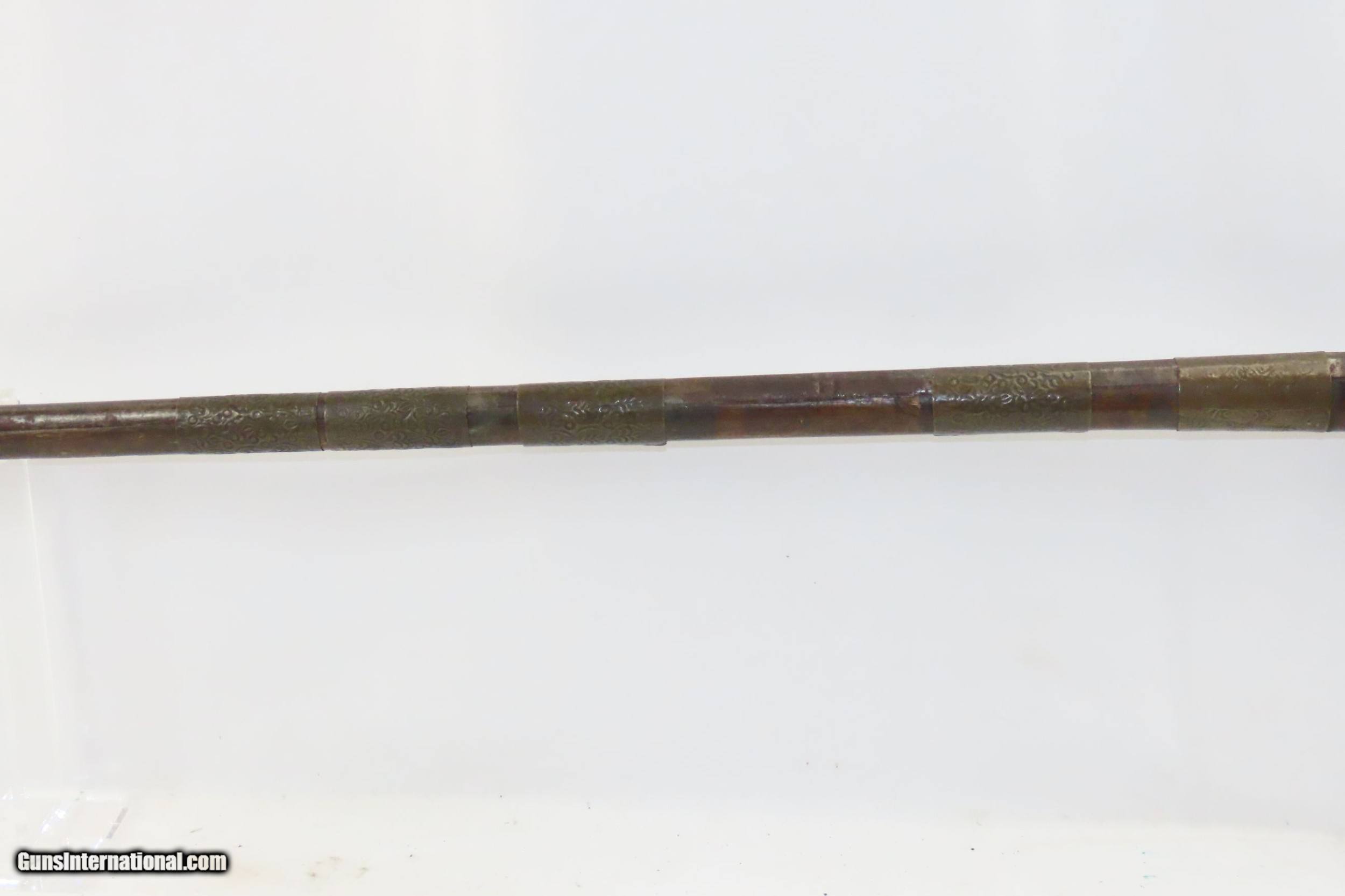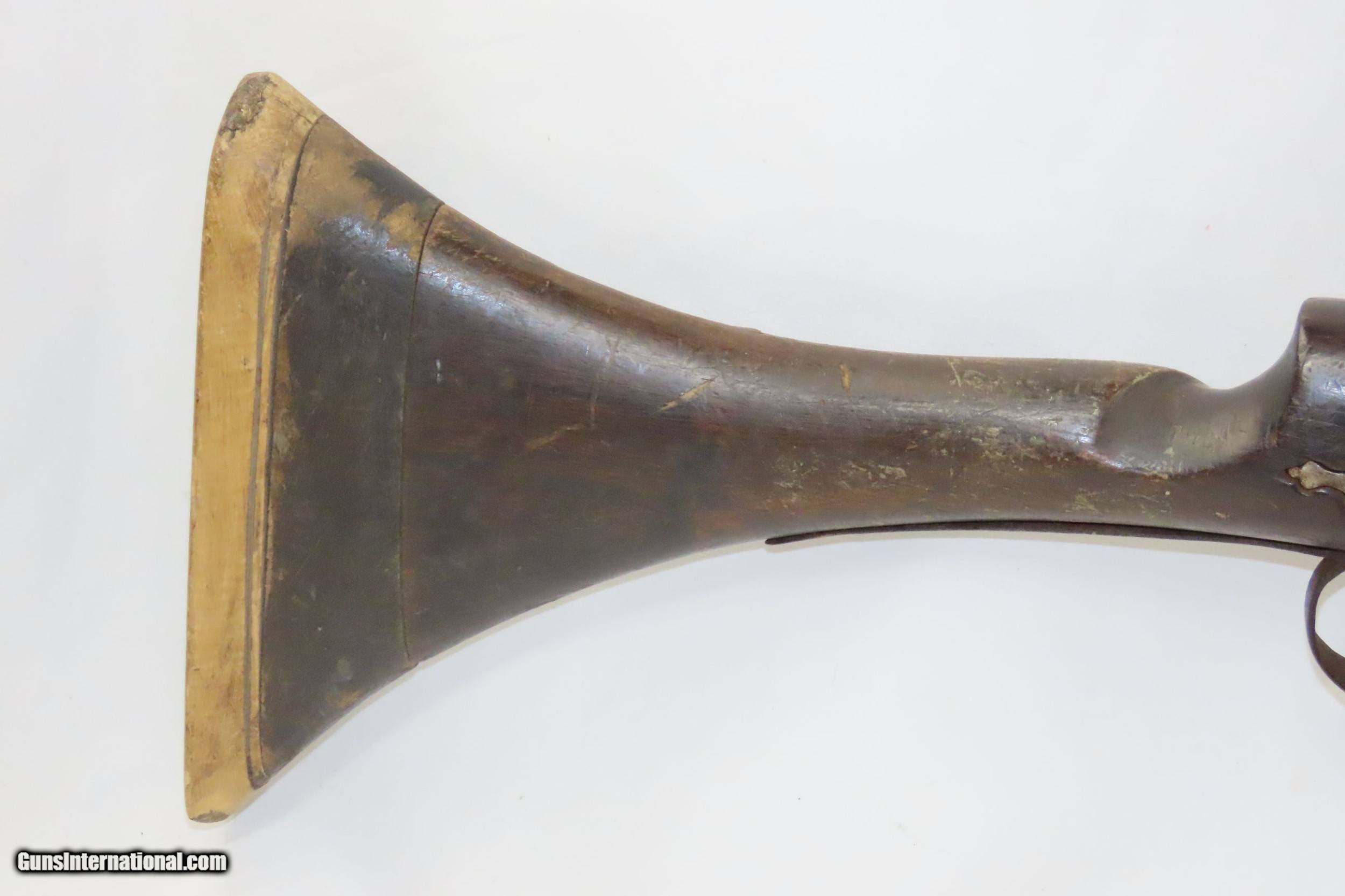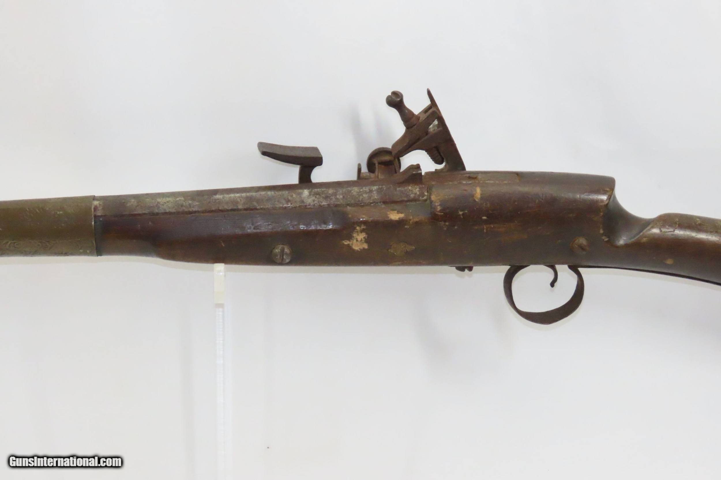 Description: BARBARY COAST/MEDITERRANEAN Antique KABYLE Snaphaunce FLINTLOCK Musket Unique North African Berber Flintlock Musket Here we present an antique Kabyle Snaphaunce Musket (also called moukalla), made circa 1800 in the Barbary Coast region of North Africa. The Barbary Coast was home to much upheaval, as many of the various kingdoms that made it up were member states of the Ottoman Turkish Empire. Pirates found their safe havens on the coast and raided the Mediterranean Sea and taking slaves. The slave trade was another unsavory reality of the northern coast of North Africa. In fact, piracy and the taking of European and American slaves came to be so great a problem at various points over the centuries that nations like Spain and even the U.S. took military action—Spain in the 1730s and America in 1805. The snaphaunce lock was one of the earliest flintlock systems. These types of locks were used with this style of musket in Africa for a very long period, one source stating from the 17th through the 20th century. The action does not function. The bore is smooth and dark. Absent ramrod. A slight bend in the muzzle is present. Own the original! This is a legitimate antique and not a reproduction. Barrel is 52 inches. Caliber: .60 Overall condition as seen in photos. Very Fast. Very Safe. FREE SHIPPING WORLDWIDE. Delivered directly to your door by express mail! Guaranteed AUTHENTIC & Includes CERTIFICATE OF AUTHENTICITY. ancestryguns $1200 #217742 SOLD Antique: Yes |
