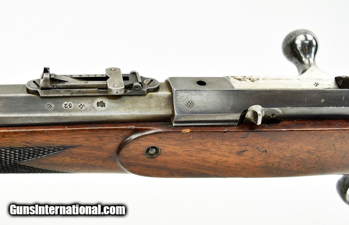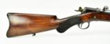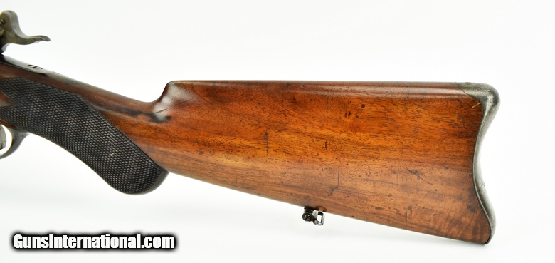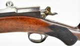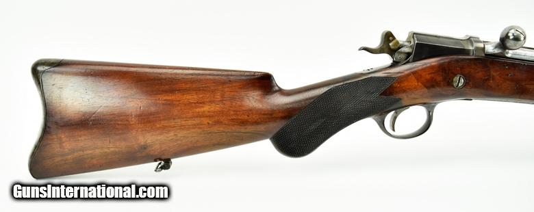 Description: Deluxe Remington Keene .45-70 caliber rifle. Very fine gun made in .45-70 caliber. 90% of the blue remains. Gun has English proof marks, meaning it was probably sold in England. Wood is very fine with sharp checkering. Bore is excellent. Very fine gun. SOLD |