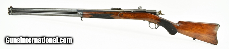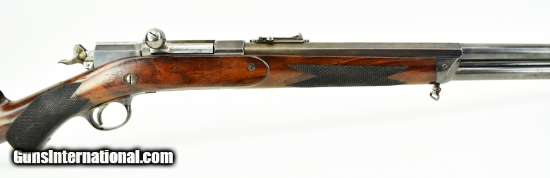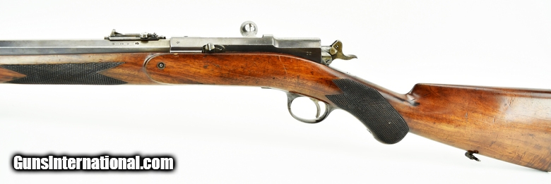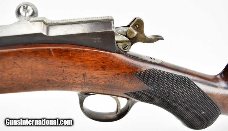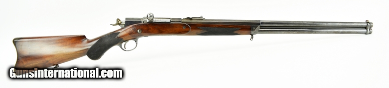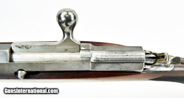 Deluxe Remington Keene .45-70 caliber rifle. Very fine gun made in .45-70 caliber. 90% of the blue remains. Gun has English proof marks, meaning it was probably sold in England. Wood is very fine with sharp checkering. Bore is excellent. Very fine gun.