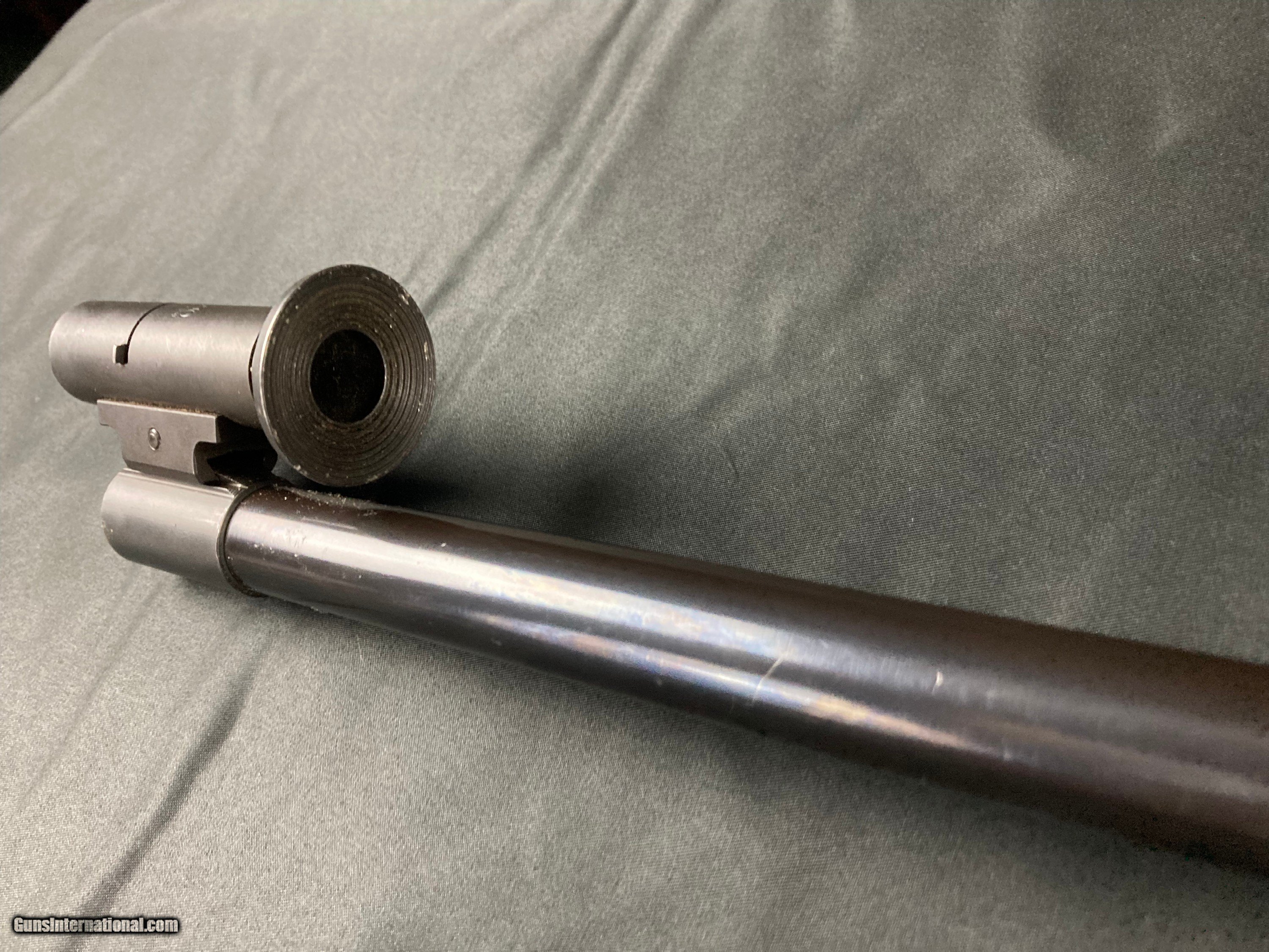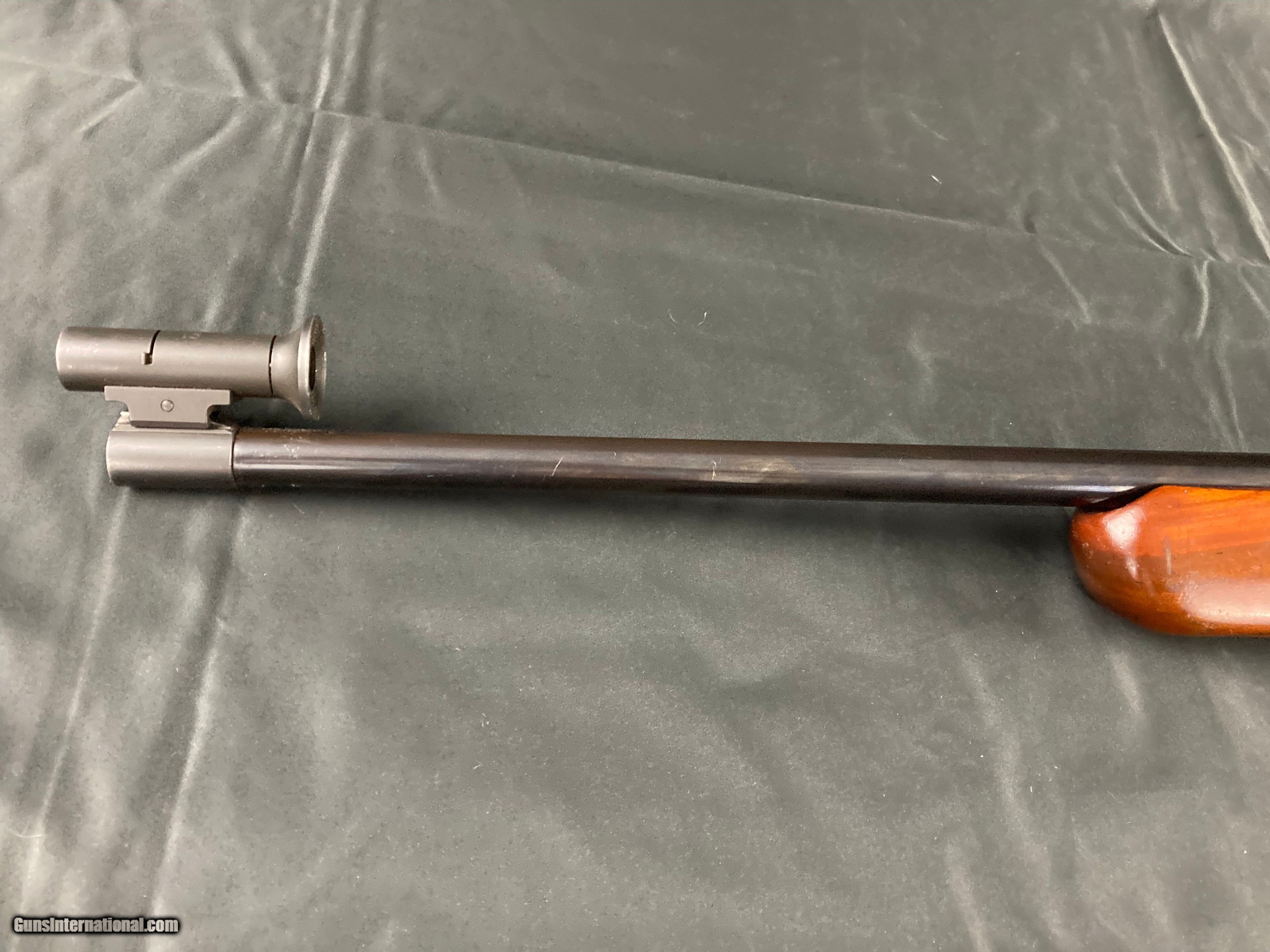 Description: Anschutz Model 54 Match 22LR, no import marking, older model, single shot, serial #16XXX, 25 1/2" heavy barrel, weighs 9lbs, 12oz, Anschutz micrometer peep sight and Redfield Olympic Front sight, cheekpiece and palm swell for right-hand shooter, the rear receiver bridge and top of the barrel are grooved for sights or scope, the walnut stock is checkered in the grip, on the sides of the forearm and on the bottom of the forearm, there is a handrail on the forearm bottom, excellent bore, original wood varnish with a small amount of light handling wear, 98% blue, no alterations, original buttplate, excellent overall $1,075 + $75 shipping SOLD Rifle Caliber: .22 Long Rifle |