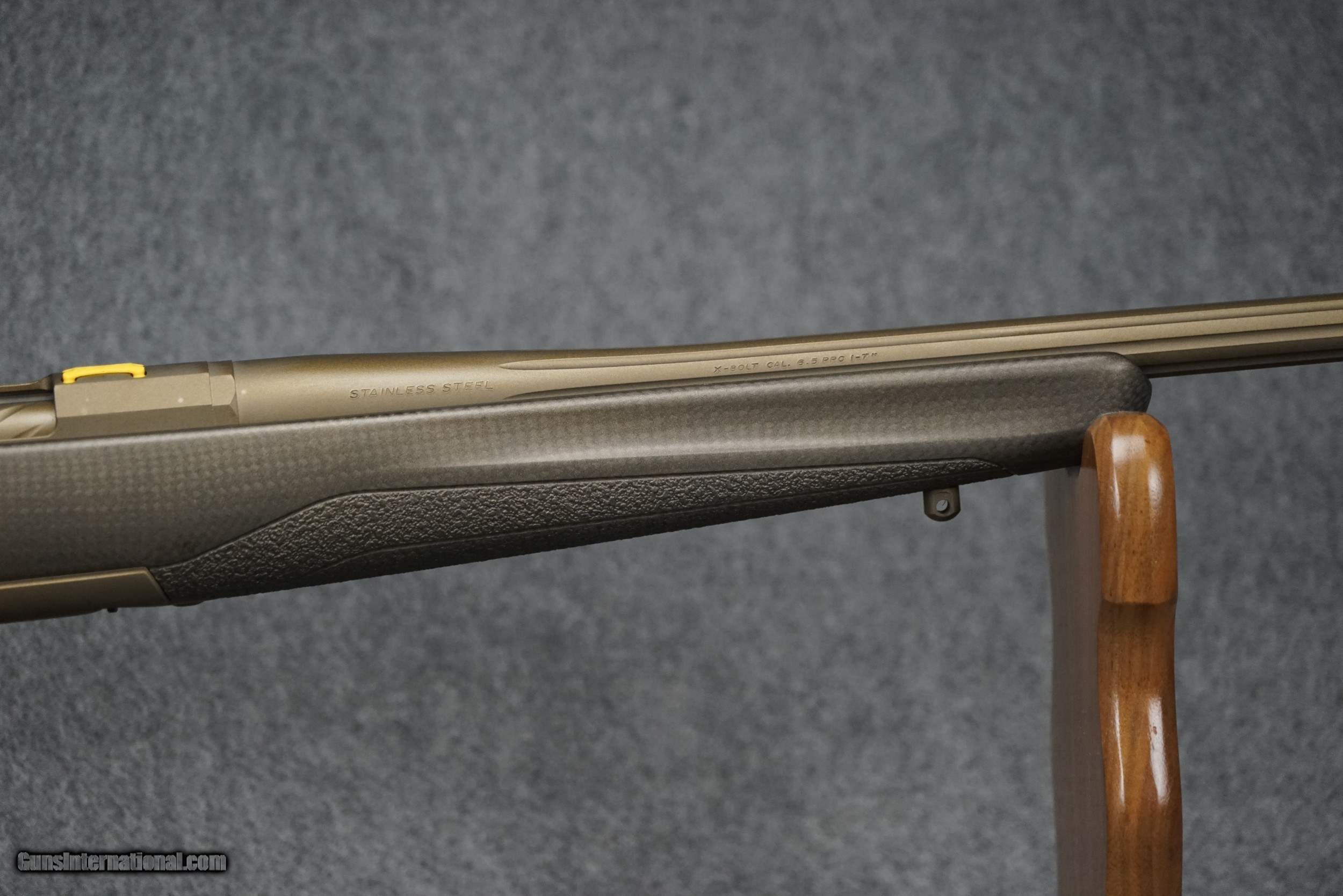 Description: A top-tier hunting rifle. Browning is delving into semi-custom rifle production with the new X-Bolt Pro. What classifies the X-Bolt Pro as a "semi-custom rifle" is the level of specialized finishing touches and high-end construction above the already top-tier X-Bolt family of hunting rifles. First, the X-Bolt Pro features a true carbon fiber stock, making it extremely lightweight and rigid. The stock is filled with a noise-dampening foam. Cerakote durability. Additionally, the Cerakote finish on the action and barrel is also on the exterior of the stock for added protection. The burnt bronze hue mutes the color of the stock for better concealability. The barrel features a new proprietary lapping process to provide consistent accuracy and easier bore cleaning, avoiding the need for a time-consuming break-in process. Other features include a spiral fluted bolt, enlarged bolt handle and a threaded muzzle with a muzzle brake or thread protector cap. RECEIVER – Stainless steel; Cerakote Burnt Bronze finish; Glass bedded; Drilled and tapped for scope mounts BARREL – Lightweight sporter; Proprietary lapping process; Stainless steel; Cerakote Burnt Bronze; Fluted; Threaded muzzle brake; Thread protector supplied ACTION – Bolt-action; Spiral fluted bolt, bolt knob STOCK – Second generation carbon fiber; Textured gripping panels; Cerakote Burnt Bronze; Palm swell; Inflex recoil pad FEATURES – Sling swivel studs Action Length Short Action Caliber 6.5 PRC Barrel Length 24" Overall Length 44" Length of Pull 13 5/8" Drop at Comb 11/16" Drop at Heel 1/2" Weight 6 lbs 3 oz Magazine Capacity 3 Twist Rate 7" Barrel Finish Burnt Bronze Cerakote Stock Finish Burnt Bronze Cerakote Receiver Finish Burnt Bronze Cerakote Chamber Finish Polished Barrel Material Stainless Barrel Contour Sporter Stock Material Carbon Fiber Recoil Pad Inflex 1, Small Pistol Grip Cap None Checkering Textured Grip Panels Sling Swivel Studs Cerakote Receiver Material Stainless Trigger Finish Gold Plated Bolt Slide Finish Burnt Bronze Cerakote Magazine Type Detachable Trigger Material Alloy Trigger Guard Material Alloy Trigger Guard Engraving Buck Mark in Black Floor Plate Material Composite Drilled and Tapped for Scope Yes SOLD Rifle Caliber: 6.5 PRC Manufacturer: Browning Model: X-Bolt Pro Barrel Length: 24 Condition: BRAND NEW |