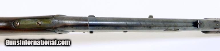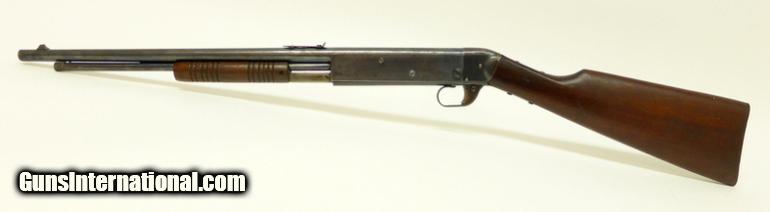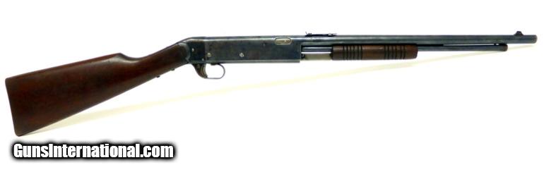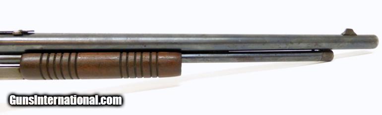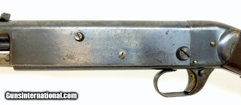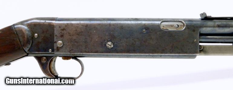 Description: C.J. Hamilton & Son 39 .22 Short caliber rifle. Pump action short barrel rifle that was made for boys prior to WWII. Wood is in good to very good overall condition with dents and dings and a minor crack on the pump forehand. Bore is in good condition and is dark in the grooves with strong rifling. Has 80% of original blue and minor frosting. Good overall condition. SOLD |