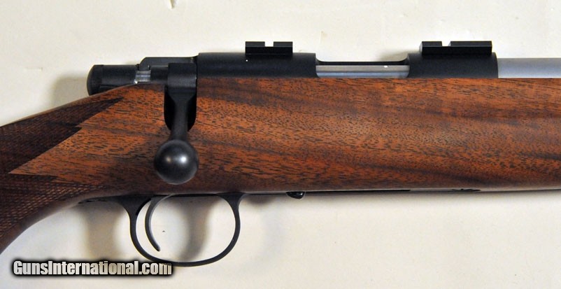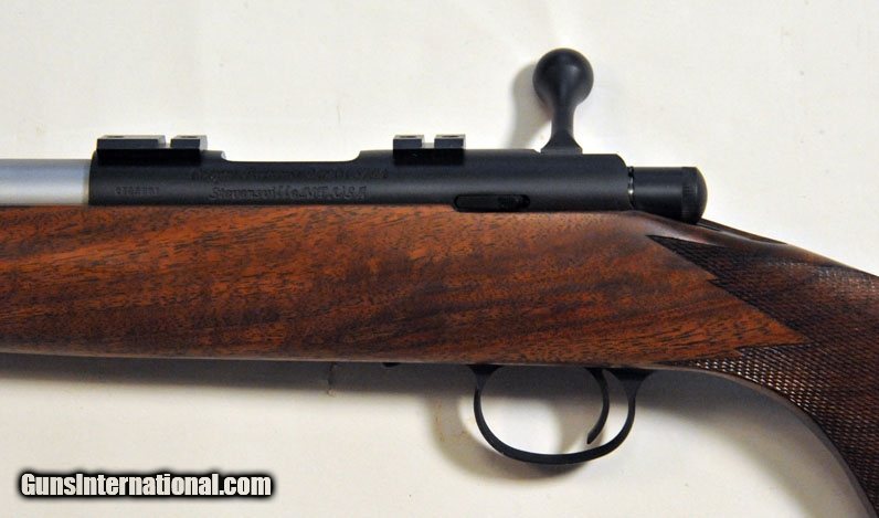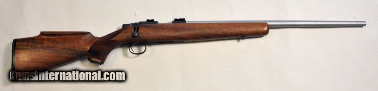 Description: Cooper Firearms Model 57M Jackson Squirrel Rifle Ser. No. CF23661. .17 HMR- 22" stainless match barrel. Steel grip cap, rollover cheekpiece and AA+ wood. Comes with Warne rings and bases. New in the box with all the papers. SOLD |
