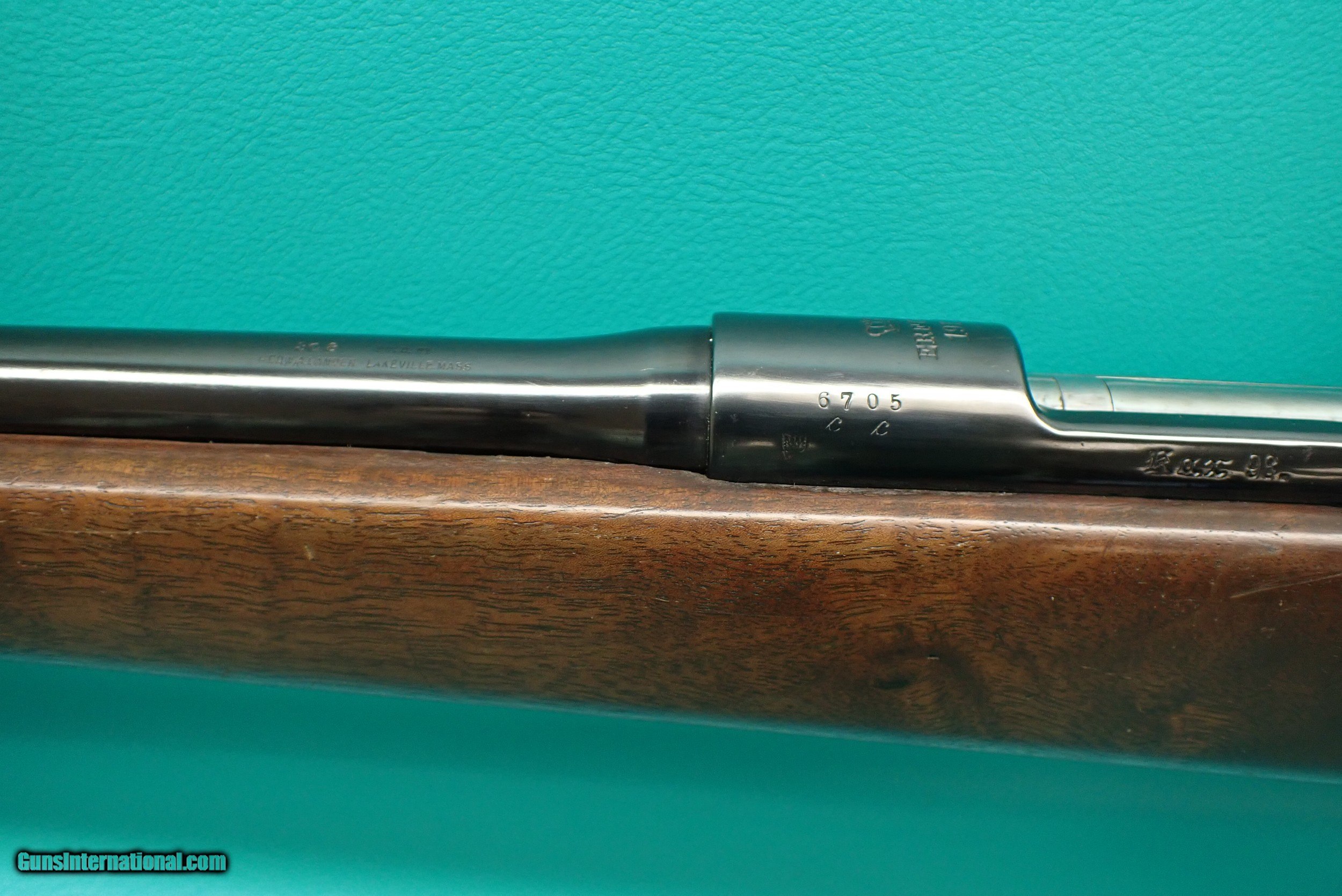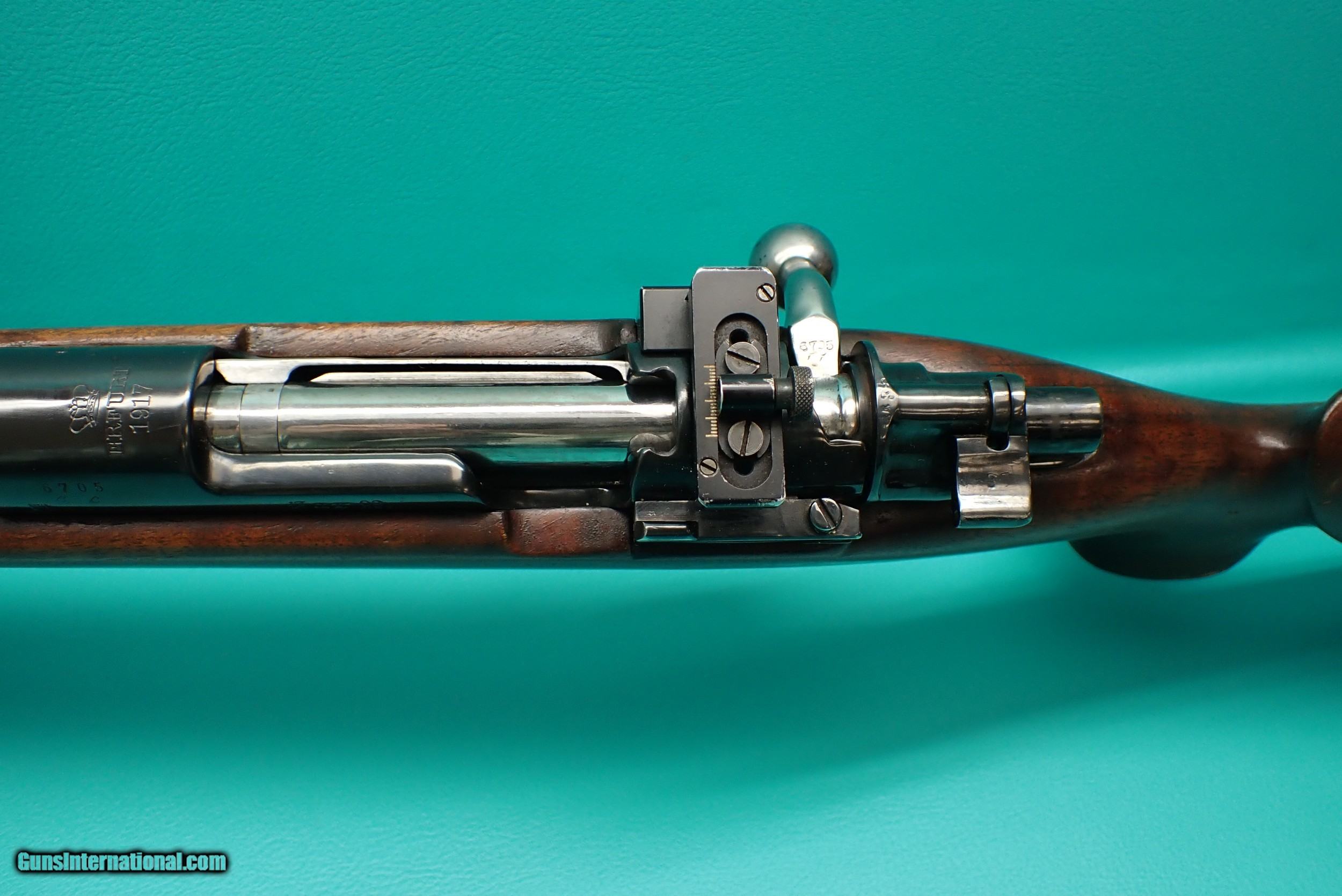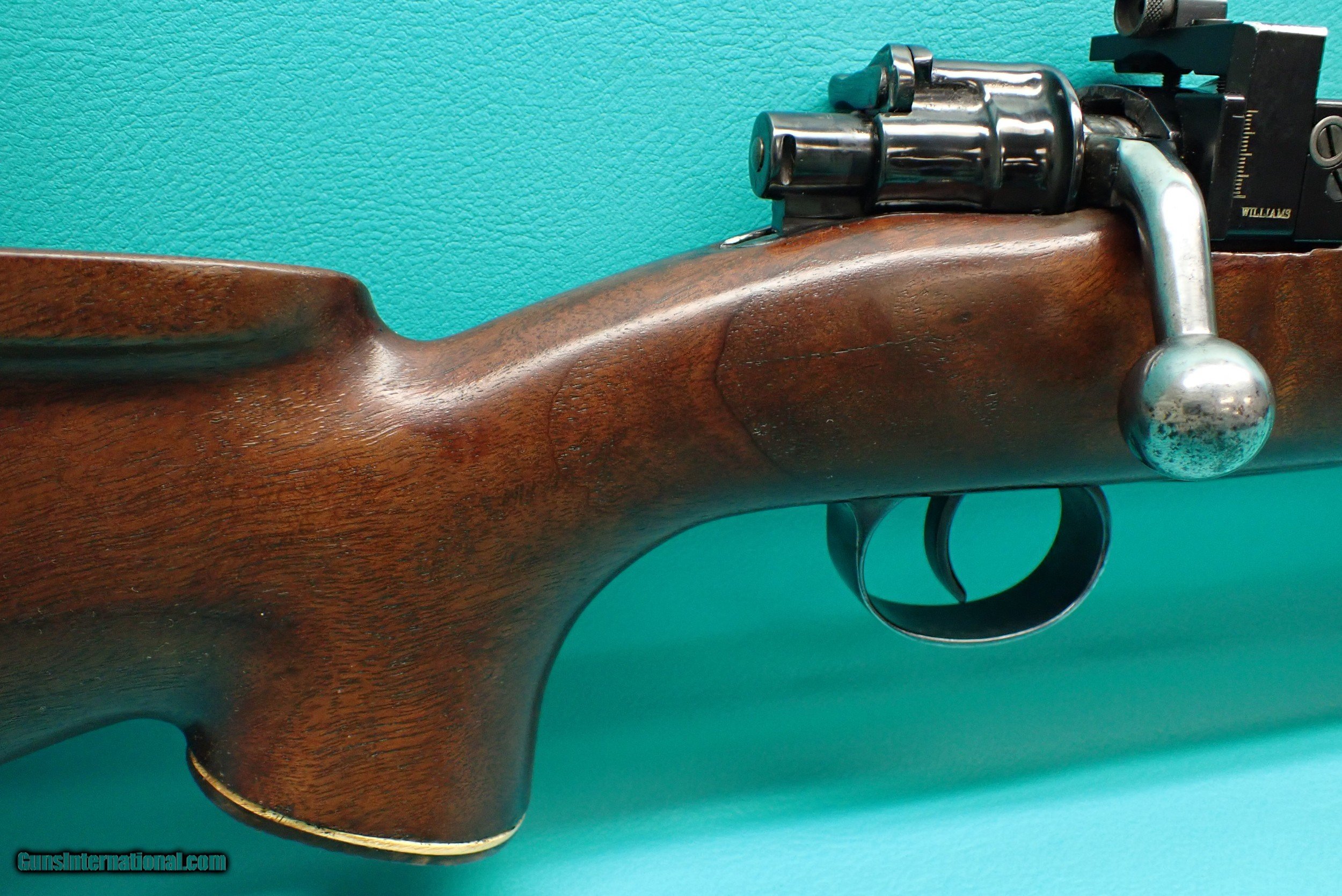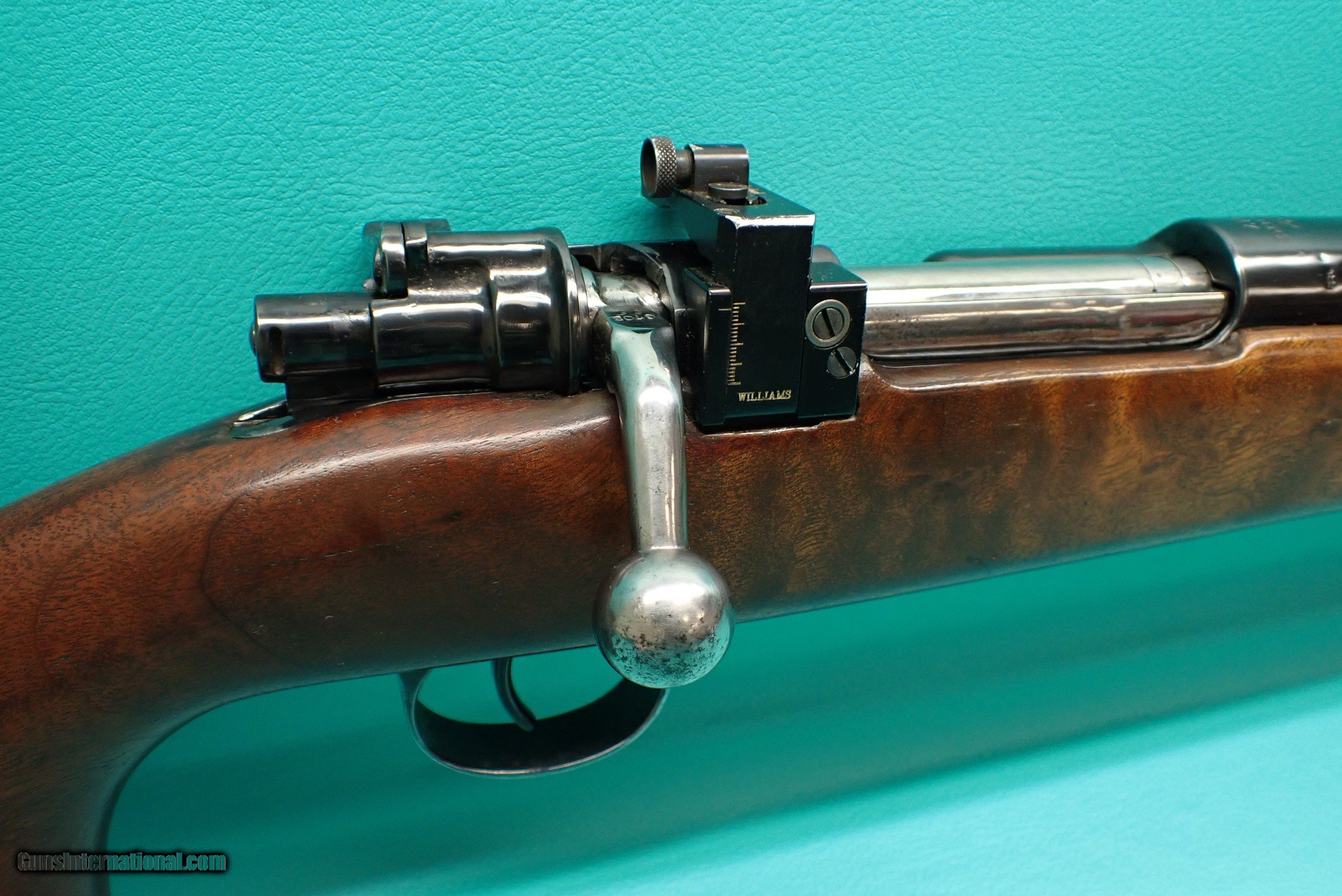Description: **SOLD**Sporterized Mauser K98 bolt action rifle, originally manufactured in 1917, re-barreled and customized by noted gunsmith and rifle maker Ed Lander, formerly based out of Lakeville, MA during the 1950's and 1960's. The rifle features a handy 22" barrel chambered in .308 Winchester, a beautiful walnut stock with stylized grip and cheek rest, ebony grip cap and forend tip, and a little compass inletted into the stock. An adjustable peep sight is fitted to the receiver. Some minor finish wear can be seen in areas. Please refer to the photos for overall condition. The rifle modifications seem to have been well done, and what we have here is a fully functional Mauser sporter, perfect for field use! C&R OK. Shipping $60**SOLD** SOLD Curio/Relic: Yes Rifle Caliber: .308 Winchester Manufacturer: Ed Lander Model: Mauser K98 Serial Number: 6705 |