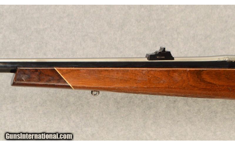 Description: SOLD Caliber Info: .264 Win Magnum Metal Condition: Very Good Wood Condition: Good Bore Condition: Excellent Barrels: 22 Triggers: Smooth, adjustable trigger Stock: Walnut checkered monte carlo with raised comb and rosewood white line grip cap Stock Dimensions: 14 1/4" LOP Fore End: Checkered walnut with rosewood white line tip Butt Pad: Pachmayr White Line recoil pad Weight: 7 lbs. 8 ozs. Sights: Scope bases attached. Also, Williams adjustable rear sight and blade front sight Extras: Made in England from early to mid 1960's. Limited production rifle with Mauser 98 action. No box. Item Location: Garner, NC |