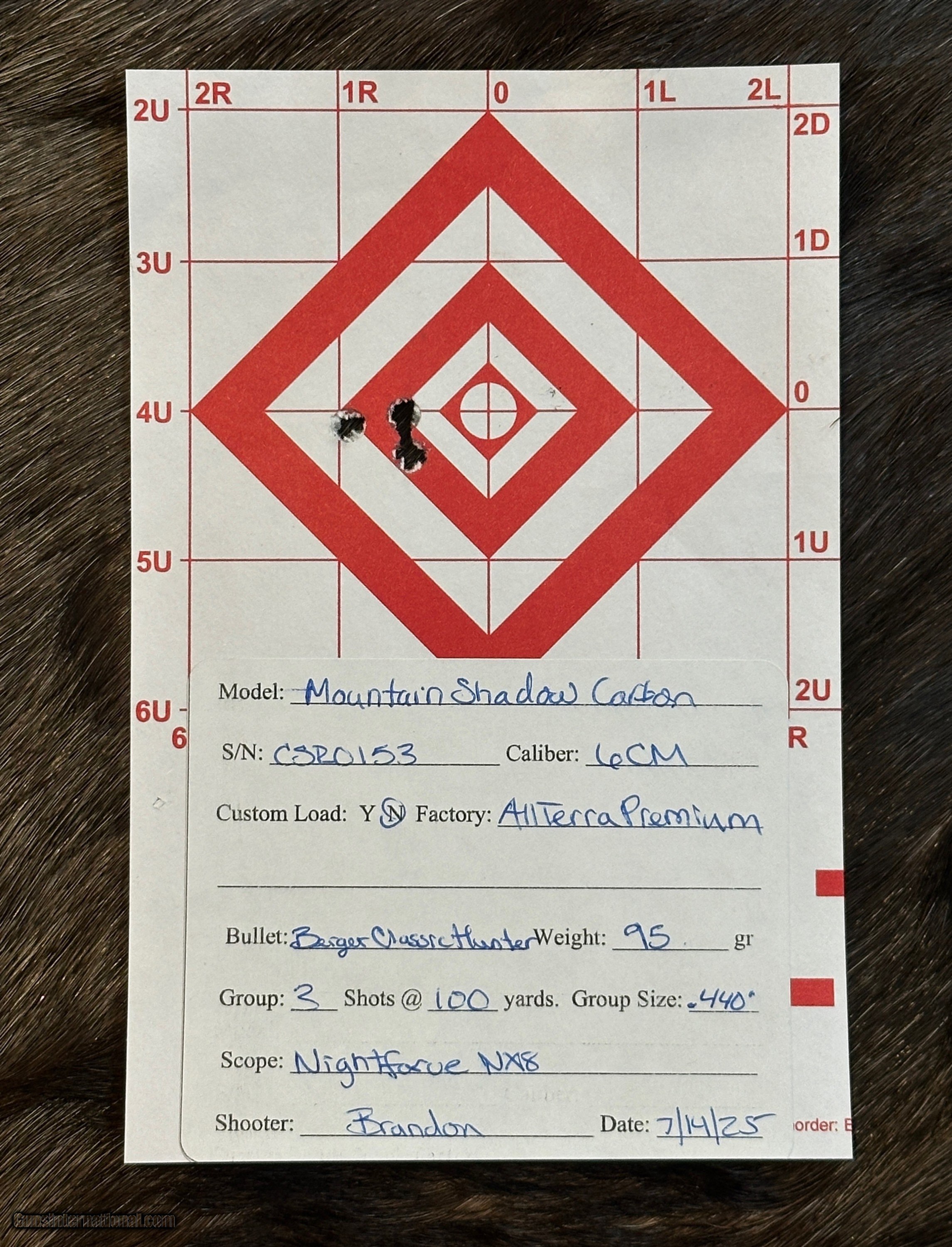 FREE SAFARI, NEW ALLTERRA ARMS MOUNTAIN SHADOW CARBON 6mm CREEDMOOR 22" W/ UPGRADES, AMMO - LAYAWAY AVAILABLE