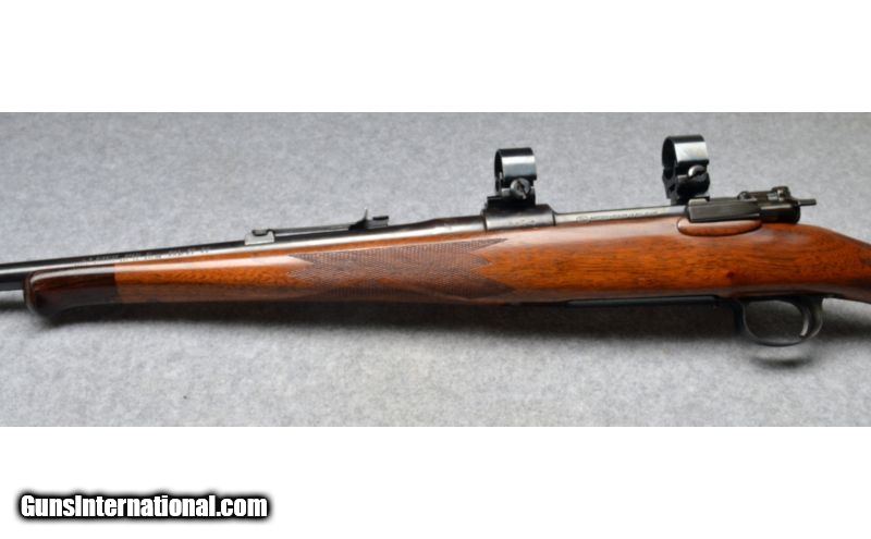 Description: BEAUTIFUL EUROPEAN STYLE HUNTING RIFLE ALSO STAMPED SEARS ROEBUCK AND CO. SOLD Caliber Info: .30-06 Metal Condition: VERY GOOD PLUS Wood Condition: VERY GOOD PLUS Bore Condition: VERY GOOD Barrels: 22 INCHES Triggers: HIGHT ADJUSTABLE REAR, BLADE FRONT WITH SCOPE MOUNTS AND RINGS Stock Dimensions: 13.75 INCH LOP Butt Pad: WOODEN INTEGRAL Weight: 7 POUNDS AS PICTURED Item Location: Fort Mill, SC |