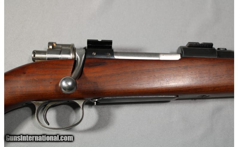 Description: J.C. Higgins (Sears brand) Model 50 in .270 WIN. Rifle was made by FN in Belgium. Good overall finish showing little wear. A few dings and scrapes on the wood. 22" barrel with factory front sight. .270 Winchester SOLD Metal Condition: good Wood Condition: good Bore Condition: bright Barrels: 22 Stock Dimensions: 14 Fore End: smooth wood Butt Pad: Supreme rubber Sights: factory front sight Item Location: Council Bluffs, IA |