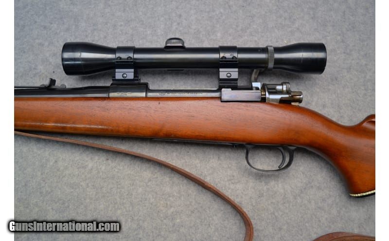 Description: J. C. Higgins Model 50 Bolt Action Rifle in .30-06 Springfield. It is built on a Belgian FN Model 98 Mauser action with a 22-inch barrel. The unscoped weight is around eight pounds. Includes a Weaver 60-B Scope. .30-06 Springfield SOLD Barrels: 22 Weight: 8 LB Item Location: christiana |