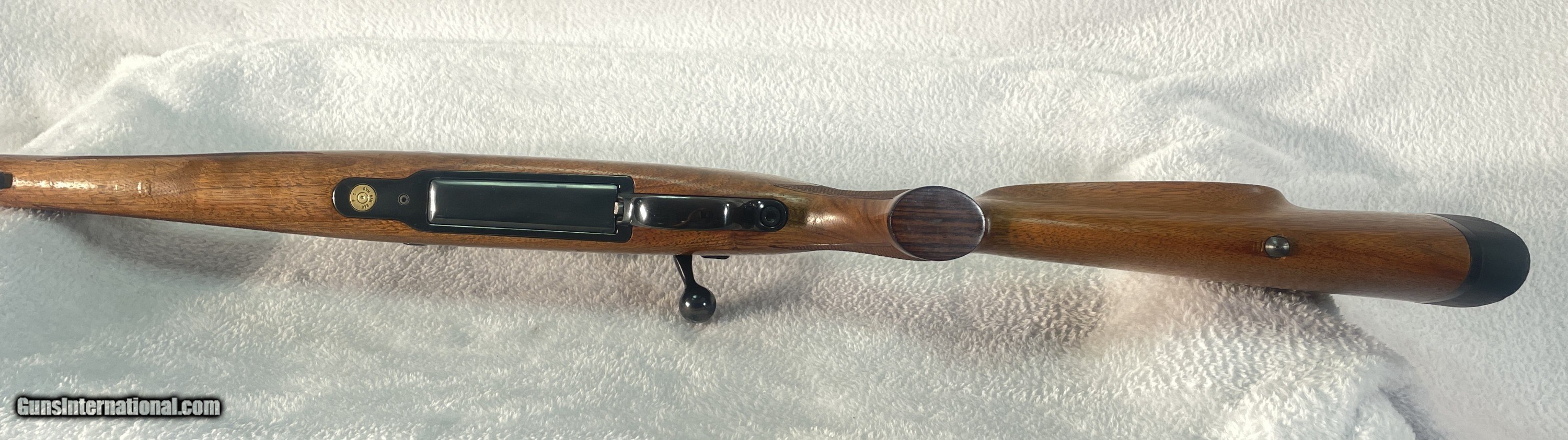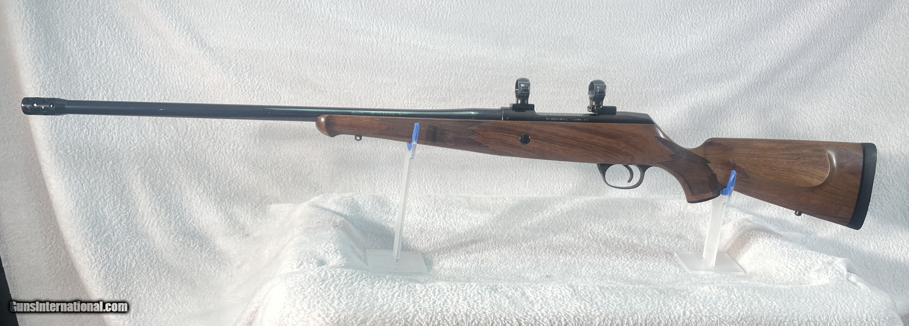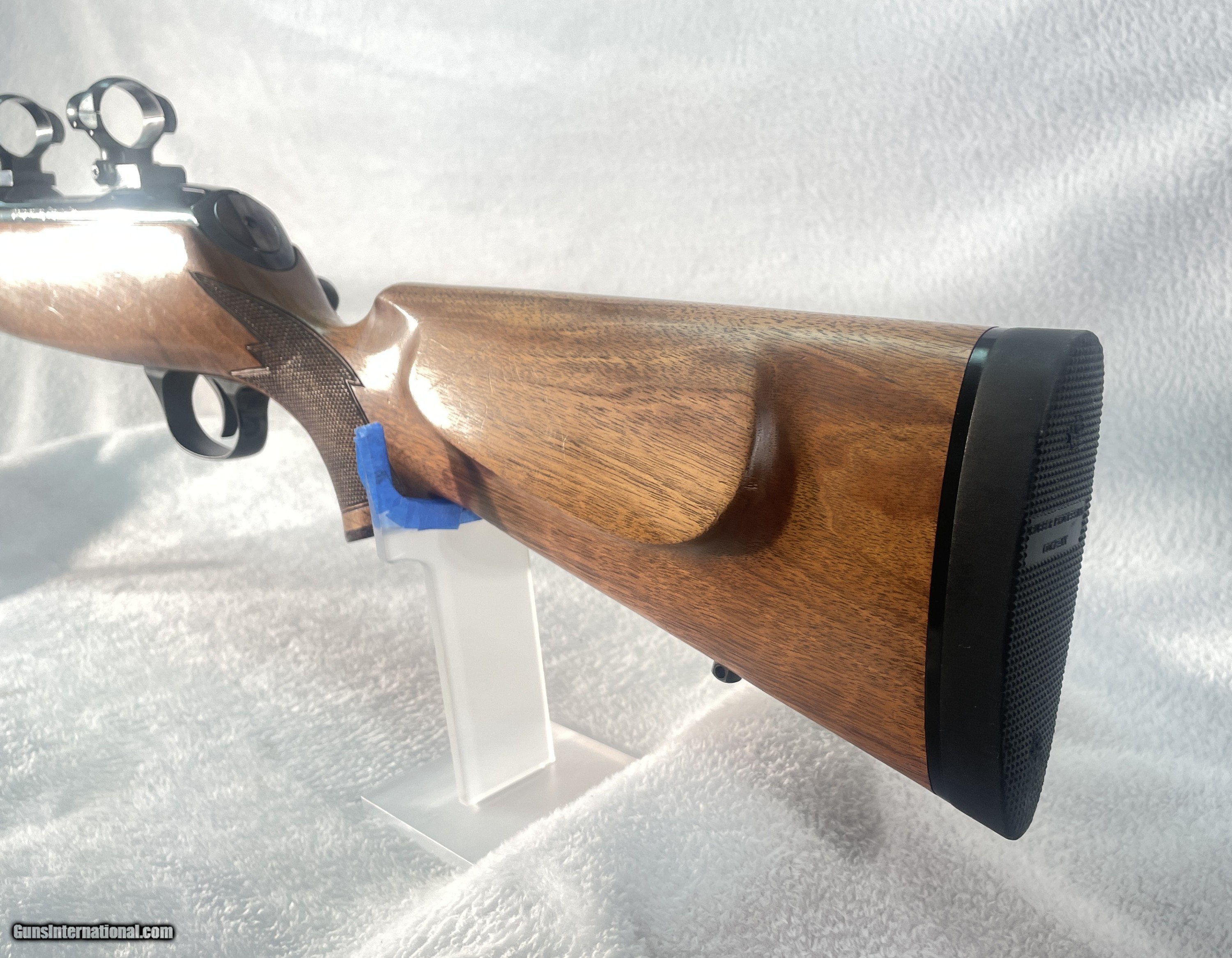Description: A C&R FFL cannot be used to transfer this firearm. I'm new to Guns International. If you'd like to know more about me and read feedback from years of favorable trades with my clients, you can search for me on GB as Pottsbk. Kleinguenther K-15 improved bolt action rifle. 338 Winchester Magnum caliber. Serial number 899927 which dates to 1985. 23” barrel with an patented Kleingunther muzzle brake. The brake tames muzzle jump and recoil to the equivalent of a 30-06 recoil. Very effective brake design. This Improved K-15 model rifle includes the brake, nicer wood than a standard K-15, a 338 wm case head inletted into the stock, Schnabel stock forend, and a detachable box magazine. Built on a commercial small ring Mauser action by Voere in Germany, and finished by Kleingunther in TX. Factory letter can be provided upon request. Scope bases and 1" rings are included. Weight 8 lb 7 oz. LOP 13 13/16" from the trigger to the recoil pad. Trigger pull is adjustable and is set now at 2 lb 13 oz. The stock finish and bluing is in excellent condition. Shipping costs include packaging, FFL transfer on my end, USPS shipping the rifle in the lower 48 states, and full insurance. Shipping to Alaska is a few bucks more. Sales are only to the USA 50 states with the exception of no sales to: California, Hawaii, District of Columbia. No International sales. DO NOT OFFER TO PURCHASE THIS IF YOU LIVE IN ONE OF THE STATES THAT I LIST ABOVE WHERE I CANNOT SHIP. Sales price: $2,195 Shipping: $80 Rifle Caliber: .338 Winchester Magnum Manufacturer: Kleinguenther Model: K-15 Imp Serial Number: 899927 Barrel Length: 23 Bore Info: Very Good Chambers: Excellent Condition: Excellent Metal Condition: Excellent Wood Condition: Excellent Bore Condition: Very Good Action: Bolt Butt Pad: Rubber LOP: 13 13/16 Finish: Satin Weight: 8lb 7oz Sights: scope bases and 1" rings Manufacture Date: 1985 Case: gun sock provided Optic: none provided Price: $2,195.00 Shipping: $80.00 Buy Now Contact Seller |