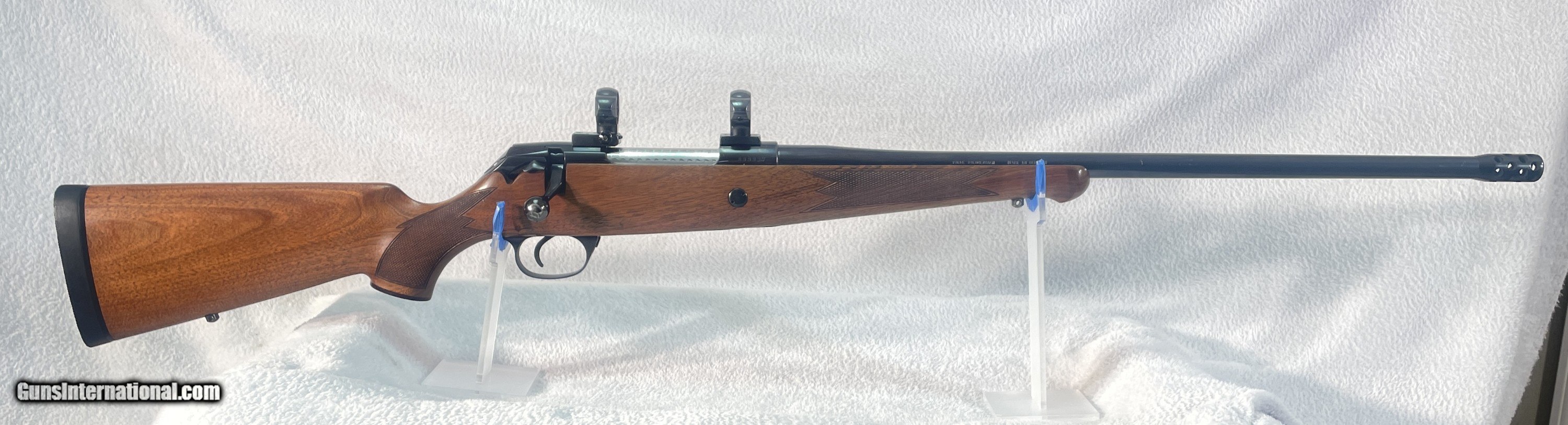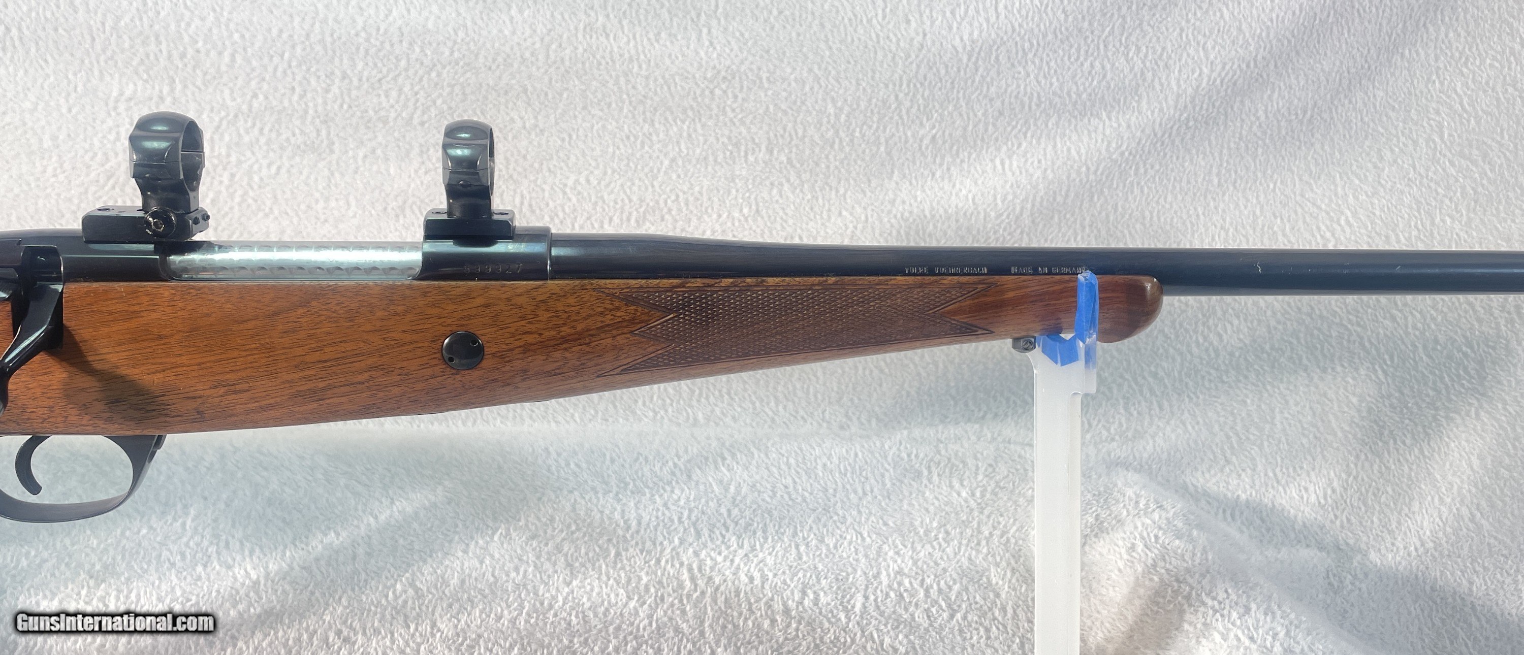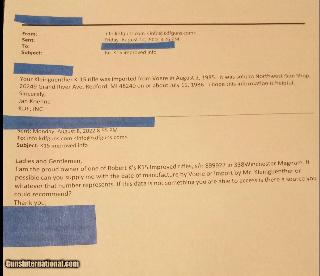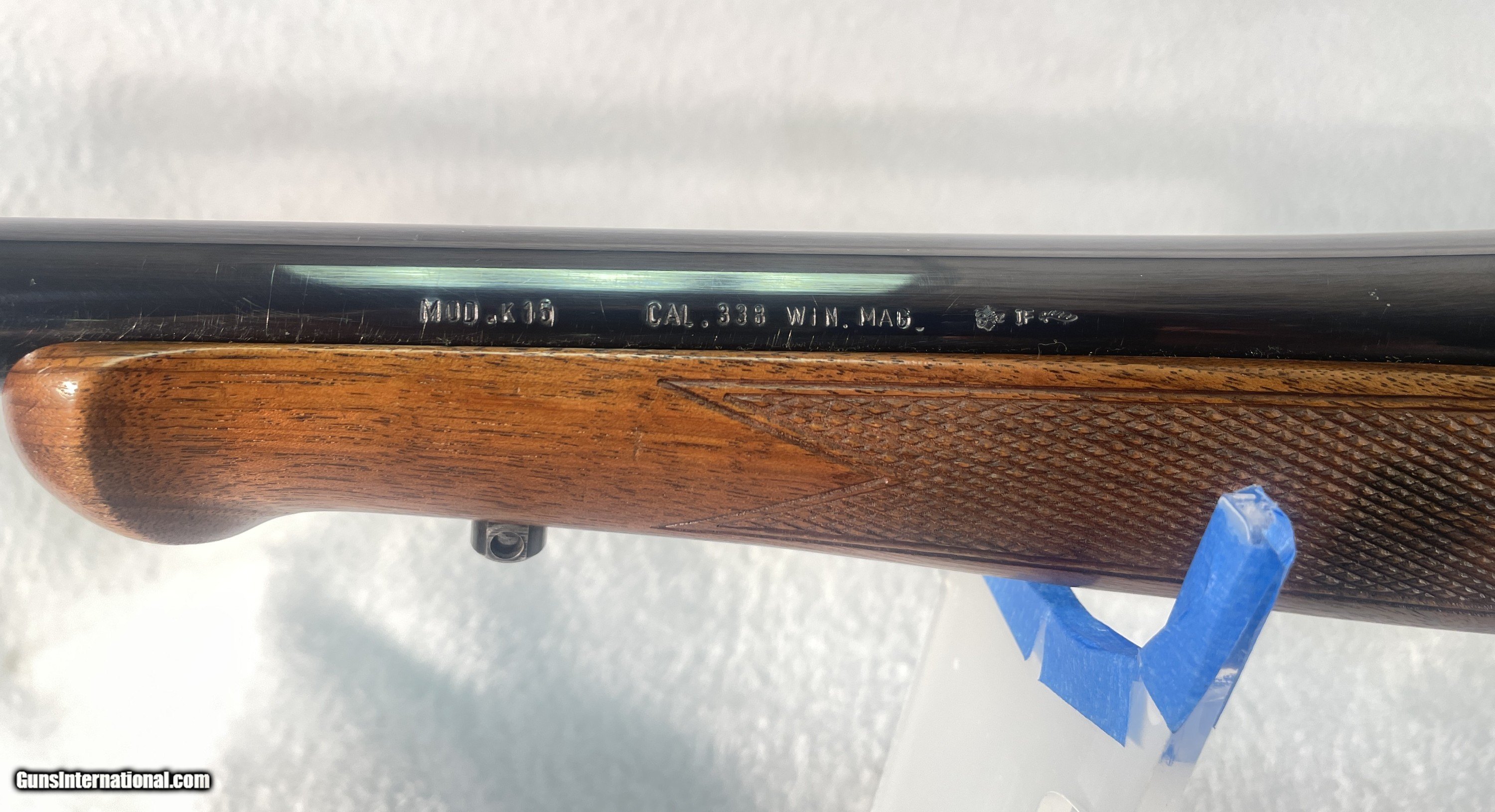Description: A C&R FFL cannot be used to transfer this firearm. I'm new to Guns International. If you'd like to know more about me and read feedback from years of favorable trades with my clients, you can search for me on GB as Pottsbk. Kleinguenther K-15 improved bolt action rifle. 338 Winchester Magnum caliber. Serial number 899927 which dates to 1985. 23” barrel with an patented Kleingunther muzzle brake. The brake tames muzzle jump and recoil to the equivalent of a 30-06 recoil. Very effective brake design. This Improved K-15 model rifle includes the brake, nicer wood than a standard K-15, a 338 wm case head inletted into the stock, Schnabel stock forend, and a detachable box magazine. Built on a commercial small ring Mauser action by Voere in Germany, and finished by Kleingunther in TX. Factory letter can be provided upon request. Scope bases and 1" rings are included. Weight 8 lb 7 oz. LOP 13 13/16" from the trigger to the recoil pad. Trigger pull is adjustable and is set now at 2 lb 13 oz. The stock finish and bluing is in excellent condition. Shipping costs include packaging, FFL transfer on my end, USPS shipping the rifle in the lower 48 states, and full insurance. Shipping to Alaska is a few bucks more. Sales are only to the USA 50 states with the exception of no sales to: California, Hawaii, District of Columbia. No International sales. DO NOT OFFER TO PURCHASE THIS IF YOU LIVE IN ONE OF THE STATES THAT I LIST ABOVE WHERE I CANNOT SHIP. Sales price: $2,195 Shipping: $80 Rifle Caliber: .338 Winchester Magnum Manufacturer: Kleinguenther Model: K-15 Imp Serial Number: 899927 Barrel Length: 23 Bore Info: Very Good Chambers: Excellent Condition: Excellent Metal Condition: Excellent Wood Condition: Excellent Bore Condition: Very Good Action: Bolt Butt Pad: Rubber LOP: 13 13/16 Finish: Satin Weight: 8lb 7oz Sights: scope bases and 1" rings Manufacture Date: 1985 Case: gun sock provided Optic: none provided Price: $2,195.00 Shipping: $80.00 Buy Now Contact Seller |