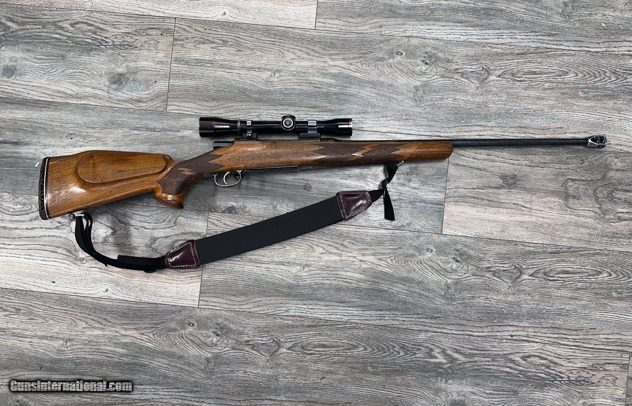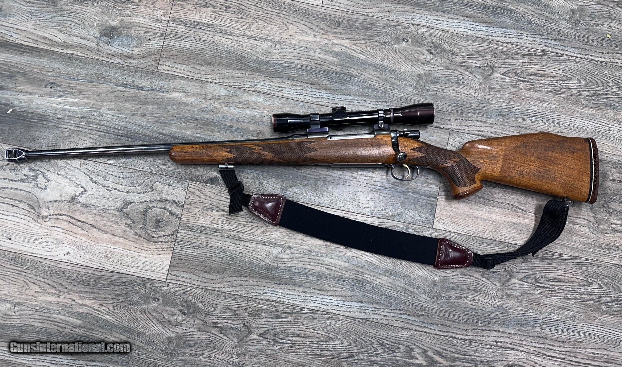 Description: Guns Listing ID: 482767 Left handed .270 bolt action rifle 26” barrel with a bright excellent bore. The barreled action retains about 95% original blue, the loss is due to some even fading with muzzle and high edge wear. The bolt body remains mostly bright with some light operational wear. The checkered walnut Monte Carlo stock is very fine and is the reddish-russet tone seen on some of these early rifles, with overall very light craquelure in the finish. The rifle of course features the custom muzzle break tip and grip cap. The rifle is sighted with a Leupold Mountaineer 4x scope. The Mathieu Arms Co. marking is on the right of the receiver from Bud Mathieu who provided these true left-hand actions to Weatherby between 1955 in 1959, an estimated 185 or fewer were made, making this a scarce opportunity for the dedicated Weatherby collector. SOLD Manufacturer: MATHIEU ARMS CO Model: Saturn Modified Condition: Used - Non-Certified Barrels: 26 Gauge Info: .270 WIN Finish: blued |