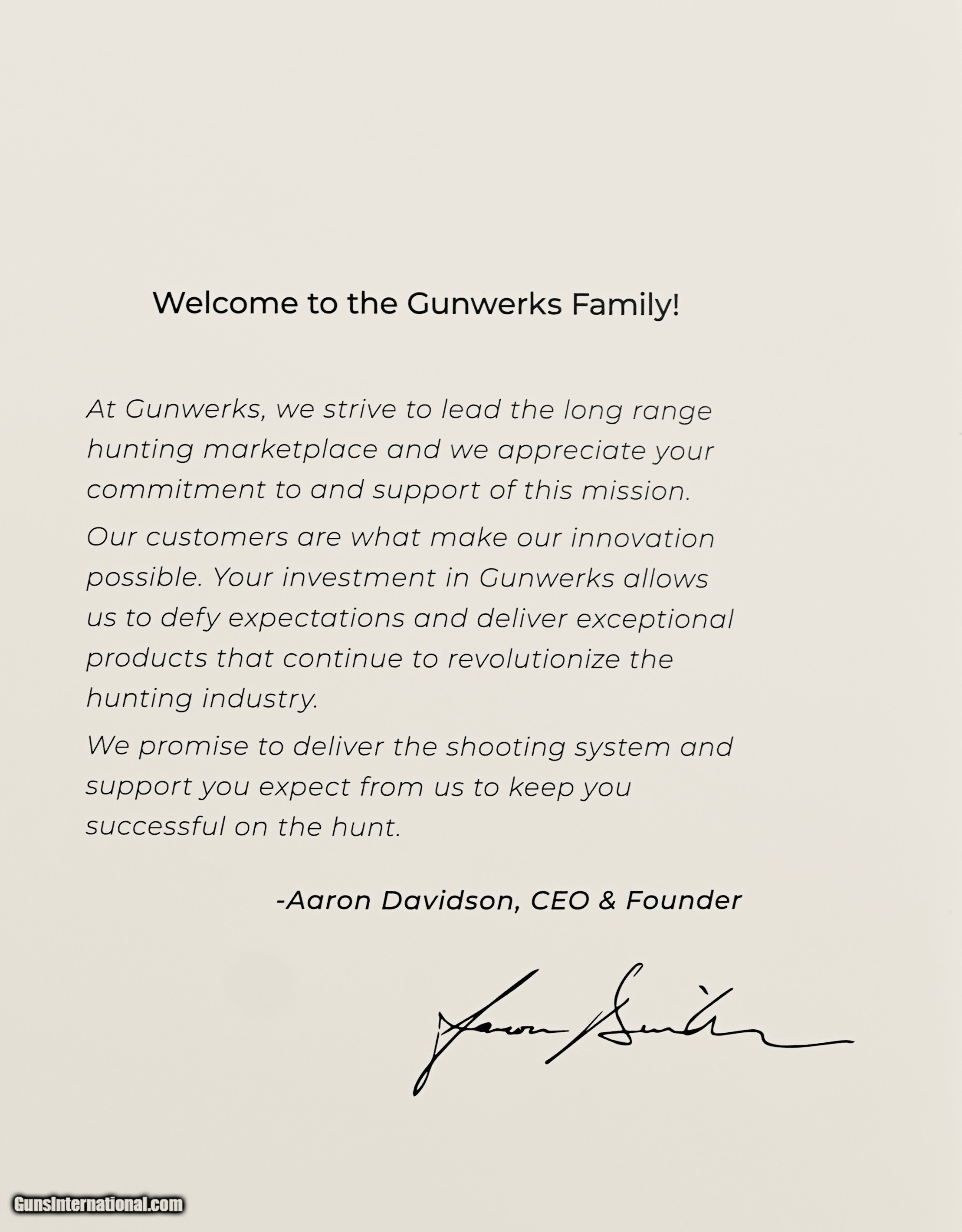 JD OUTFITTERS ALSO HAS ADDITIONAL GUNWERKS PRODUCTS, SUCH AS AMMUNITION, CUSTOM CUT ROLLER HARD CASE, LASER RANGEFINDING BINOCULARS, SUPPRESSORS, RANGE FINDERS, TRIPODS, AND OTHER ITEMS. THE GUNWERKS PRODUCTS ARE IN STOCK AND AVAILABLE TO COMPLETE YOUR SHOOTING SYSTEM. CONTACT JD OUTFITTERS AT 405/822.1564 FOR THESE OFFERINGS.