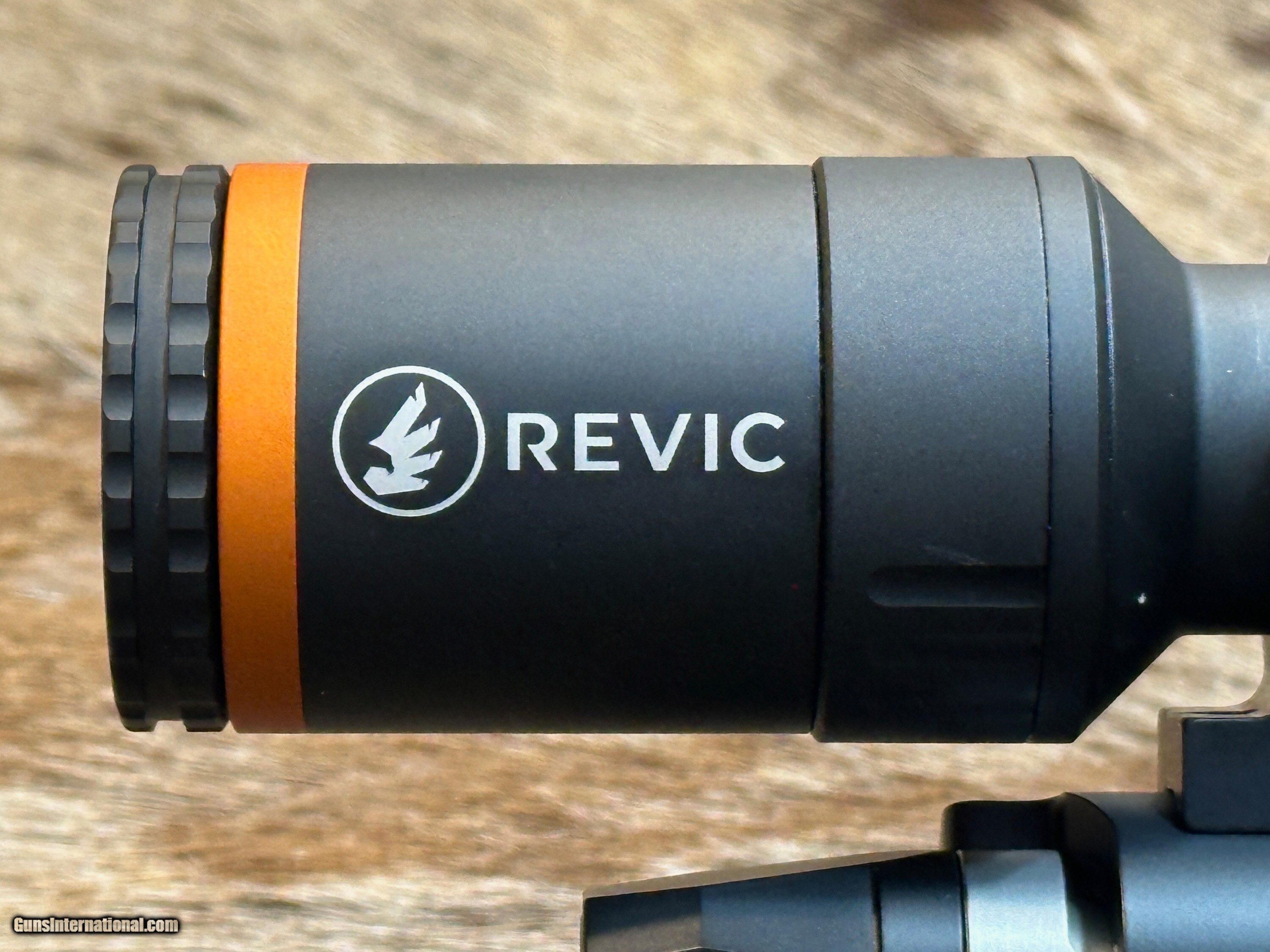 - OPTIC: Revic Acura RS25i First Focal Plane 5-25x50 scope with 30mm tube and Revic Illuminated RH2 MOA reticle, capped windage, side parallax, 25MOA per revolution CUSTOM CUT turret for this specific rifle and ammo with zero stop