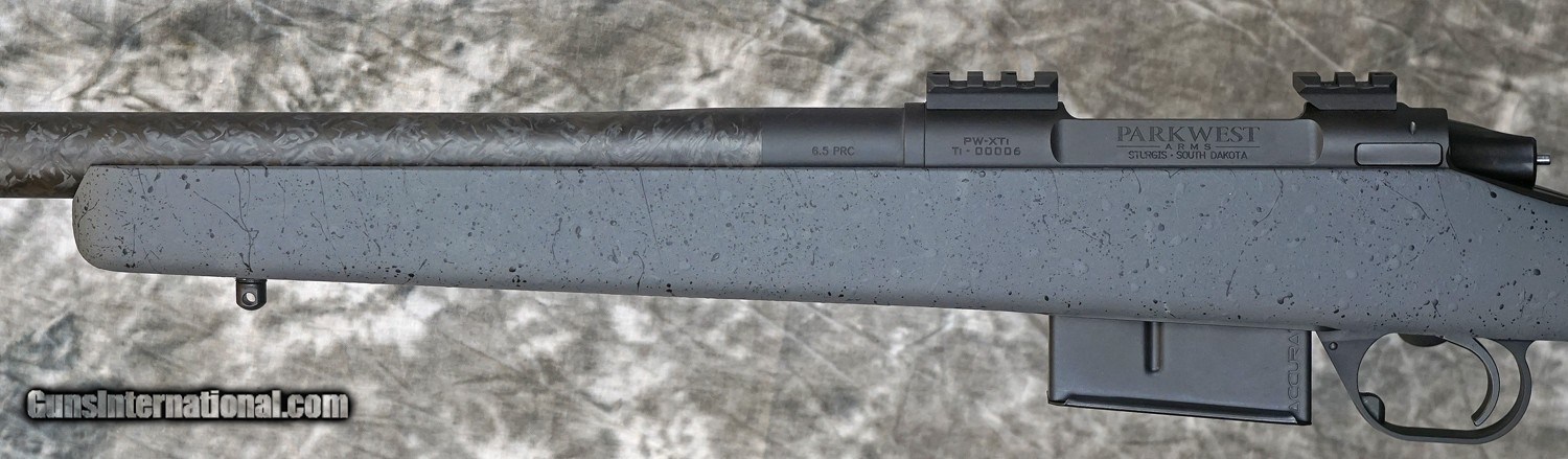 Description: New Parkwest Arms XTi Bolt Action Rifle chambered in 6.5 PRC with 25" Proof Research carbon fiber wrapped barrel, threaded for muzzle brake. Factory Titanium action with removable box magazine, Timney 510V2 hunting trigger, AG composite sportsman stock. Factory SKB case, additional magazines. Call 626-633-1002 for pricing. SOLD Rifle Caliber: 6.5 PRC |