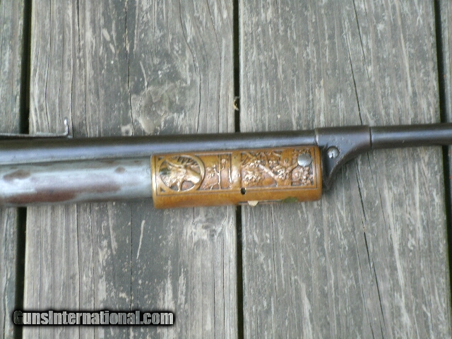 Description: This is a very tough to find Standard Arms Model M chambered for the 30 Remington cartridge. This is the pump only version of the model G. The bore shows good rifling and the rifle appears to function good but must be checked by a gunsmith before firing. The stock is very solid but the repair has what looks like nails instead of screws installed. SOLD Curio/Relic: Yes |
