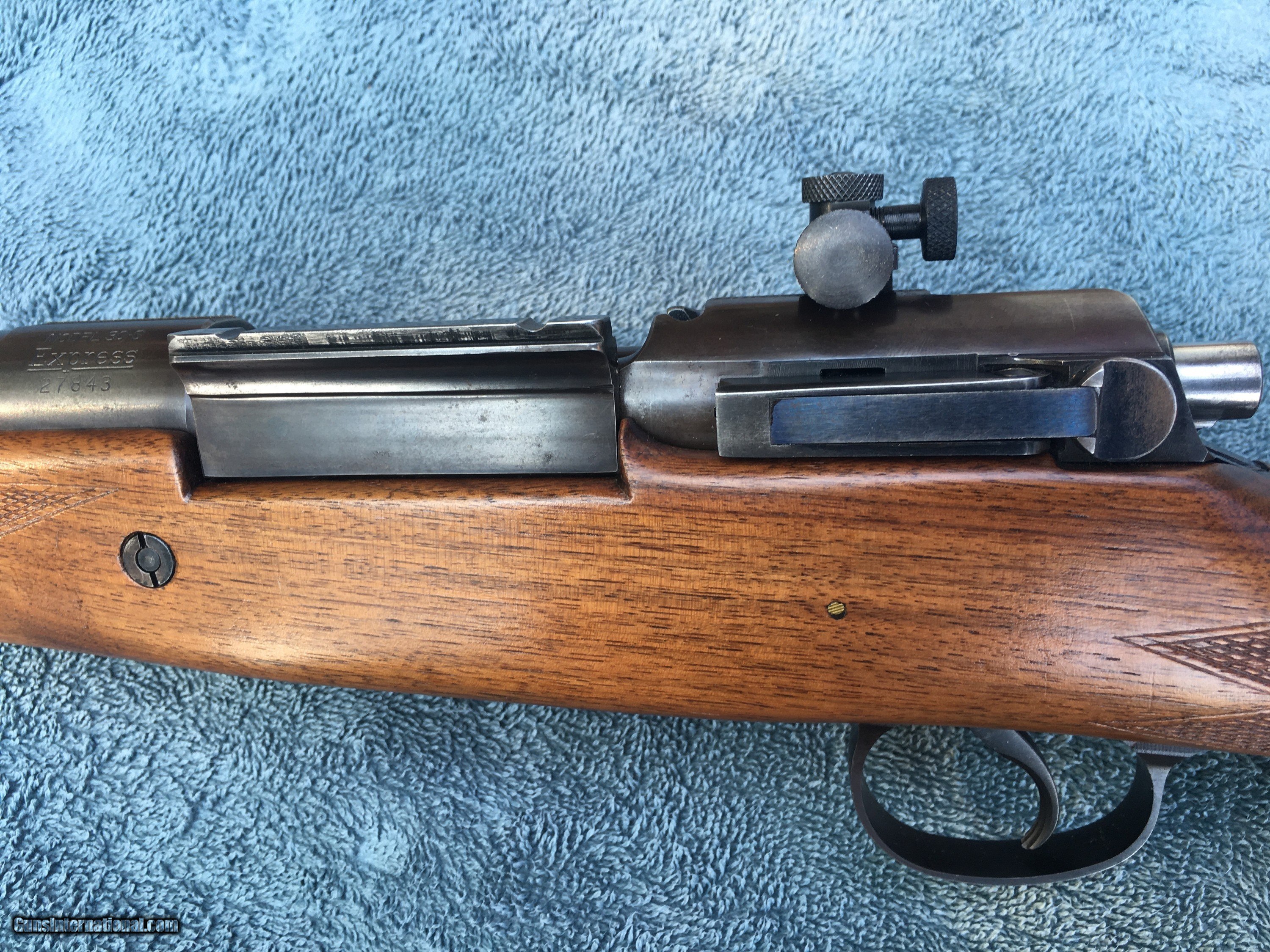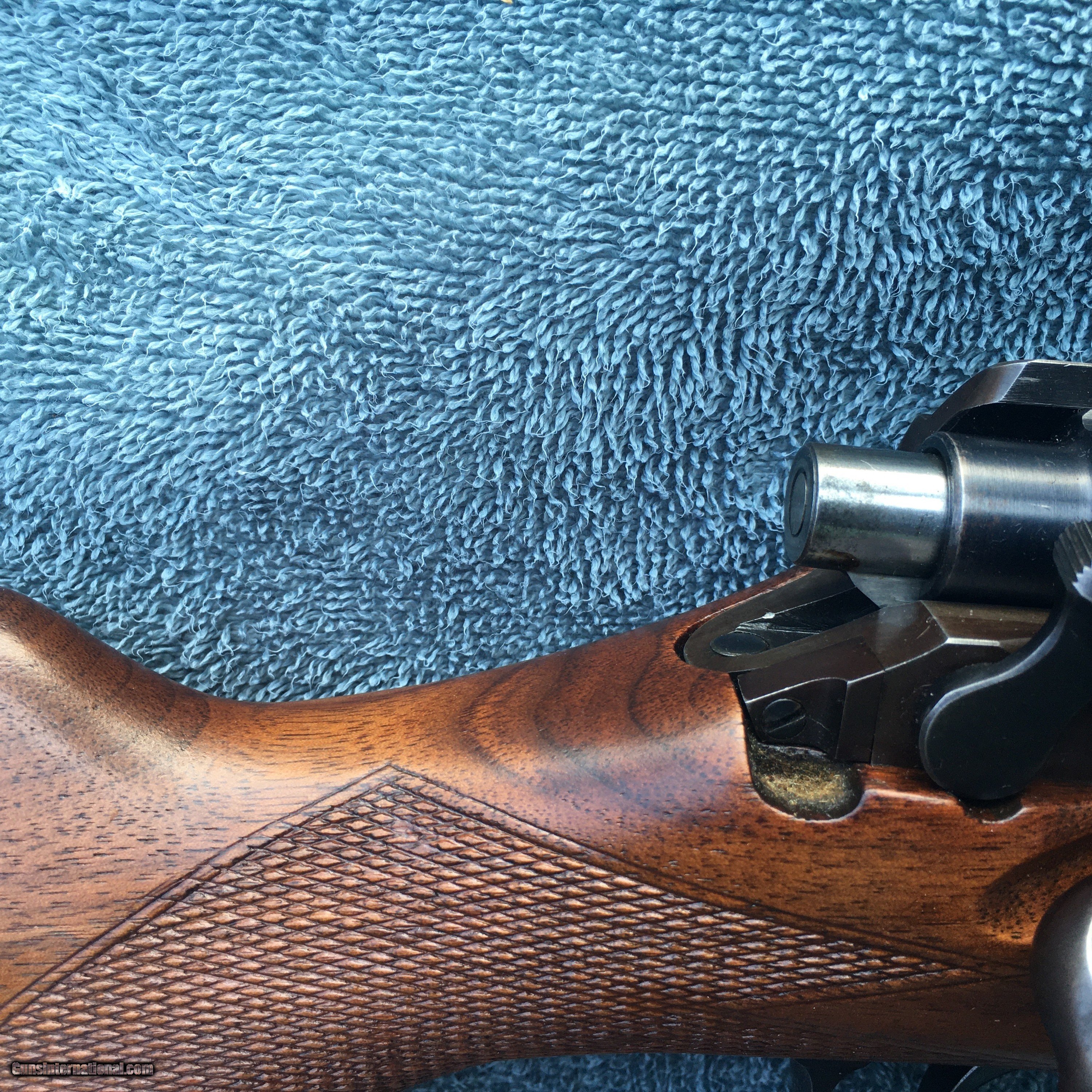 Description: SOLD TO JOE IN ALASKA. Model 30-S Express,Lyman peep site with super fine adjustments and period correct Griffin and Howe quick mount scope base with Lyman 2.5 power scope. The scope has many handleing marks and could use a good cleaning has clear optics. The gun is a pleasure flat shooting very low recoil 257 Roberts.I believe the gun had a pro finish at one time. 24" barel. A couple of slight handleing marks in the stock and some small dents in the checkering b ut overall a real gem. It is C&R eligible or will ship to your FFl. She will be over wrapped, shipped priority mail with full insurance for $55. Excellent bore. Comes with a full box of Super X. Pictures are real good. I do not collect sales tax . The gun is at a more than fair price point and with a box of Ammo. I have been a member of G.I. for 14 years. This is a nice gun. SOLD Curio/Relic: Yes Rifle Caliber: .257 Roberts Manufacturer: Remington Model: 30-s Express |