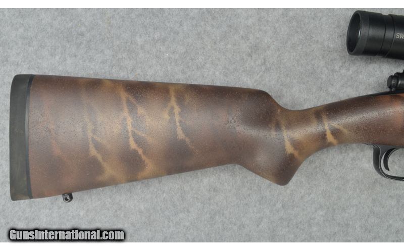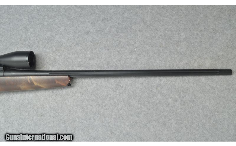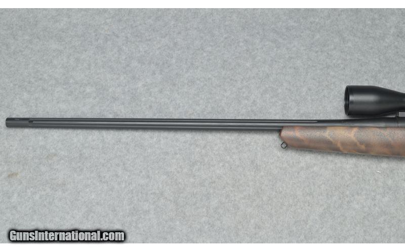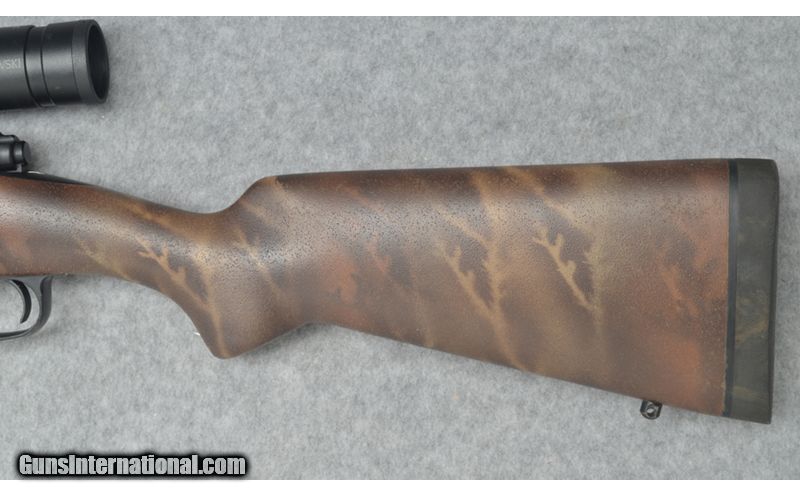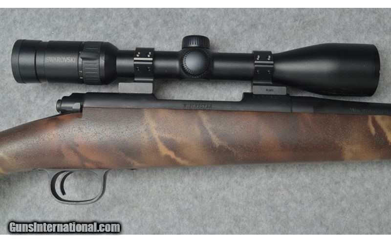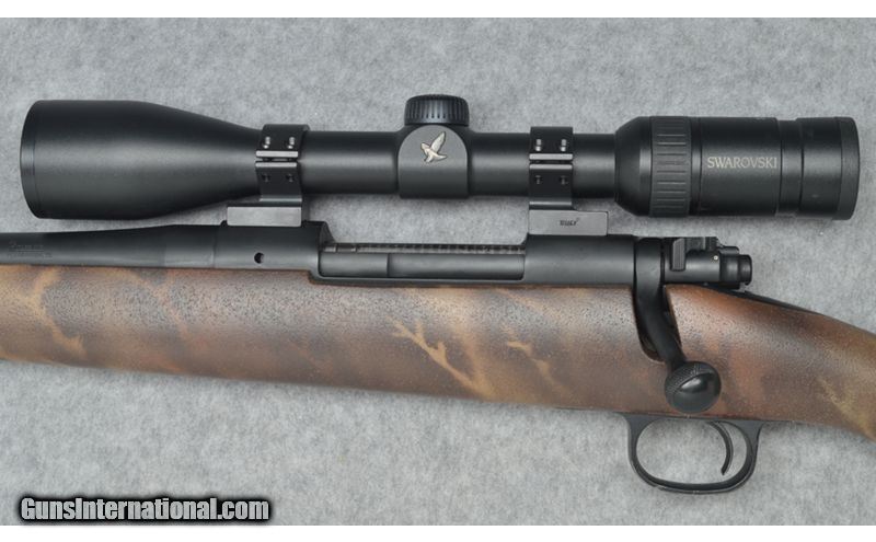 Description: This Rifles Inc. Lightweight 70 custom left hand rifle is in excellent condition with a Winchester 70 left hand blue printed bolt action repeating receiver and a 26 inch stainless steel Cerakote graphic black finish barrel that is ported. The bore on this rifle is clean and bright. There is one minor nix in the front of the front end but other than that there is not field marks on the stock or barrel. This is a very good looking rifle that is light weight and comes with a Swarovski Z3 3-10x42 scope. This would be a great rifle for big game hunting. 7mm Weatherby Magnum SOLD Chambers: Winchester 70 left hand blue printed bolt action repeating receiver. Metal Condition: Excellent. Wood Condition: Excellent. Barrels: 26 inch stainless steel barrel with a graphic black Cerakote finish and is ported. Triggers: Single graphic black Cerakote finish trigger. Stock Dimensions: 13 3/4 inch LOP. Fore End: Matching fore end with sling studs and a brown camo finish. Butt Pad: Black Decelerator butt pad. Sights: Swarovski Z3 3-10x42 Item Location: Sun Prairie, WI |