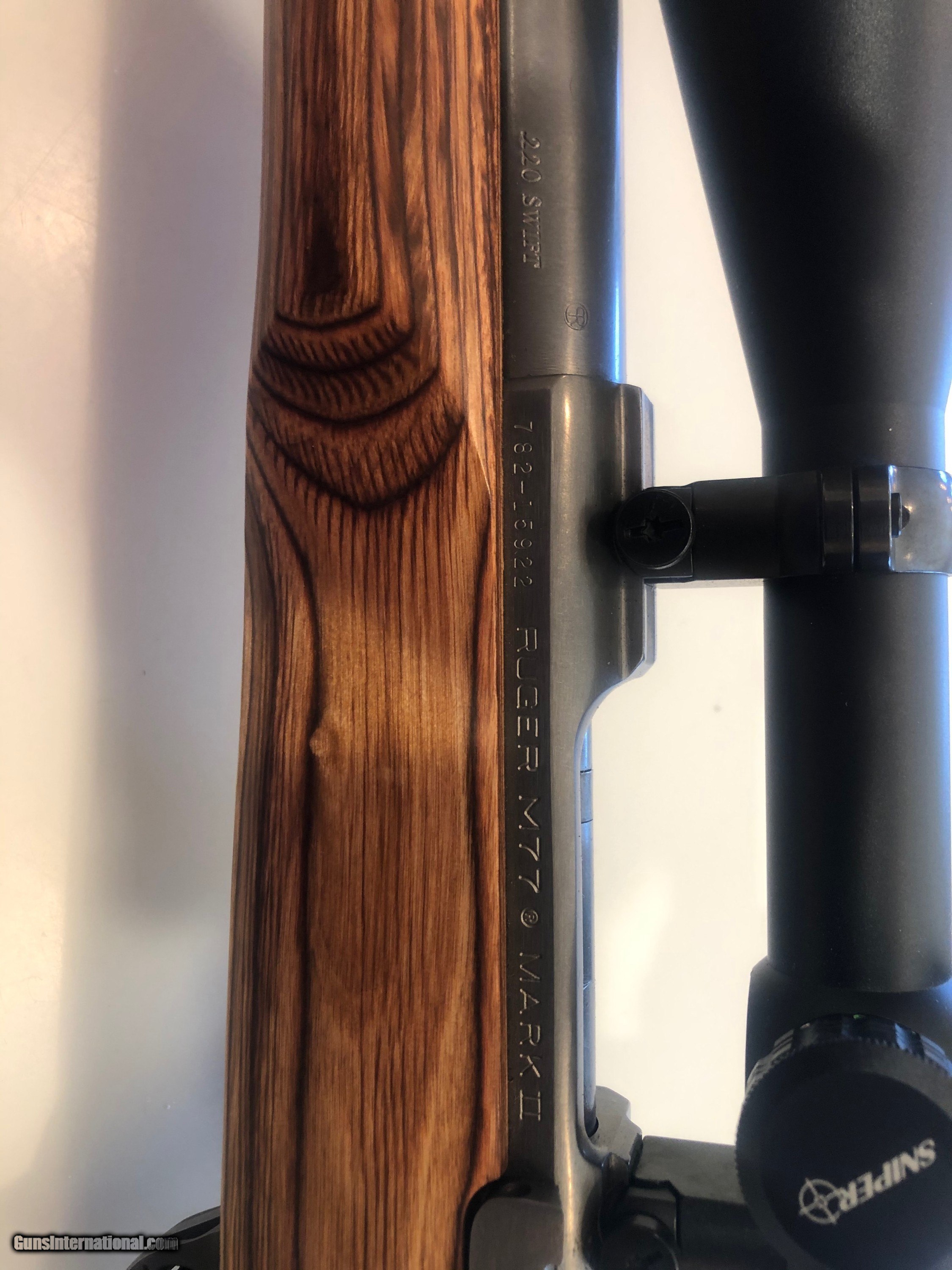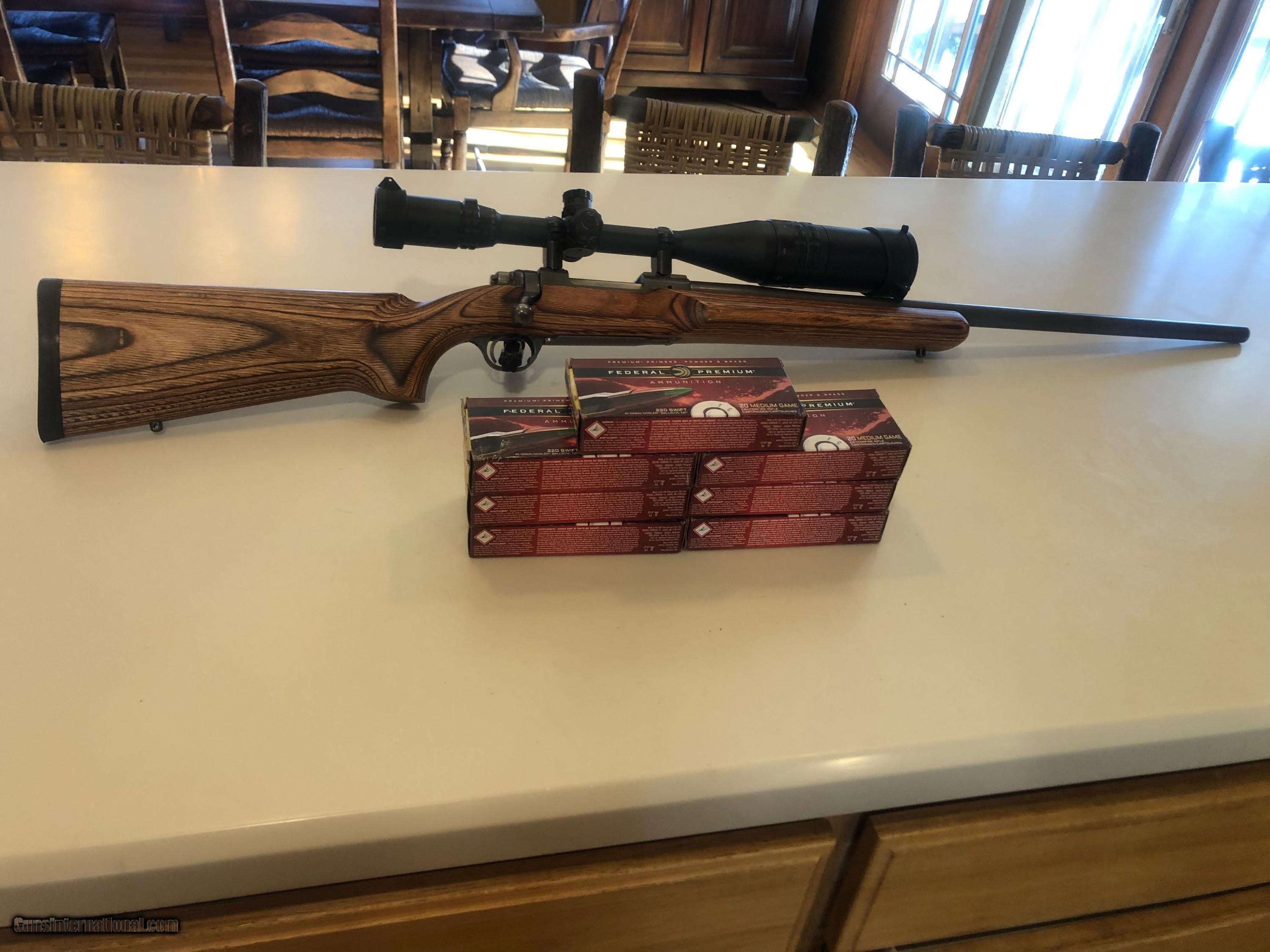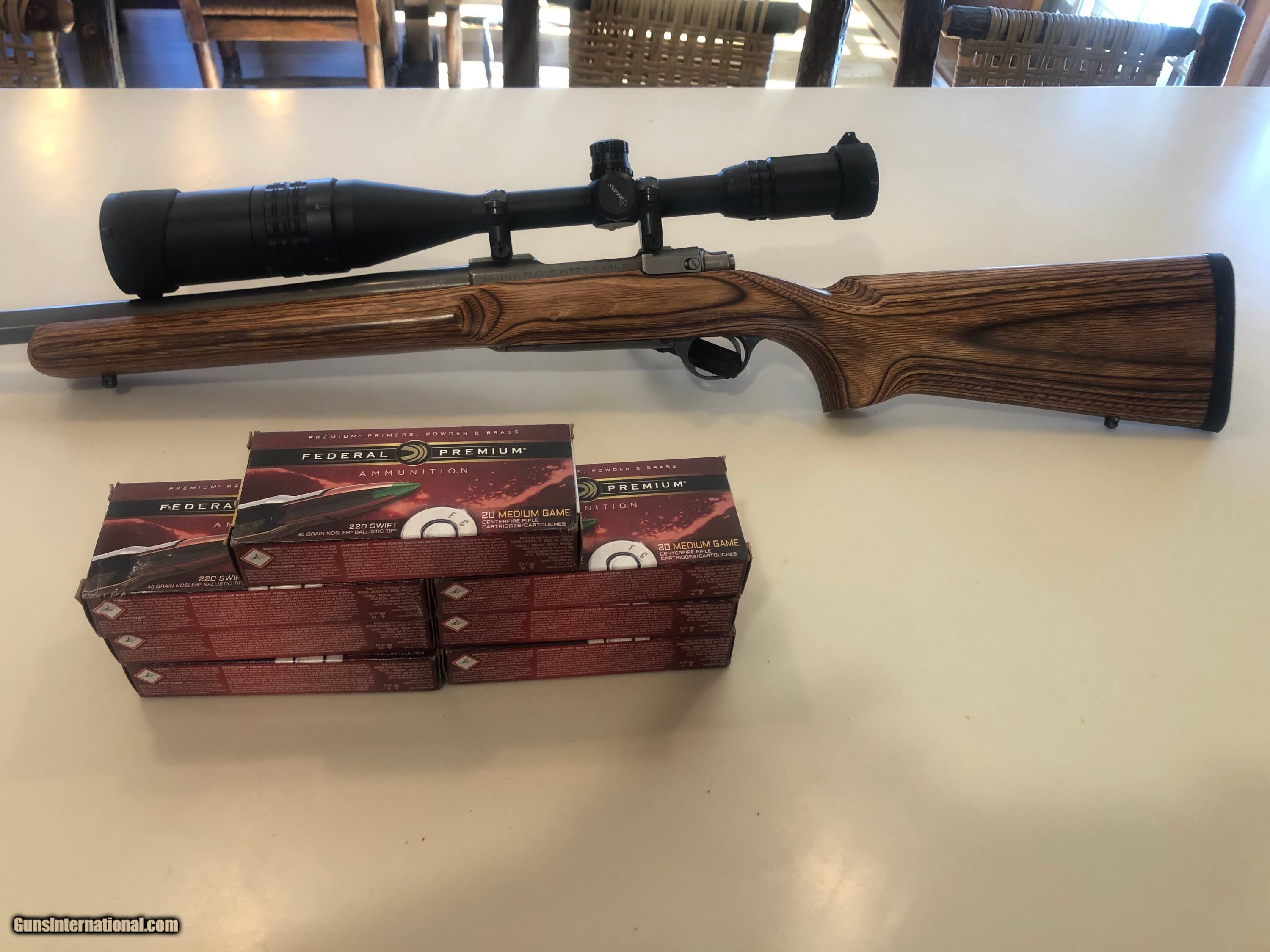 Description: Gun is in like new condition tiny scratch above trigger guard you have to look to find it. heavy target barrel laminated stock. 6x24 scope , comes with 61/2 boxs of ammo. SOLD Rifle Caliber: .220 Swift |