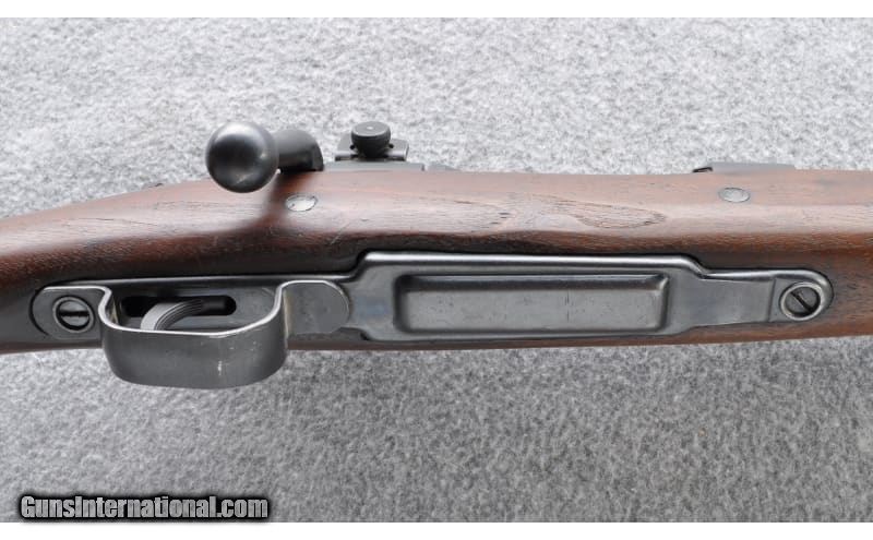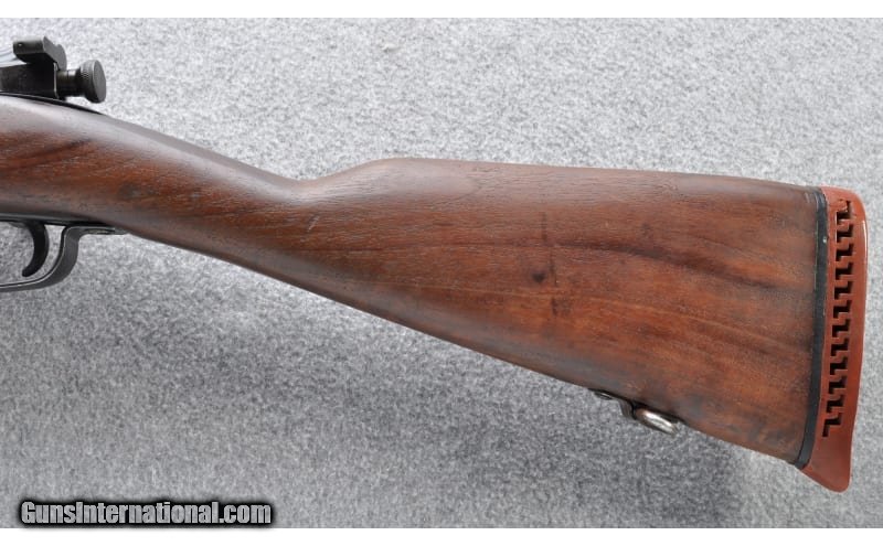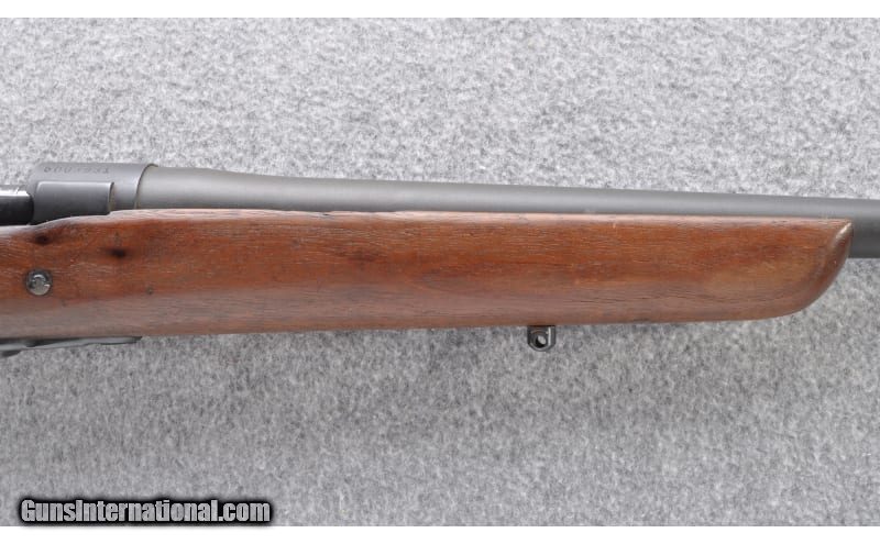 Description: The Santa Fe 1903 A3 rifles were assembled post WWII in the 50s from surplus GI parts, except for the receiver which was investment cast. The receivers earned a bad reputation for failures during firing even factory ammunition. However, there are still shooters who field these rifles using reduced loads. It would be prudent to have a Gunsmith check this rifle over or replace the receiver with an original Remington receiver. .30-06 Springfield SOLD Chambers: .30-06 Springfield in a five round box magazine Metal Condition: "Good, showing an even tone Parkerization with a bit of edge wear Wood Condition: "Fair, sporterized military stock with scattered stains, scratches and marks Bore Condition: Bright two groove bore Barrels: 24" Remington RA 5-44 (May 1944) two groove bore. Triggers: Two stage military Stock Dimensions: 13 1/4" LOP Fore End: Plain walnut with sling stud Butt Pad: J. C. Higgins red vented rubber Weight: 7 Lbs. 6 Oz. Sights: "Pinned blade front, adjustable aperture rear Item Location: Grand Junction, CO |