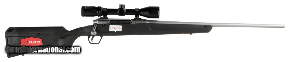 Description: Guns Listing ID: 461445 Savage Arms Axis bolt-action centerfire rifle blends affordability with unflinching performance and impressive accuracy. It sports a modern design that includes sleek contours, recoil pad vents and a textured, easy-to-control grip. It‚‚s drilled and tapped for scope mounts and offers silky-smooth bolt operation. The Axis II XP model offers amazing out-of-the-box performance. It‚‚s flush with features aimed at delivering tack-driving accuracy on every shot, including the user-adjustable AccuTrigger system, button-rifled barrel, silky smooth bolt action, detachable box magazine and thread-in barrel headspacing. This 25-06 Remington model features a stainless steel 22\" barrel, black synthetic stock, and a factory-mounted, bore-sighted 3-9x40mm scop SOLD Manufacturer: SAVAGE ARMS Model: Axis II Caliber Info: .25-06 REM Condition: new Barrels: 22" barrel |