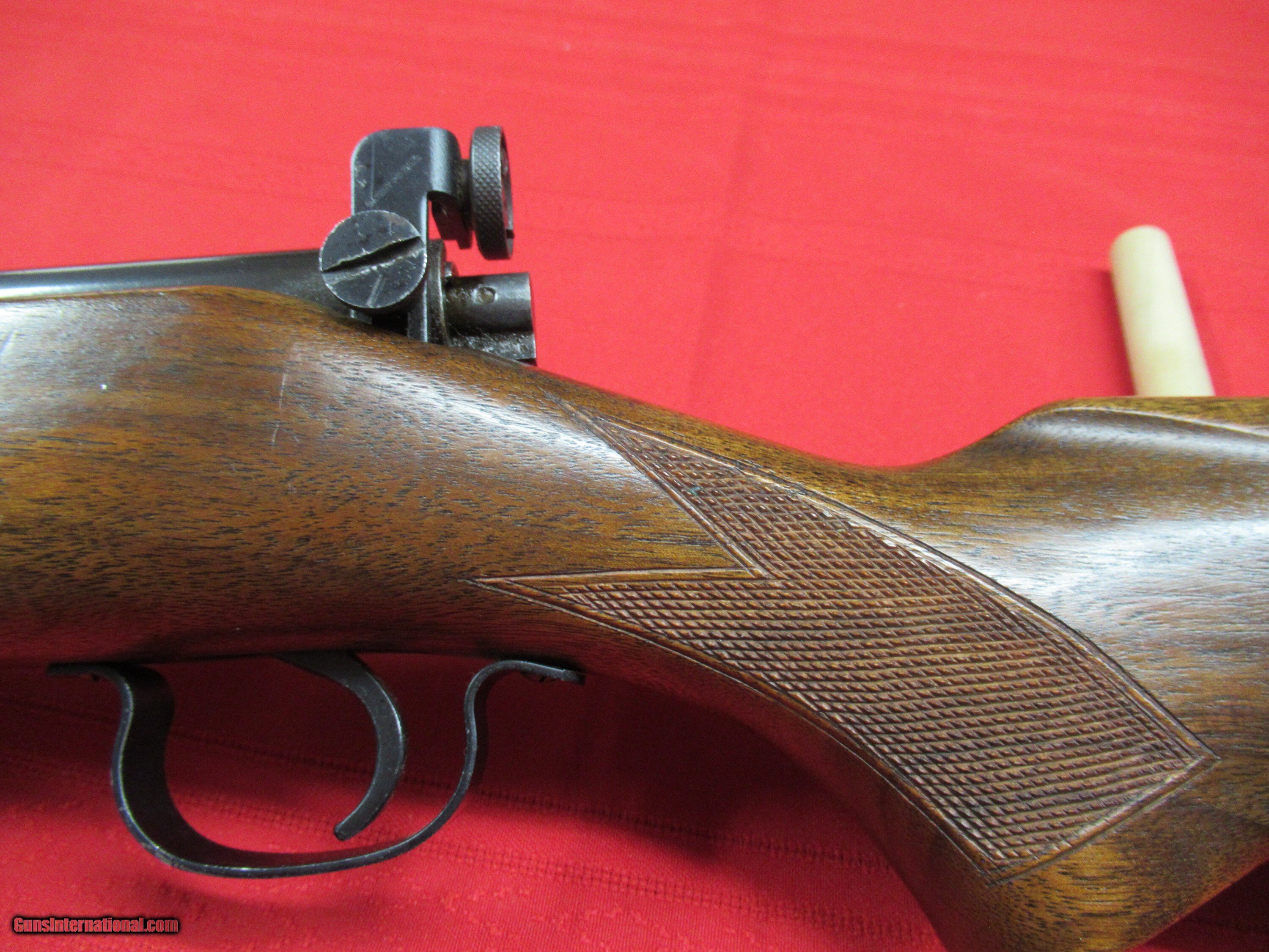 Description: Savage Model 5, no serial #, circa 1935 to pre-war. Features a checked walnut stock, blued 24" barrel with hooded front sight and tubular magazine which shoots short,long or long rifle interchangeably. Rear sights consists of a peep with several apertures and an adjustable rear sight. This rifle is a good shooter that has accounted for may squirrels and rabbits, I wish they still made rifles of this quality. Condition I would say is very good considering its age, no loss of bluing, wood has no cracks or scrapes, just minor indention from handling through the years. Condition I would rate very good. Please ask your questions before purchase. Will ship to your choice of FFL dealer, buyer pays postage. Sorry, no sales to CA., HI.,or N.Y. city. Price: $300 Manufacturer: Savage Model: Model 5 Serial Number: none Barrel Length: 24 Condition: very good Metal Condition: very good Wood Condition: very good Bore Condition: very good Weight: 6 lbs Sights: peep/folding v Item Location: Wyoming Price: $300.00 Buy Now Contact Seller |