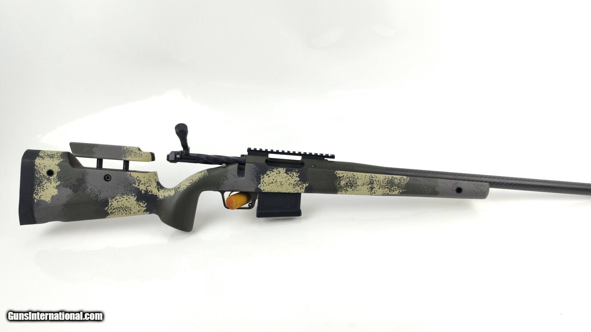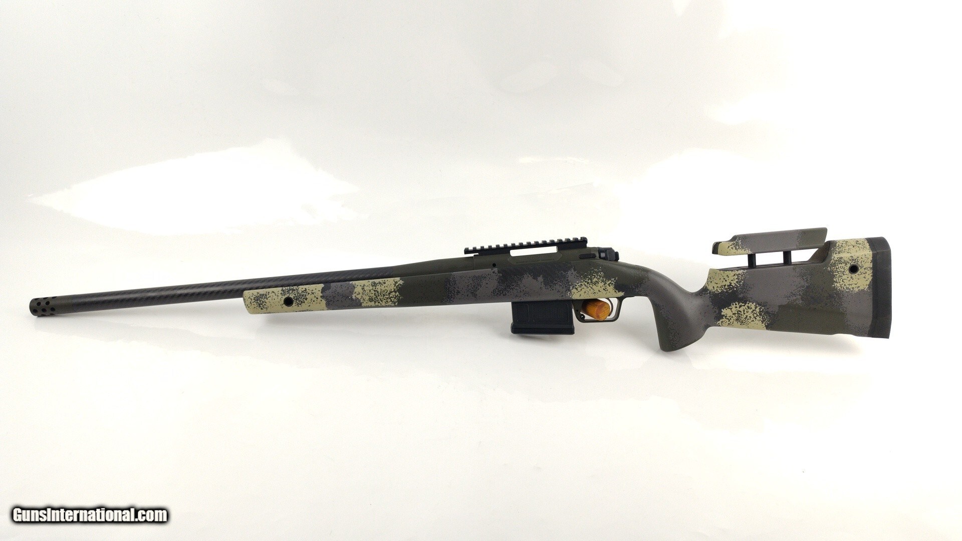 The foundation is the all-new Model 2020 action, precision-machined from stainless steel with EDM-cut raceways, dual cocking cams, and a tool-less takedown bolt. It is topped with a 22" carbon fiber-wrapped barrel from BSF, employing a tensioned, air-gapped design for superior cold-bore consistency and cooling. The entire barreled action wears a durable Mil-Spec Green Cerakote finish. The heart of the system is the AG Composites carbon fiber stock in Evergreen camo, featuring a 3-axis adjustable cheek comb, pillar bedding, five QD sling cups, and M-LOK slots. It is controlled by an exceptional TriggerTech adjustable trigger (2.5-5 lbs) with Frictionless Release Technology™.