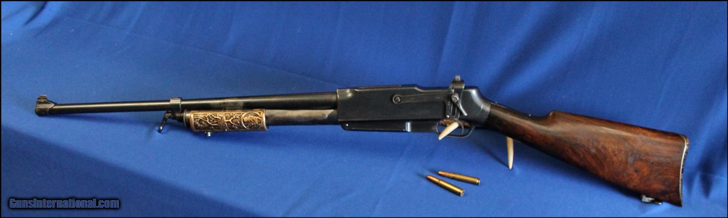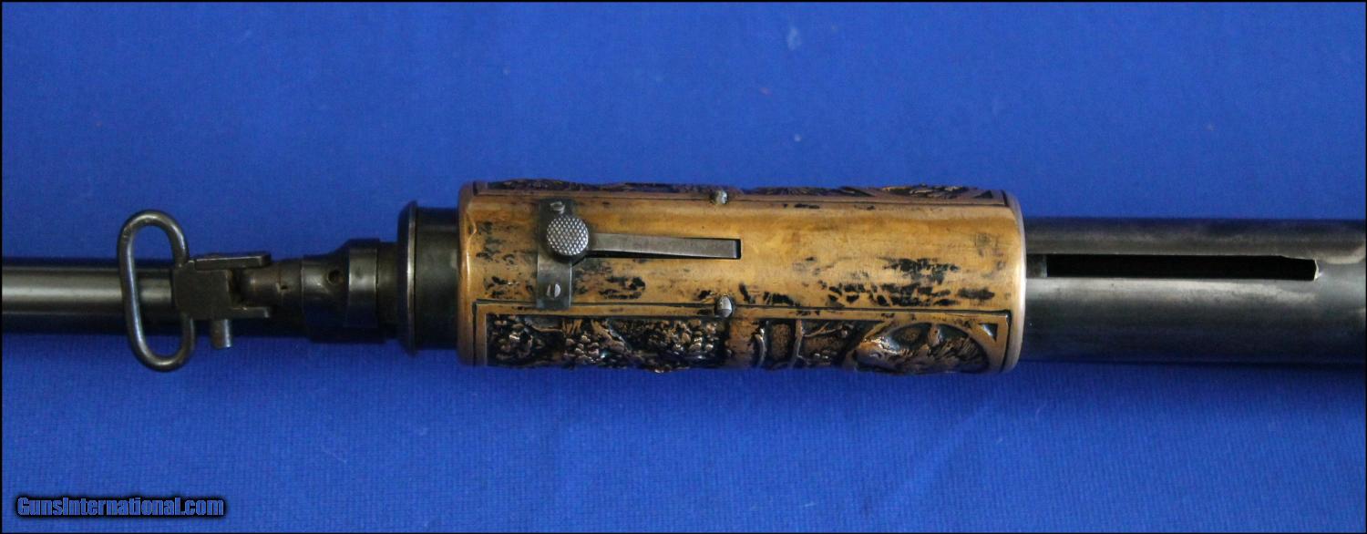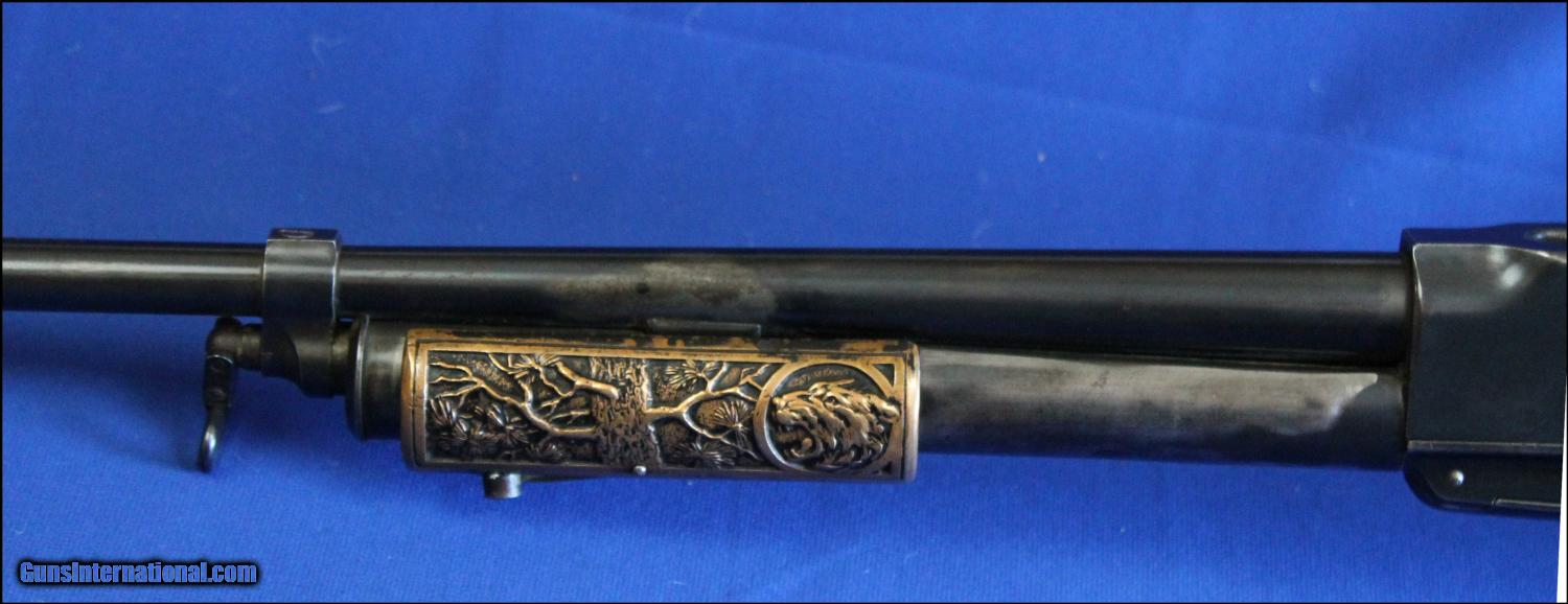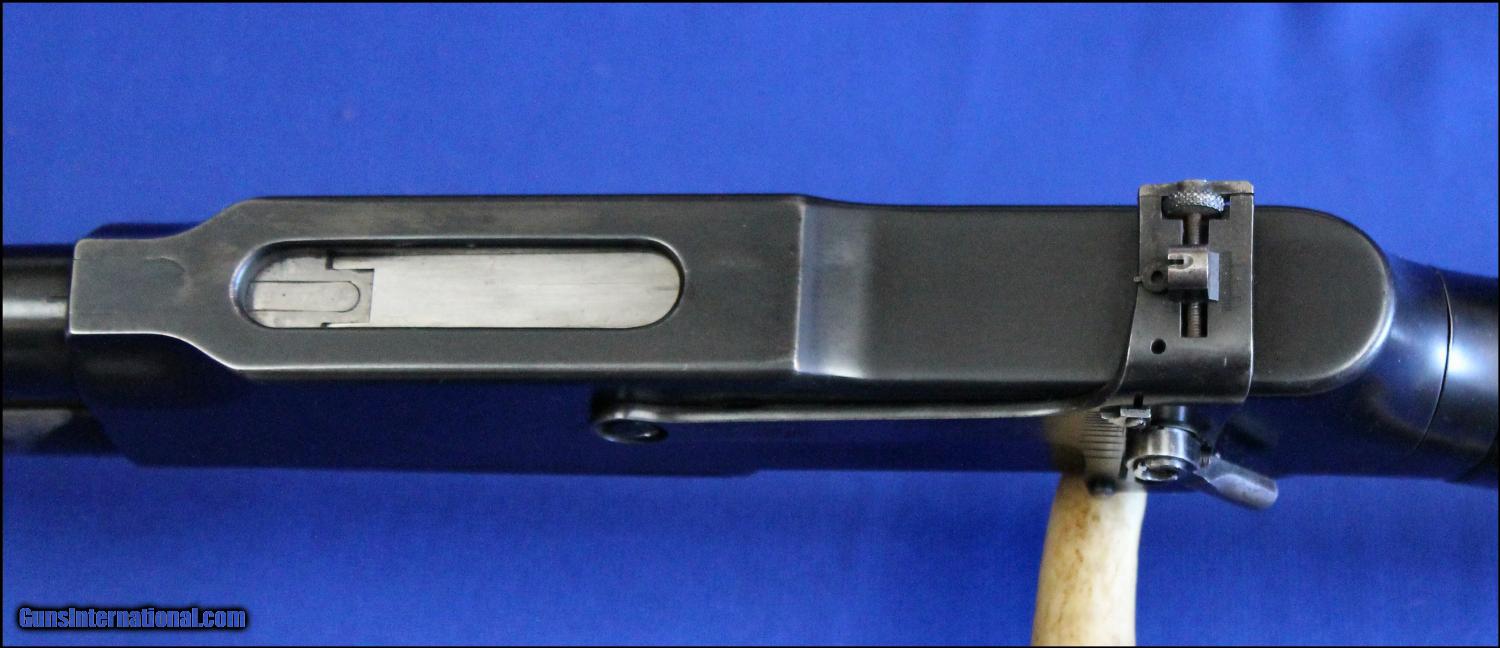 Description: Here is one of those rare early rifles that is as much a work of art as a firearm! Offered for your consideration is this fine Standard Arms pump action in the very rare carbine version. The 19 1/2 inch carbine length barrel is seldom seen, most of the rifles were equipped with 22 to 25 inch barrels. Made in 1914 this carbine is in 30 Remington caliber. A period Lyman model 38 receiver sight is mounted in place of the standard barrel mounted rear sight. The special order deluxe black walnut stock has some exceptionally attractive figure! It's a beautifully made carbine that was apparently too advanced to be accepted by the hunters at the turn of the last century! Insured shipping to your C&R or FFL $40.00 SOLD Curio/Relic: Yes |