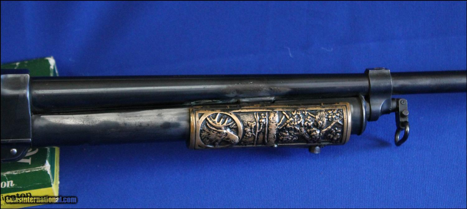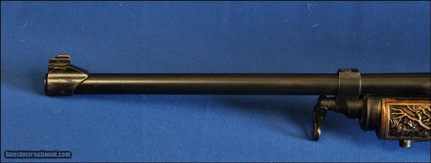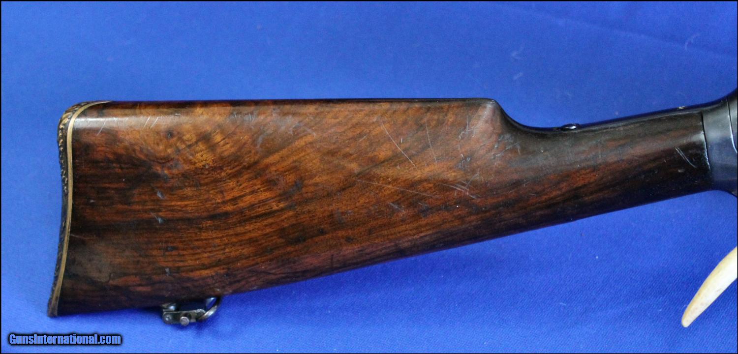 Description: Here is one of those rare early rifles that is as much a work of art as a firearm! Offered for your consideration is this fine Standard Arms pump action in the very rare carbine version. The 19 1/2 inch carbine length barrel is seldom seen, most of the rifles were equipped with 22 to 25 inch barrels. Made in 1914 this carbine is in 30 Remington caliber. A period Lyman model 38 receiver sight is mounted in place of the standard barrel mounted rear sight. The special order deluxe black walnut stock has some exceptionally attractive figure! It's a beautifully made carbine that was apparently too advanced to be accepted by the hunters at the turn of the last century! Insured shipping to your C&R or FFL $40.00 SOLD Curio/Relic: Yes |