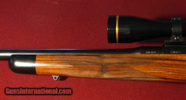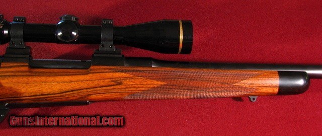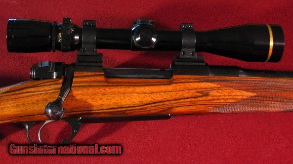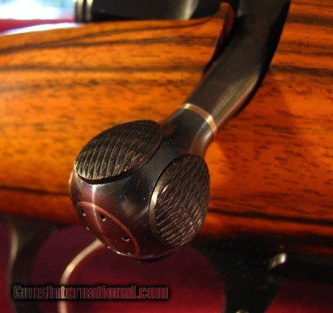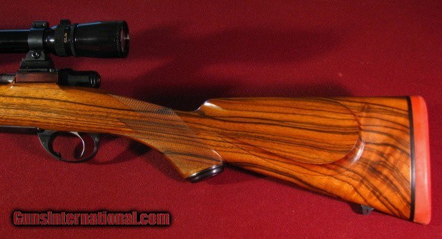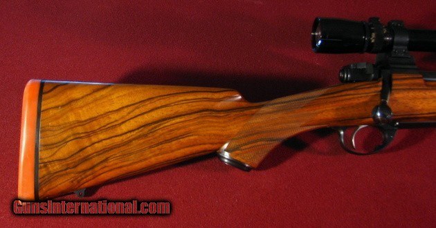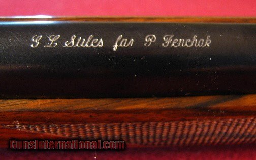 Description: Full custom Mauser in .280 Remington by a former ACGG member, the late Gary Stiles of Bethlehem, PA. This finely crafted firearm features a 23" Lilja sightless barrel with an as new bore. The Mauser 98 military action has been surface ground to remove all markings. The action features include custom square bridge style bases and Talley rings holding a Leupold VARI-X III 3.5x10 scope with duplex reticle. Additional custom features include a checkered bolt release, Kepplinger single set trigger, three position side swing safety, and Blackburn bottom metal with straddle floorplate and trigger bow release. The custom bolt handle has a knob that swivels with four raised checkered ebony inserts. This is machining at its finest. Stocked in an outstanding piece of English Walnut in the American Classic style with very darkly contrasting mineral streak lines. Shadow line cheekpiece, steel pistol grip cap, two screw inletted sling studs, point pattern checkering, and ebony forend tip. 13 3/8" LOP to a Silver's pad. Weighs in at 9lb 2oz as scoped. This is an extremely nice piece in a great caliber with meticulous stock inletting and many quality custom features. It was a bespoke build with the original owners name in small script on the barrel. It appears to be new from the maker and almost certainly has never been hunted. Mr. Stiles was a very talented craftsman. I have owned several of his guns and all of the very highest quality. In the custom rifle world it just doesn't get any better than this. SOLD |