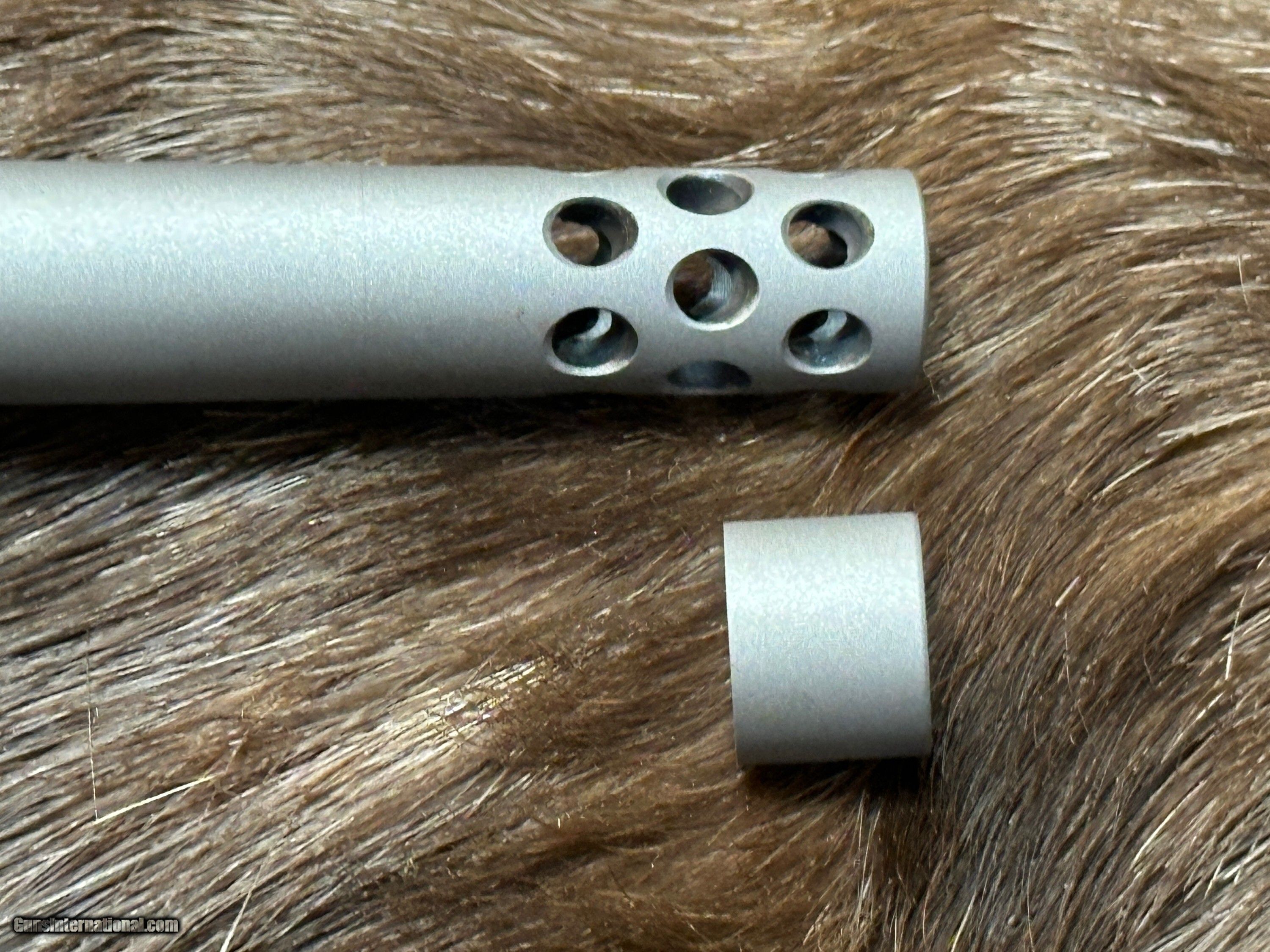 - Removeable Bansner & Co-designed 3 row muzzle brake, threaded 1/2x28. Comes with smooth thread cap.