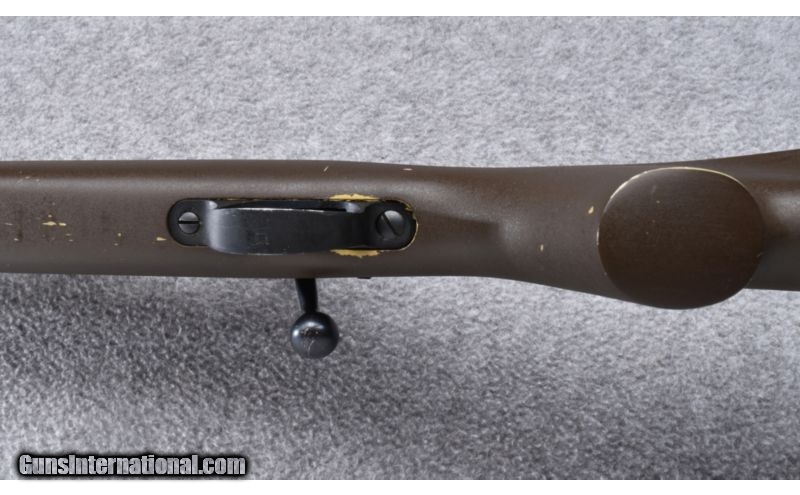 Description: Shows a bit of hunting wear with an excellent bore. Complete with rings and bases. SOLD Manufacturer: S/N 93-0XX Caliber Info: .338 Win. Mag. Metal Condition: Good Bore Condition: Excellent Barrels: 24 Triggers: Factory - Serrated Stock: Uncheckered Brown Synthetic Stock Dimensions: 13 1/2" LOP Fore End: Uncheckered Brown Synthetic Butt Pad: Black Vented Rubber Weight: 6 LB Sights: None - Rings & Mounts Included Item Location: Wheeling, WV |
