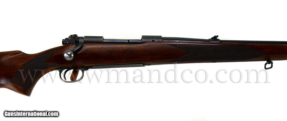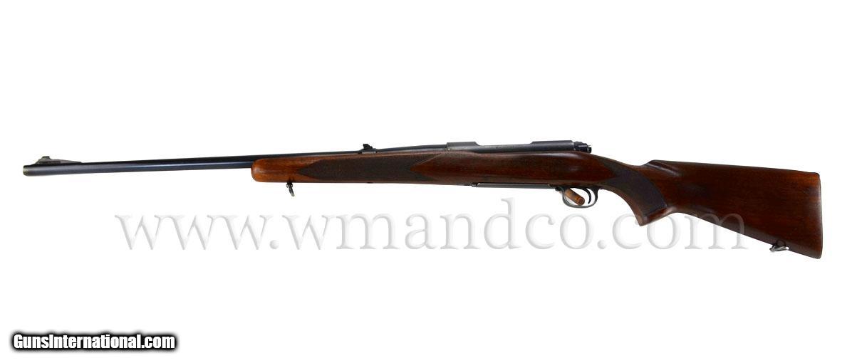 Description: Winchester Model 70 Pre 64 .270. This rifle is very nice with original factory finish that rates 85% overall. The action is clean with only light scope base halo in the blue, light blue on the edges of the floor plate and guard, bolt ball is light, blue is very near perfect on the barrel, factory flip up rear sight, hooded front, factory swivels. The stock is really clean with minor light handling marks, checkering and finish are very nice, factory butt plate has minor finish loss. 01856911 MSSS $1450.00 SOLD Manufacturer: Winchester Model: 70 Pre 64 |