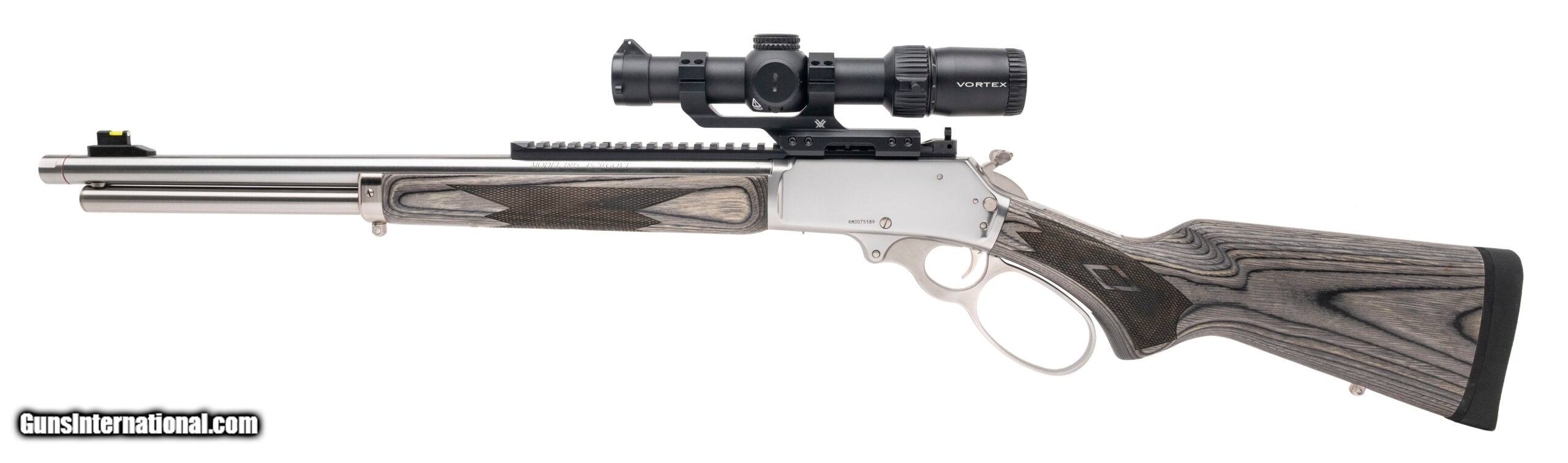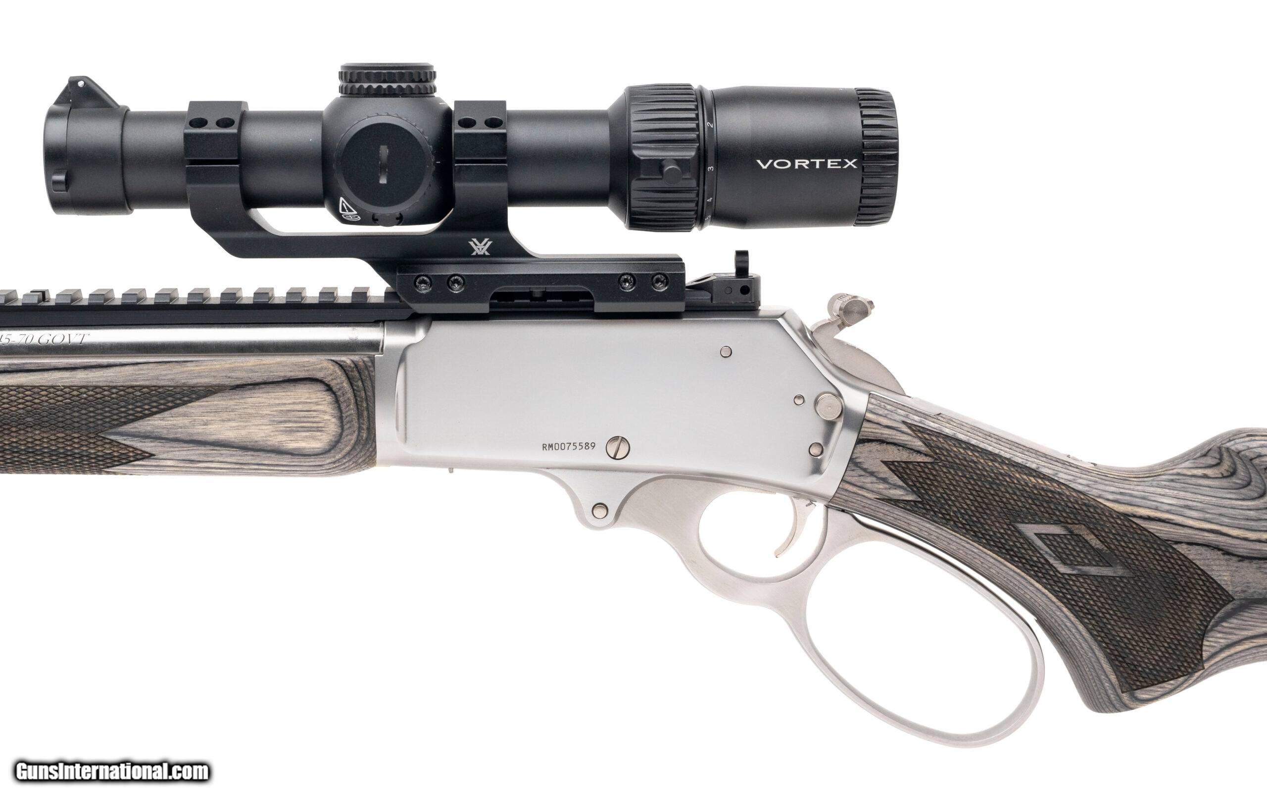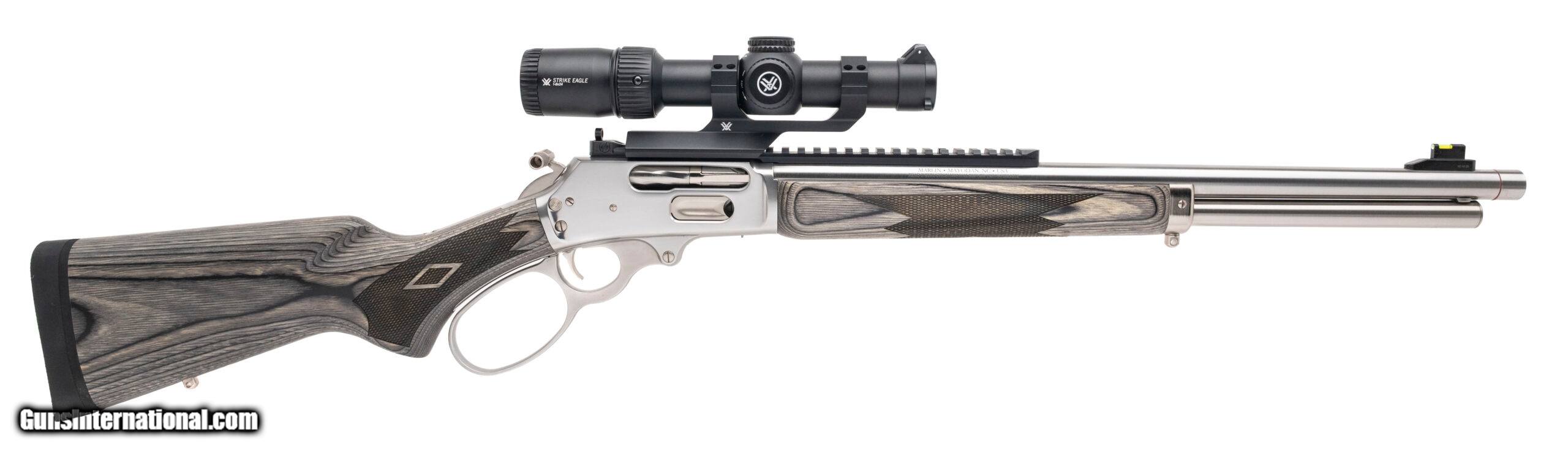 Description: "SN: RM0075589. Modern production, .45-70 GOVT. with a 19.1"" threaded barrel. Bore is excellent. Stainless steel lever-action rifle with a Vortex Strike Eagle 1-8x24 scope, fiber-optic front sight, large loop lever, and checkered laminate wood stock. Metal shows minor handling marks. Overall condition is near excellent. Price: $1,449.95 Contact Seller |