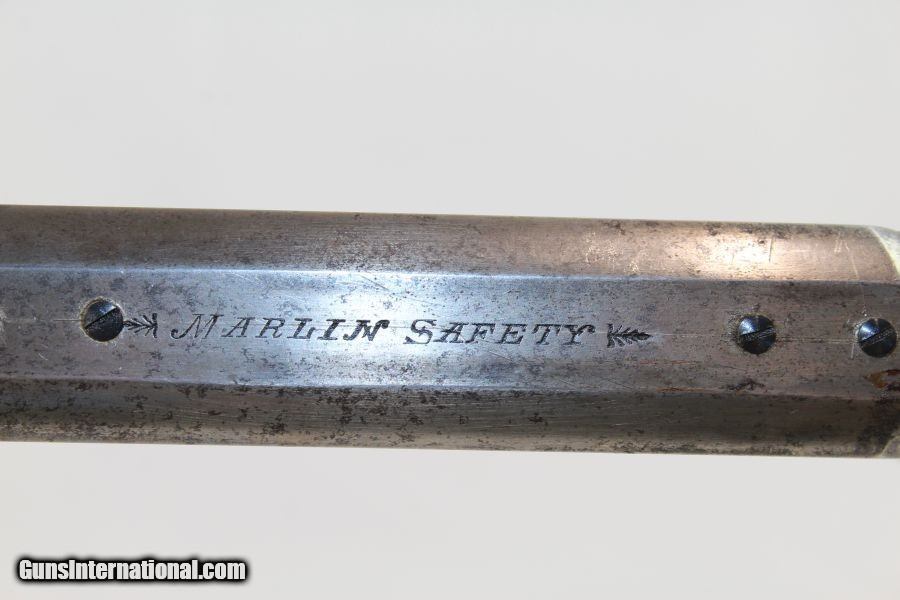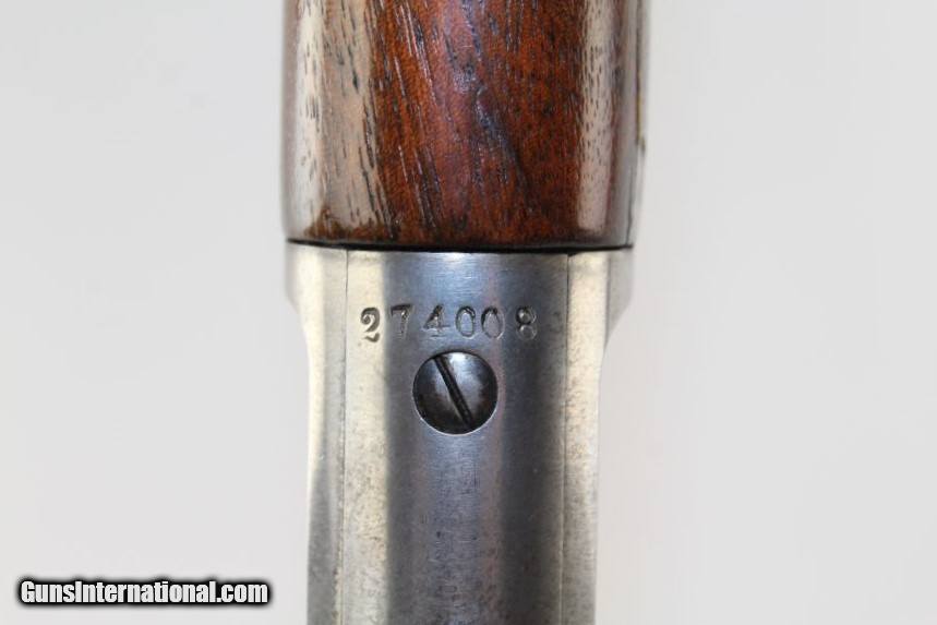 Description: c.1903 J.M. MARLIN 1893 Lever Action .30-30 Rifle Marlin’s First Smokeless Powder Rifle! Here we present a J.M. Marlin Model 1893 Rifle in .30-30 WCF, made circa 1903 in New Haven, Connecticut. Marlin was one of Winchester’s biggest competitors for the lever action market in the late-19th and into the 20th Century. The Model 1893 represents Marlin’s first smokeless powder lever action rifle. It features a solid top frame with side ejection and a smooth action. The barrel is a medium weight octagonal of 26 inches, chambered for the ubiquitous and venerable .30-30 WCF. This rifle is in fantastic shape and remains a classic! The overall condition is fine. The barrel retains 90% of the original blue finish. Case colors on the receiver and other iron parts have silvered with time. The markings are clear and legible. The stock is in great shape with the only real defect a long crack on the left side of the forearm. The crack is thin and has been repaired to be stable. The bore is in very good condition, clean with sharp rifling. The action is excellent and smooth. This firearm is classified as a Curio & Relic. Barrel is 26 inches. Caliber: .30-30 WCF Overall condition as seen in photos. Very Fast. Very Safe. FREE SHIPPING. Will need to be sent to your local FFL or C&R licensee. This firearm is classified as a Curio & Relic. Guaranteed AUTHENTIC & Includes CERTIFICATE OF AUTHENTICITY. ancestryguns $1200 #8175 SOLD Curio/Relic: Yes |