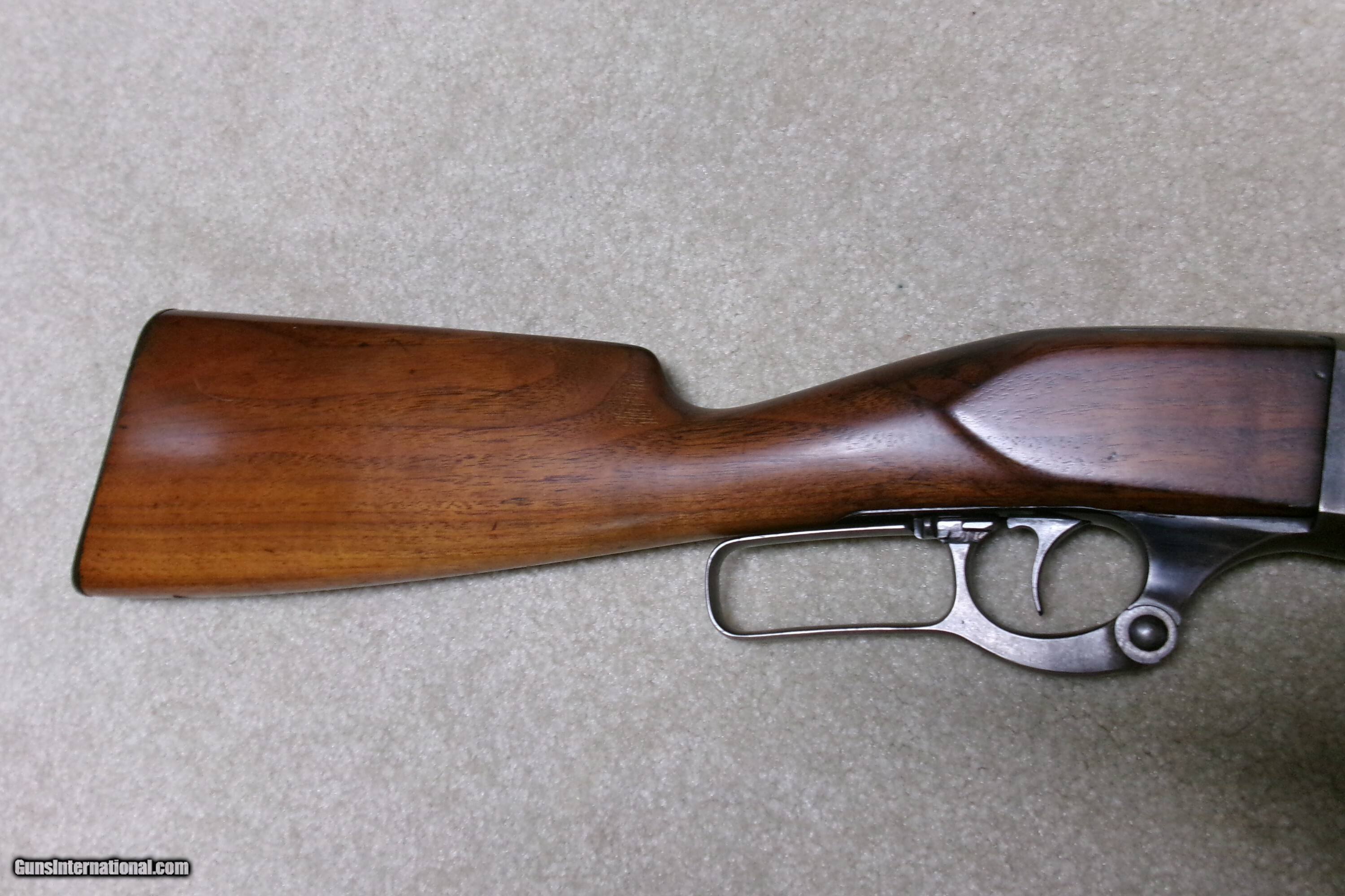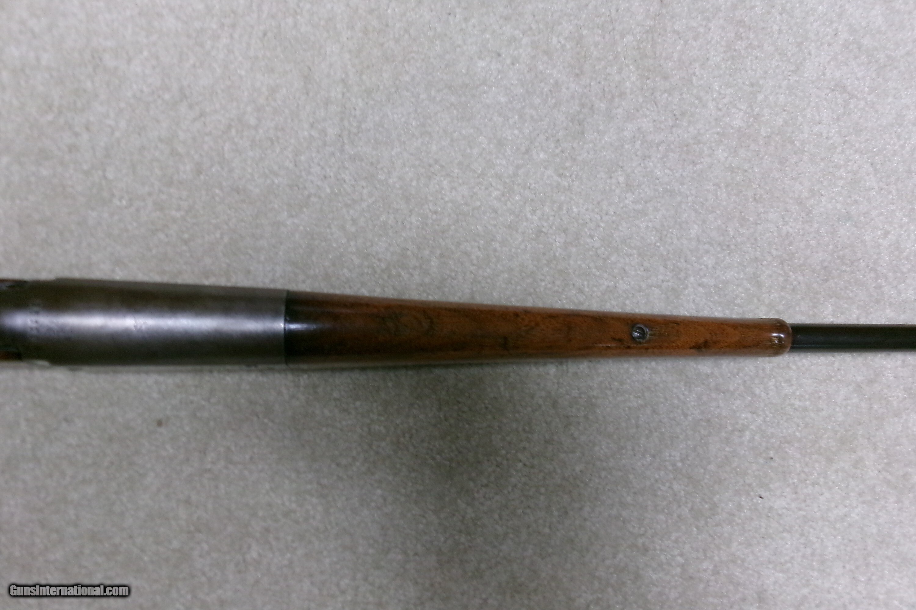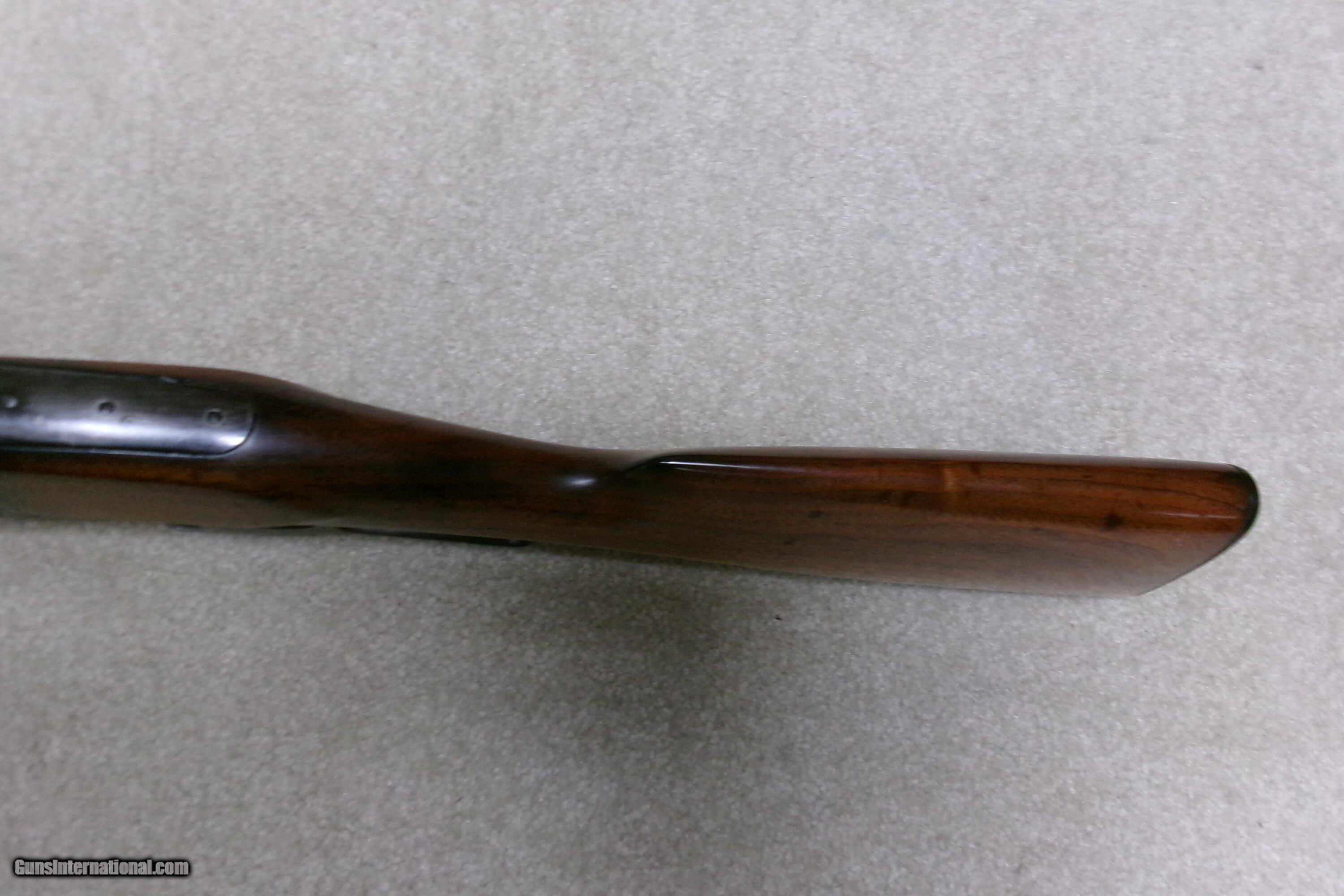 Description: EARLY TEXAS SHIPPED SAVAGE 1899 .25-35 FEATHERWEIGHT RIFLE. A call to the Cody Museum provided the info on this one: SAVAGE MODEL 1899- SERIAL NUMBER 95XXX; Caliber: 25/35; Barrel Type: Round; Featherweight; Date Accepted: November 27, 1908; Date Shipped: November 23, 1908 (I think they got these dates reversed); Sold to Walter Tips. (Call-in sheet from the Cody Museum included). Walter Tips was an arms dealer in Austin, Texas. A load of Colt Single Action Armies passed through his store. This is the first Savage 1899 I’ve even heard of going to him. No doubt, it was meant as a 20” saddle rifle, like the more popular Winchester carbines. This example shows good aged blue on the barrel. The rear sight is a later Savage buckhorn patent marked 1914 and has not only elevation adjustments but also windage adjustments. The front sight is a ramped Marble ivory bead and was probably put on when the rear sight was mounted. The receiver is mostly a dull gray/brown with some blue in the most protected area above the lever. The forearm is fine and the butt stock has the usual hairline cracks/replaced chip behind the upper tang. There is also an empty sling swivel hole in the butt stock- easily filled, left as is, or filled with a simple sling swivel. It retains the now-politically-incorrect Savage hard rubber butt plate with an Indian Chief embossed in the middle! (How times have changed!). The action is tight, the tab safety works correctly and the bore is a little worn and dark with one barely discernible shallow ring a couple inches from the muzzle. This rifle was shipped within two years of the turbulent Mexican Revolution of 1910-1920. A rare caliber and rare Texas destination shipped Savage Featherweight carbine! Curio/Relic: Yes Rifle Caliber: .25-35 Winchester Manufacturer: SAVAGE Model: 1899 FEATHERWEIGHT Serial Number: 95XXX Barrel Length: 20 Condition: VG Bore Condition: VG Price: $1,595.00 Contact Seller |