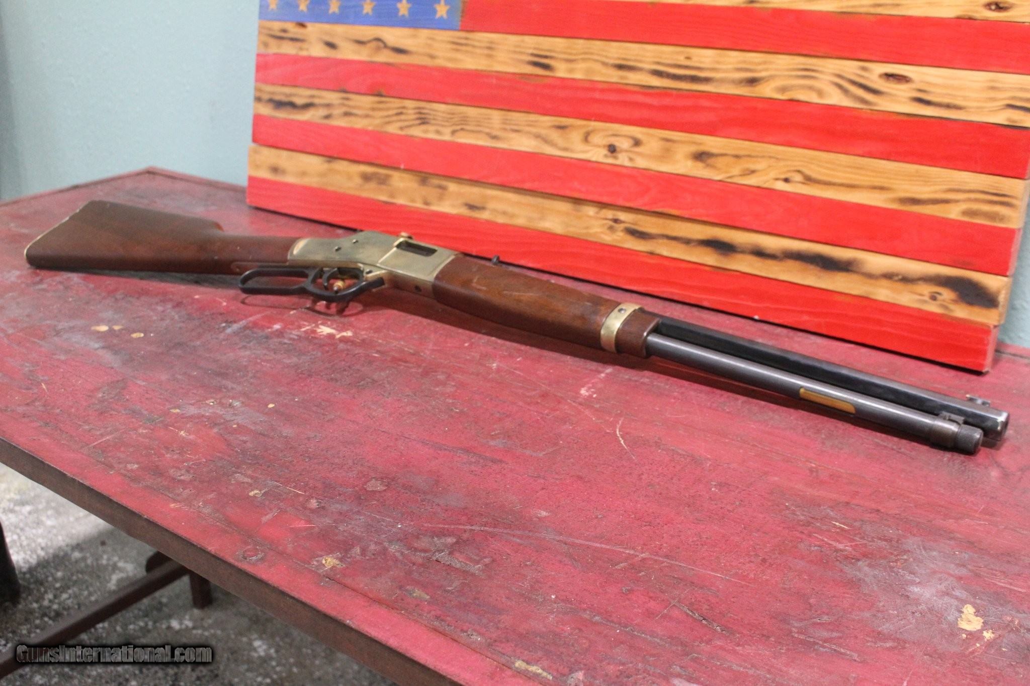 Description: Guns Listing ID: 619181 Made of genuine brass. Bright brass receiver, buttplate and barrel band. Straight grip American walnut stock. Fully adjustable Marble semi-buckhorn rear white diamond insert and brass beaded front sight. Side ejection. Octagon barrel with 1:38 twist. Manufacturer: HENRY Model: h006m Caliber Info: .38 SPECIAL/.357 MAGNUM Condition: Used - Non-Certified Barrels: 20" BARREL Action: LEVER ACTION Finish: BLACK GOLD Price: $949.99 Contact Seller |