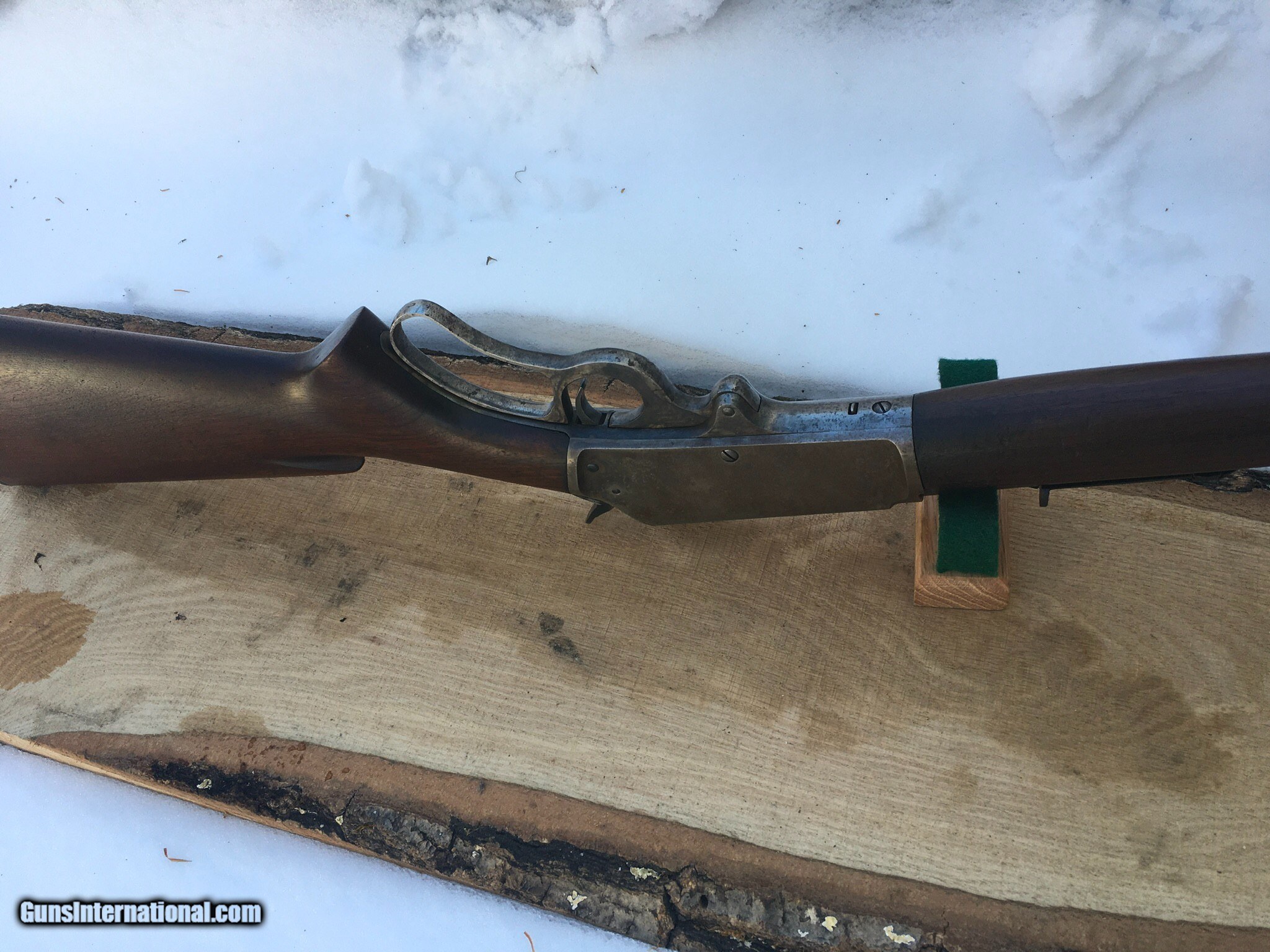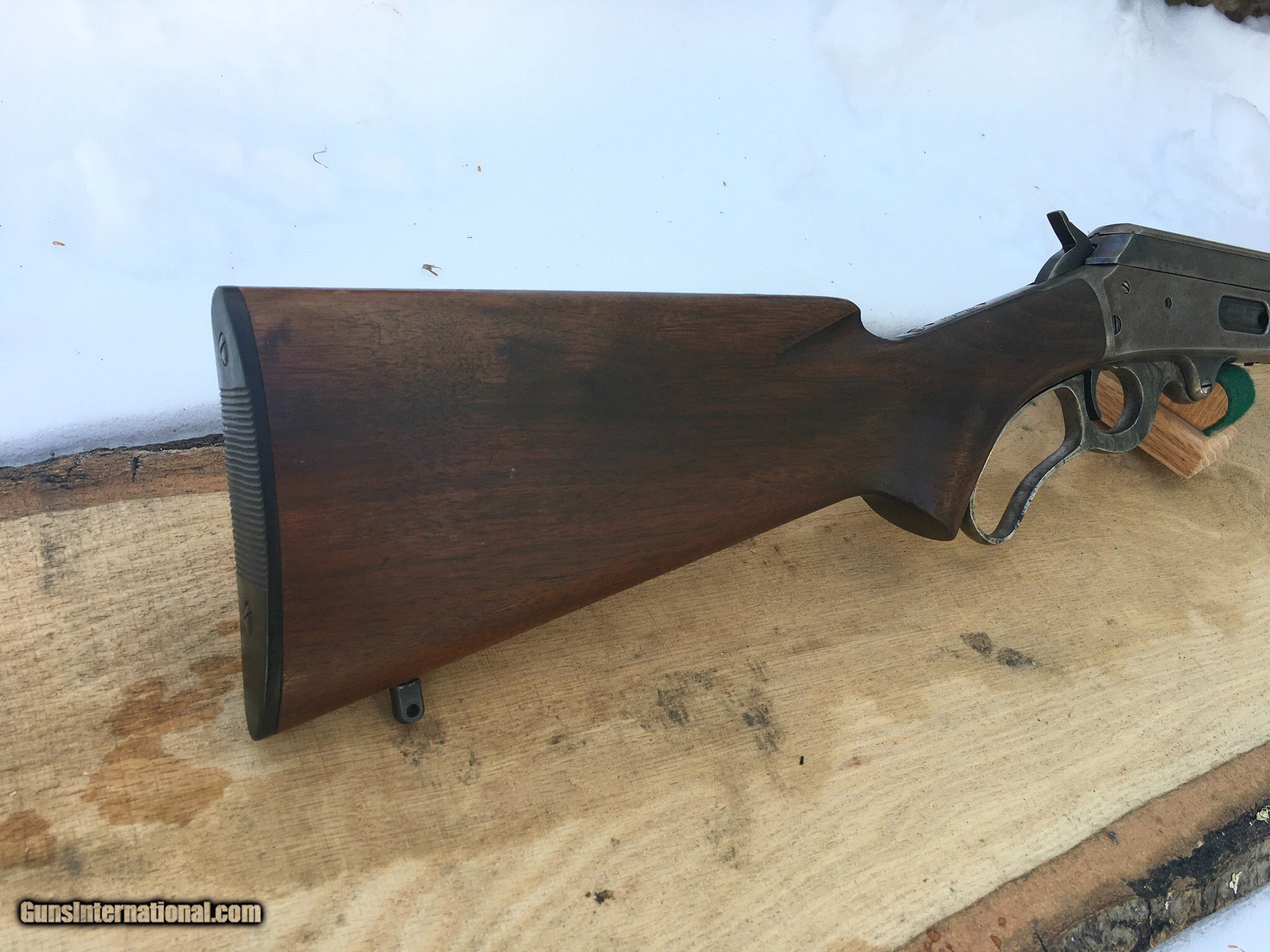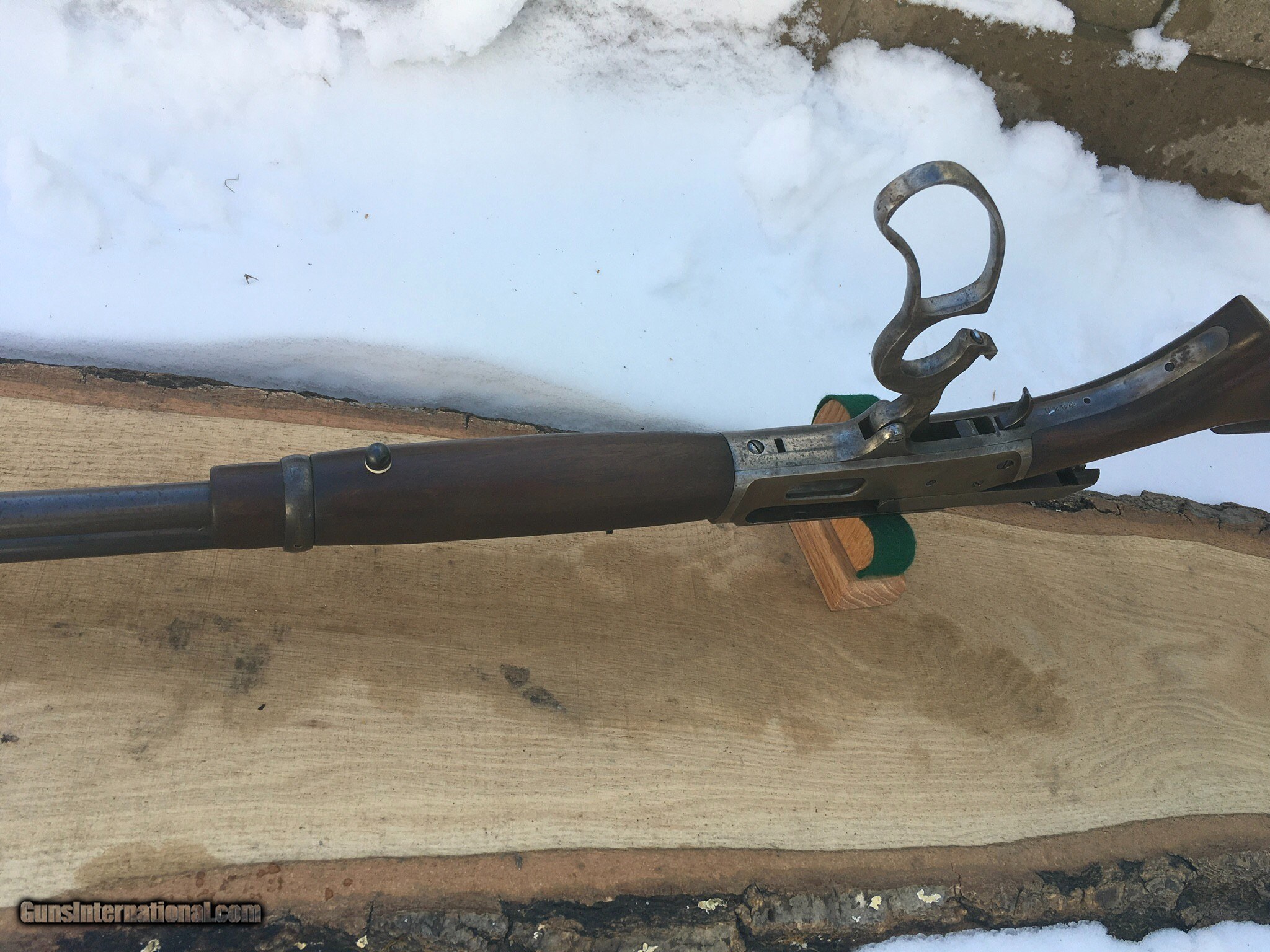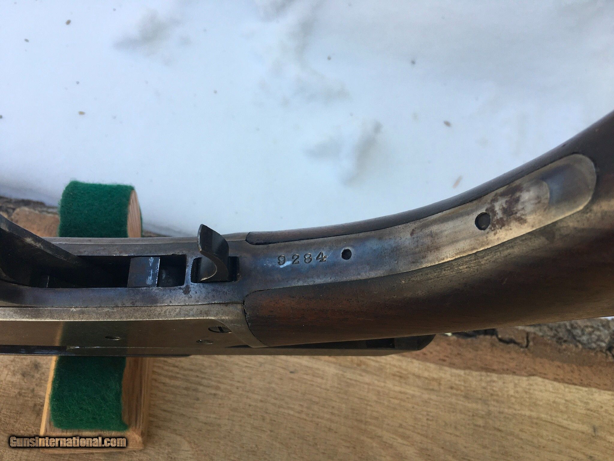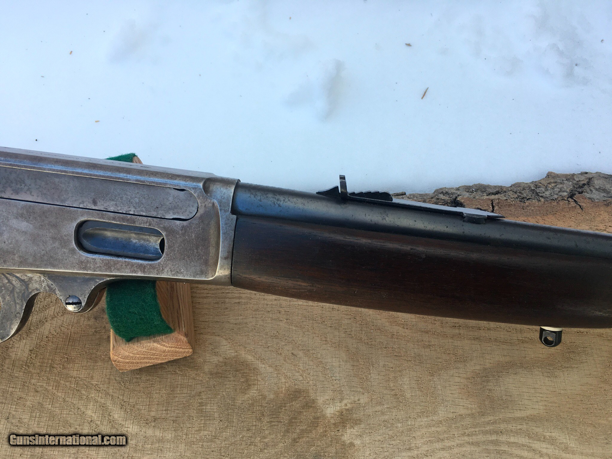 Description: SOLD, this rifle was sold at Eagan , Mn gun show Listing a kinda rare Curios & Relic Marlin model 1936 carbine, chambered in the Win, 32 Special , the 1893's were labeled 32 HPS, she's got a pistol grip stock and added sling swivel studs but no extra holes. Has some Light signs of faded case coloring , barrel blue is pretty much there , wood is free of any cracks or gouges , not a bad little rifle to round out a collection or as a good hunting rifle. Hard plastic shotgun style butt plate. I guess some call it a fluted stock. Sights I believe are original to the rifle. Barrel is marked Special Smokeless Steel. If one was to buy it I've a couple boxes of ammo I could maybe sell as well to be shipped UPS, the rifle I'd ship through the Post Office and I'd need a FFL or C&R to send it to. Either postal money orders or cashiers check only. I can be texted or called at 920-590-3400 I ship priority insured and provide a tracking number. any questions please call or text. Thank you and have a fine day this rifle is being relisted , it was returned because of a broken firing pin, it has since been replaced and cycles and shoots fine SOLD Curio/Relic: Yes Rifle Caliber: .32 Winchester Special Manufacturer: Marlin Model: 1936 Serial Number: 9284 Condition: Fine Metal Condition: Very good Wood Condition: Excellent Bore Condition: Excellent Barrel Type: round-carbine Action: lever Triggers: single Stock: pistol grip Butt Pad: shot gun butt Sights: Open rear Manufacture Date: 1936 |